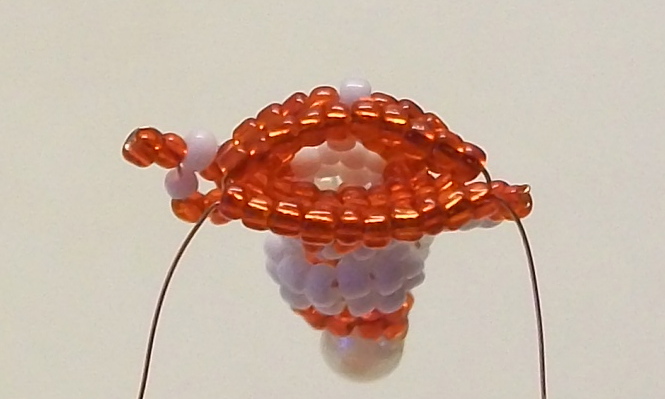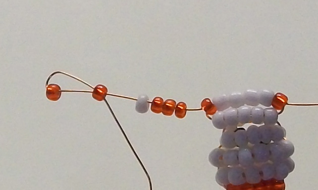 Далее делаем нижний ярус 8-го ряда - 6 красных бисеринок.