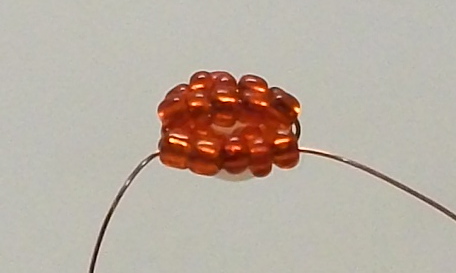 Верхний ярус - набираем на любой из концов проволоки 4 красные бисеринки.