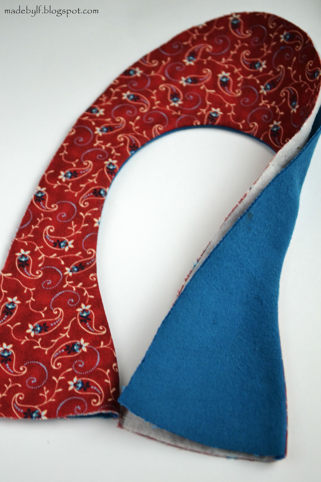 9. Стелька: сложить все слои в таком порядке: утеплитель (у меня это два слоя синтепона), нижняя сторона D и верхняя часть стельки C лицом к лицу; сколоть булавками перпендикулярно будущей строчке.