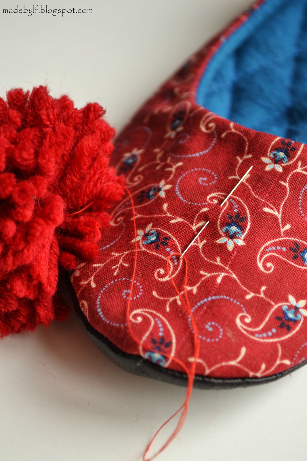 "балерининых" тапочках.Этот метод мне кажется проще классического, когда шьются две тапочки (верх и подкладка), а затем они сшиваются по верхнему срезу. Изрядно намучившись с последним этапом в моих