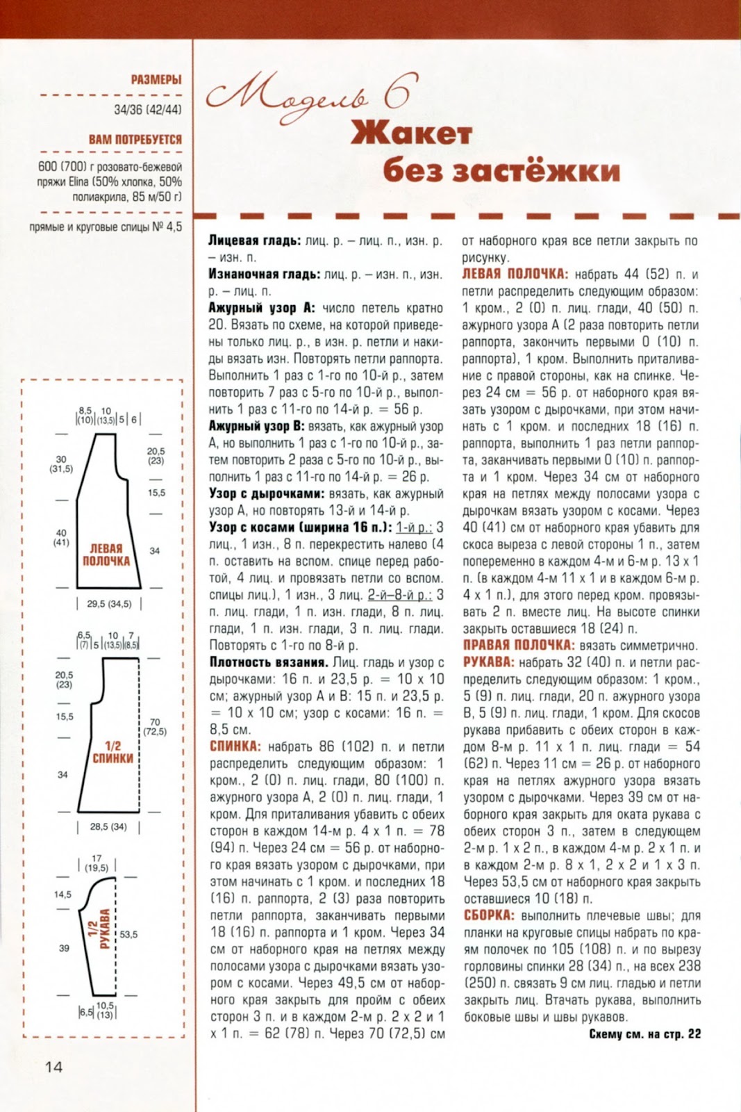 Жакет розовато-бежевого цвета без застежки - модель для прогулок осенним днем. Узор "елочка" по низу жакета смотрится очень эффектно на лицевой глади жакета