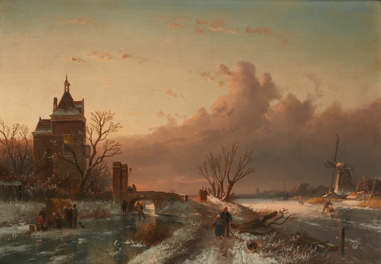 1866_Зимний пейзаж с фигурами на замерзшем канале (A winter landscape with figures on a frozen waterway)_49 х 76.5_х.,м._Частное собрание