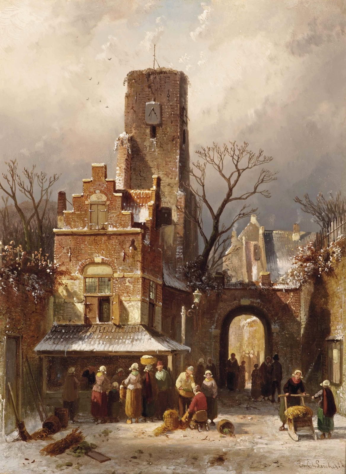 Рыночная сцена в зимнем голландском городе (A Market scene in a wintry Dutch Town)_40 х 29_д.,м._Частное собрание