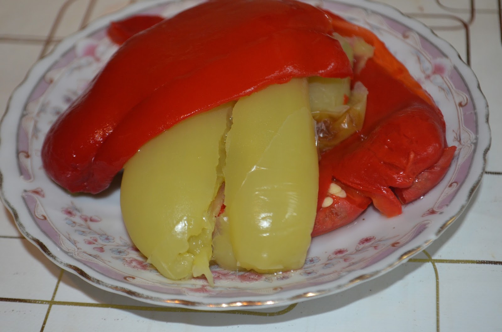 1) Первым делом необходимо помыть перцы, завернуть их в пакет для выпечки и отправить в духовку на 30 минут. Затем достать их,обдать холодной водой и снять кожицу. Готовые перцы мелко нарубить