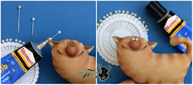 Смазываем булавки клеем и устанавливаем глазки на выбранное место.
