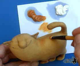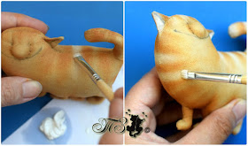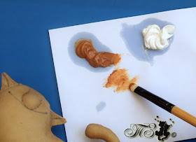 Тонируем кота раствором кофе+ПВА+корица. В этом МК я не буду останавливаться на процессе кофейной тонировки, Рецепт тонирующей смеси и нюансы окраски можно посмотреть в любом моем МК по кофейным игрушкам.