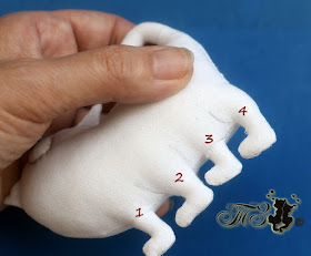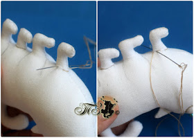 Нечетные же лапки (1-ю и 3-ю) мы просто прошьем, как бы продолжая линию животика.