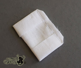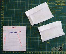 Вырезаем из бязи 2 заготовки с вышеуказанными размерами (9 Х 8,5 см) и подворачиваем верхний и нижний срезы так, как показано на фото. Долевую лучше расположить по высоте. Размеры подворотов не имеют строгих параметров, все делаем «на глазок», однако не забываем, что: