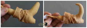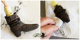 После тонировки, в еще влажном состоянии, снова формируем складки на голенище......и отправляем ножки сушиться на открытом воздухе (при помощи фена или в духовке – как кому привычнее).