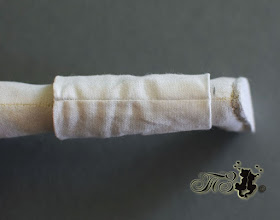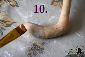 Если кукла шьется из фабрично окрашенной ткани, то перед тонировкой и окраской следует защитить ножку куклы малярным скотчем (см. описание и фото ниже).