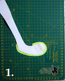 1. На лист бумаги кладем выкройку кукольной ножки и обводим ее нижнюю часть, добавляя примерно 0,5см с каждой стороны (на фото 1 - светло-зеленая деталь).