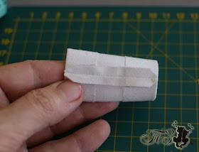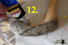 11. Сразу же одеваем на проклеенную ножку заготовку из мешковины, хорошо обжимаем заготовку по ножке для лучшего склеивания.