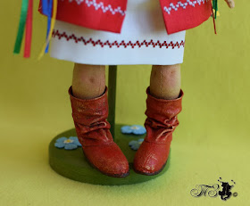 Прим.: В любом случае рекомендую перед окраской сапог покрыть их тонировочным раствором или прогрунтовать раствором воды с клеем ПВА (1:1). Это облегчит дальнейшую роспись, и существенно уменьшит расход акриловой краски: по своему опыту знаю насколько больше уходит краски для красивого и равномерного окрашивания НЕгрунтованной поверхности.