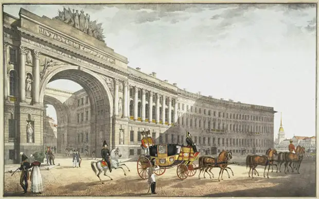 А. Тозелли. Панорама Петербурга. Акварель. 1820.Здание Двенадцати Коллегий