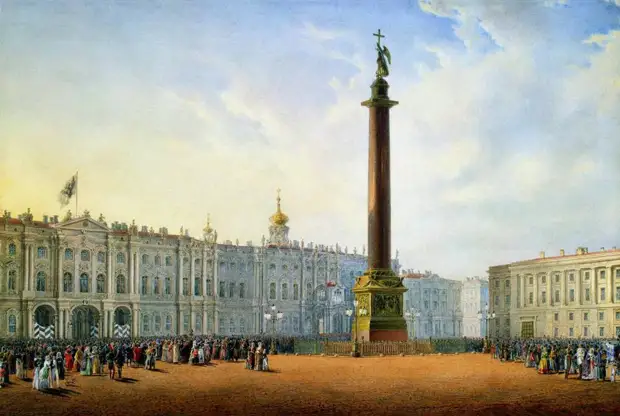 Вид Дворцовой площади и Зимнего дворца в Санкт-Петербурге;