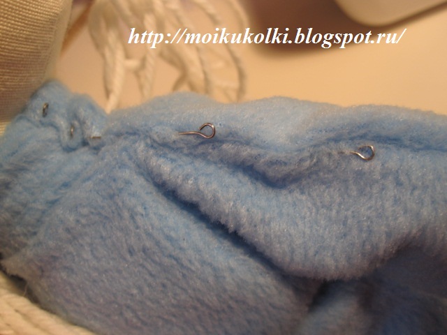 одеваю свмтер на куклу и скалываю где мы не строчили,зашиваю потайным швом . |