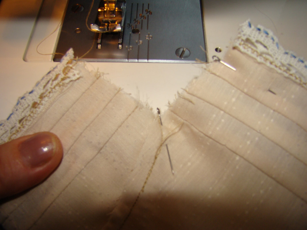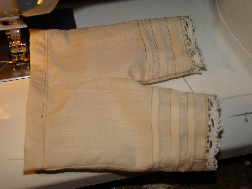 А вот теперь обе половинки штанин надо обязательно под утюг и хорошенько пригладить защипы вниз, по направлению к кружевам, потому что потом уже не подлезть утюгом будет