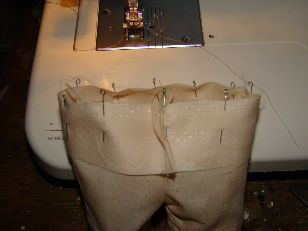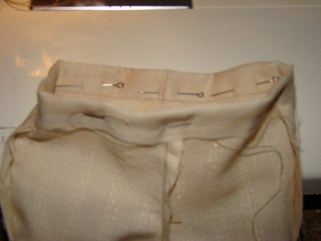 Строчу по штанишкам, а не по пояску, то есть как бы изнутри, убираю булавки.