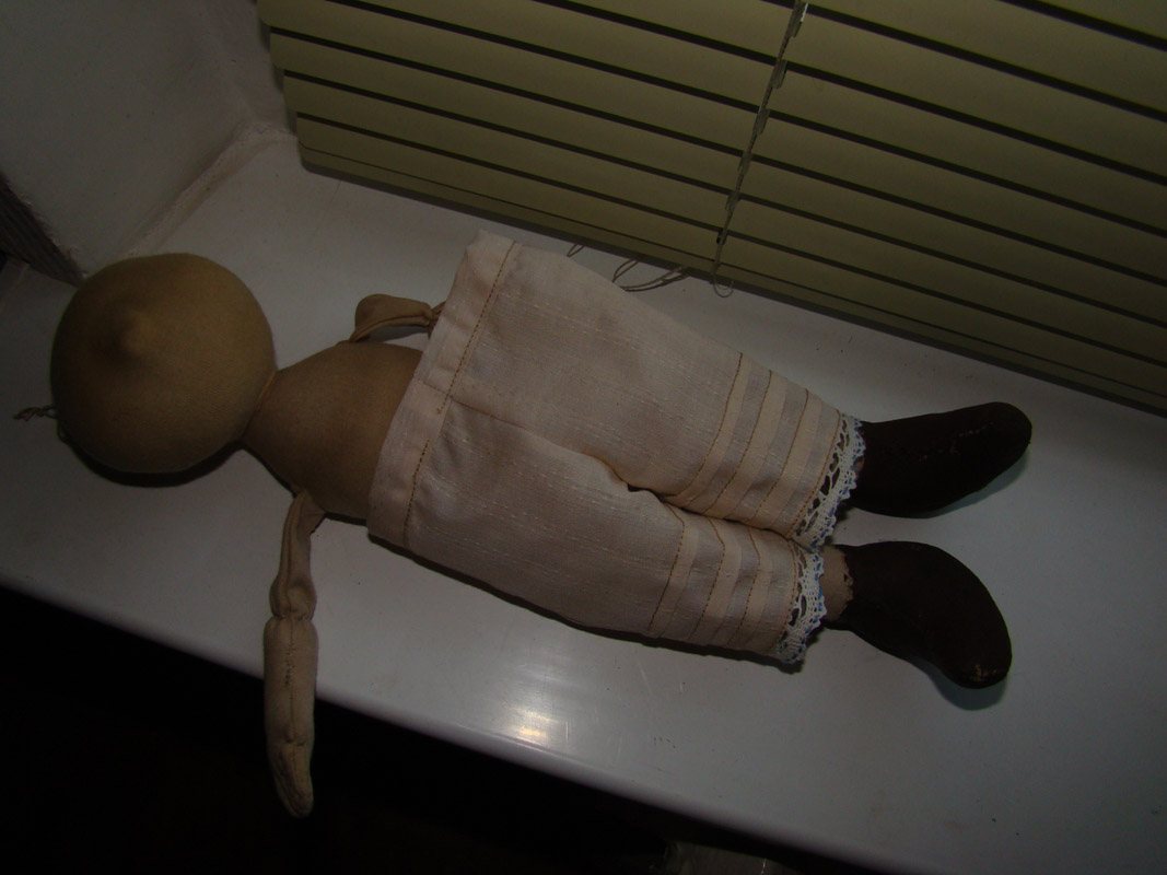 Берем куколку в руки и прикладываем выкройку штанишек к ней, уголок шаговой части выкройки приложила к серединке низа куколки и смотрю , насколько выкройка больше или меньше того, что я хочу сделать.