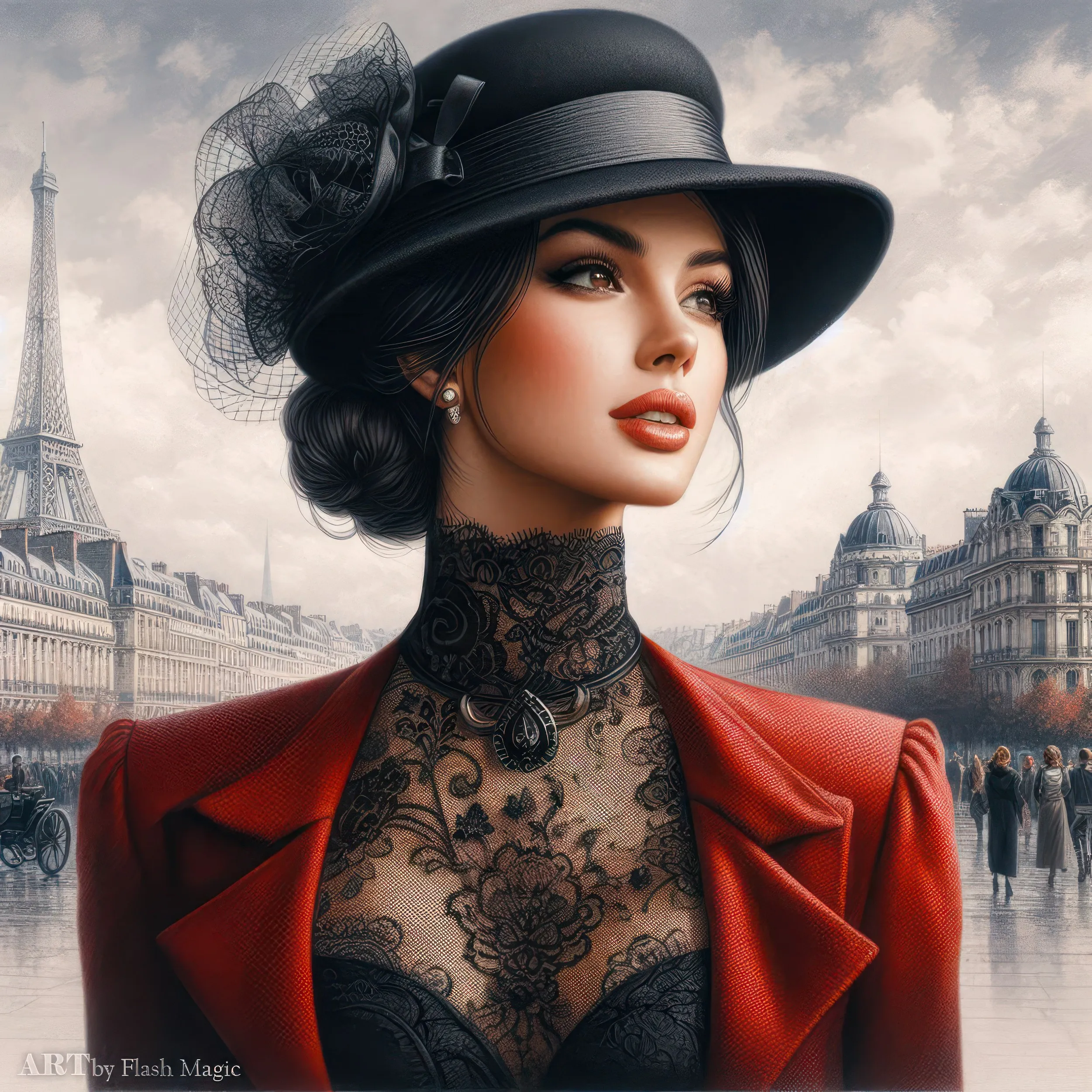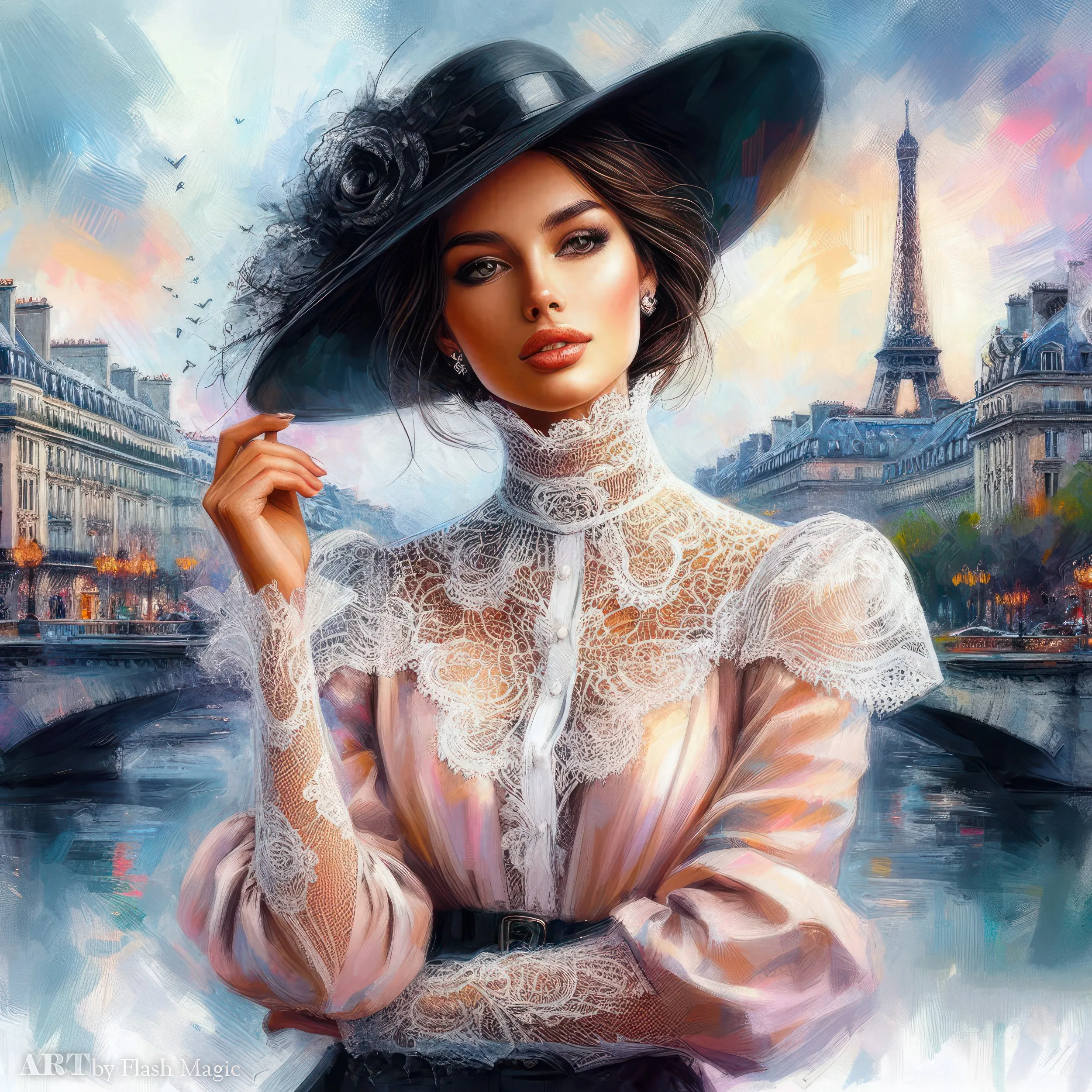 Парижанка в стиле ретро. Акварель. ART by Flash Magic