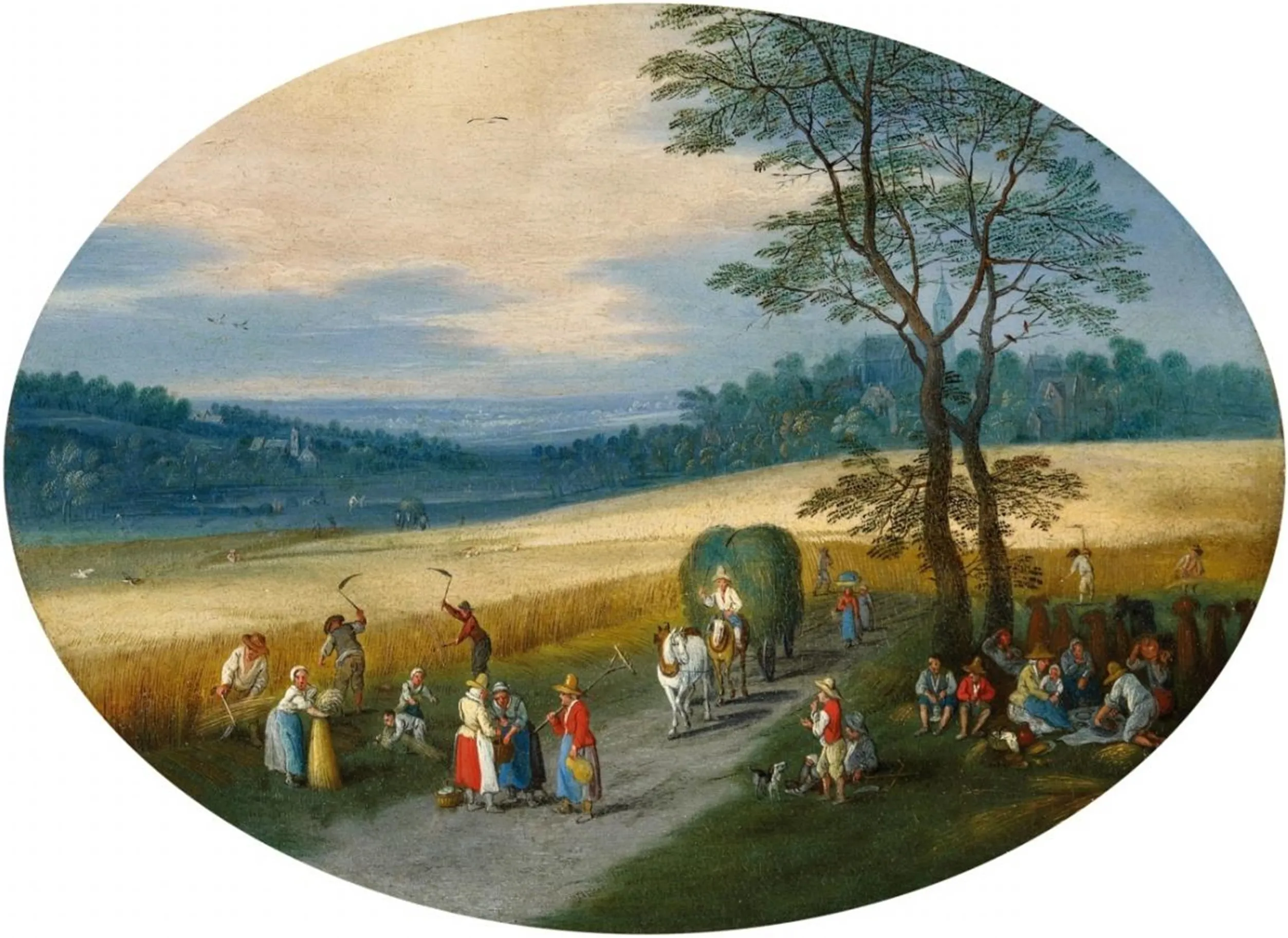 Jan Brueghel the Younger (1601–1678) Summer landscape with grain harvest 1620s