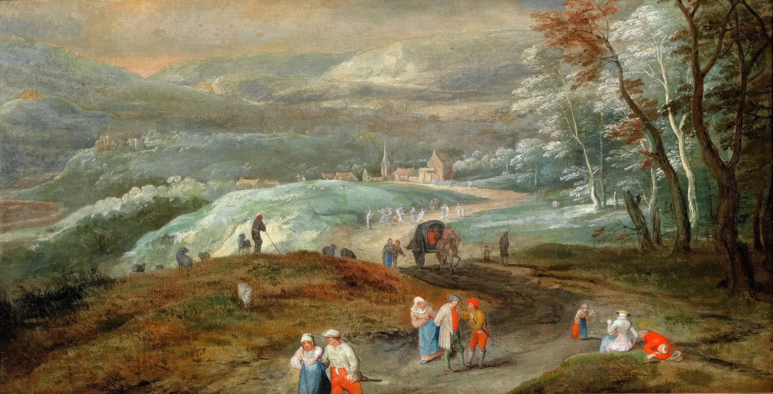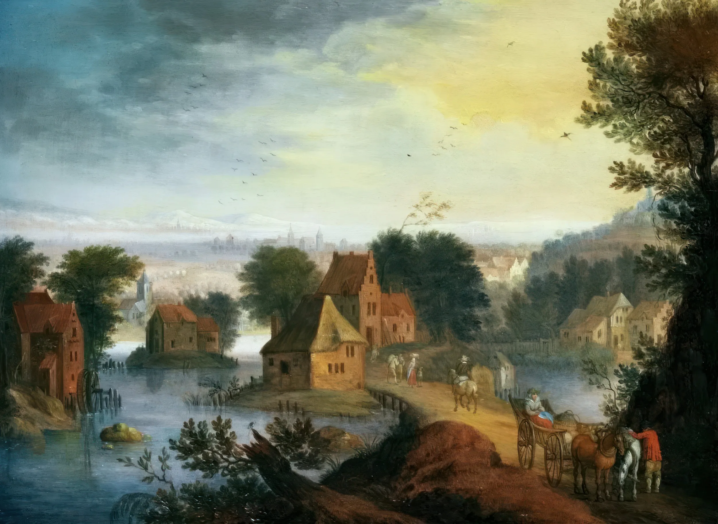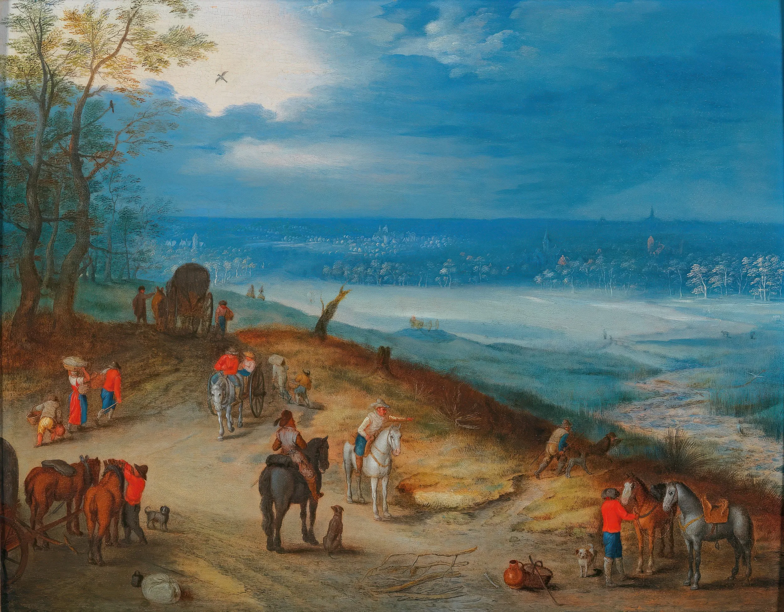 Купцы и путники в обширном пейзаже (Merchants and travellers in an extensive landscape) 33 х 41.9_д.,м. Частное собрание