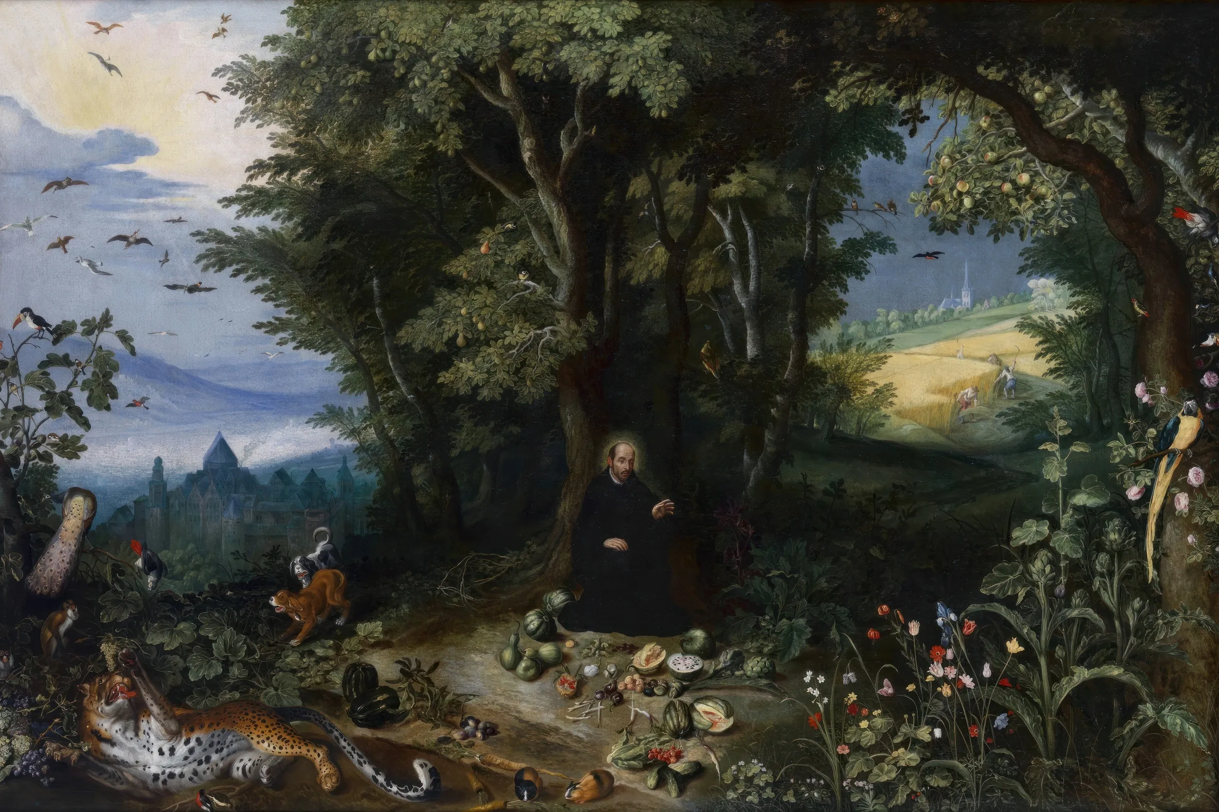 Лесной пейзаж с Игнатием Лойолой (Forest Landscape With Saint Ignatius Of Loyola) 162 x 108_х.,м. Частное собрание