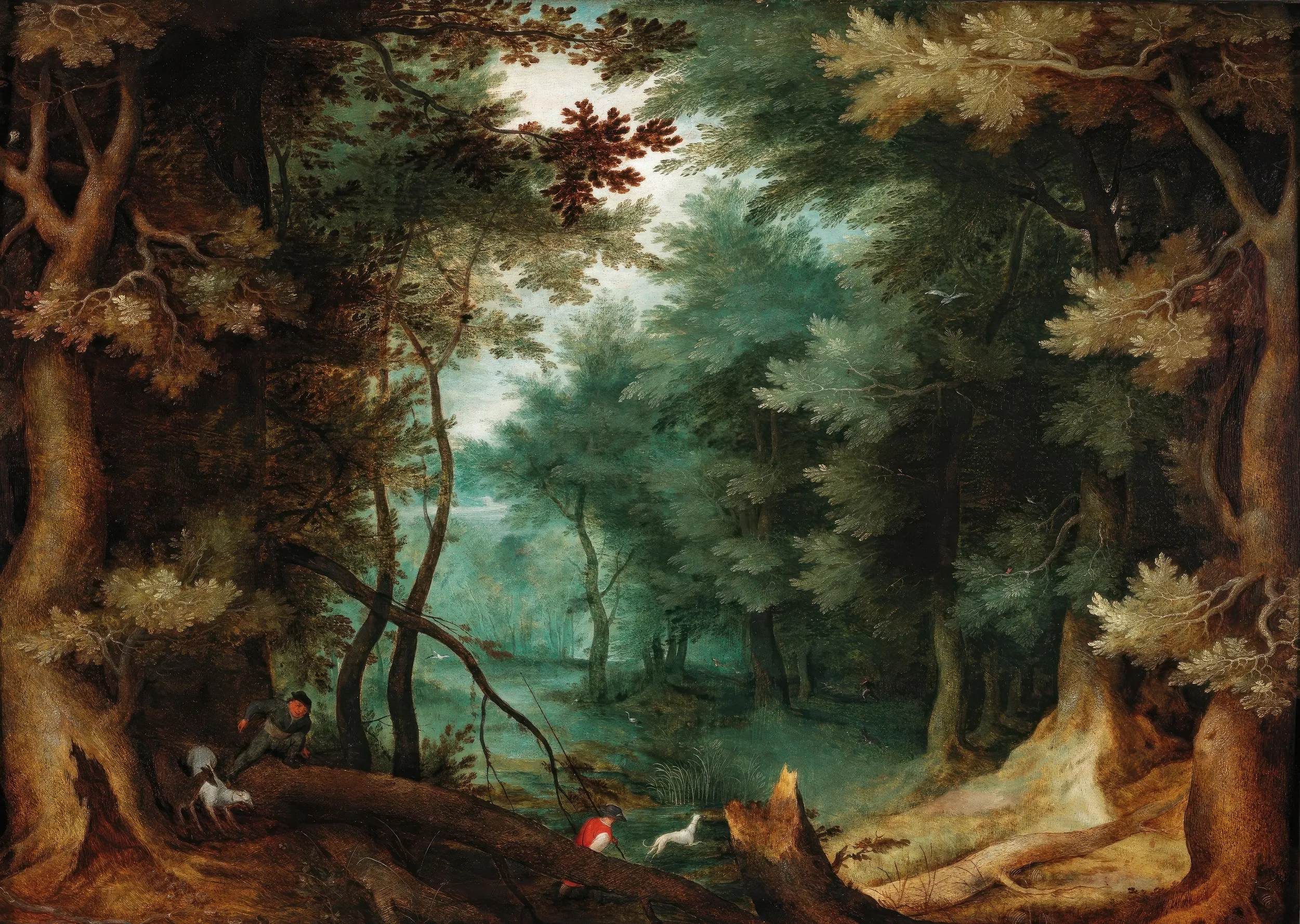 Лесной пейзаж с охотниками (Forest landscape with hunters) 41.5 х 58_д.,м. Частное собрание