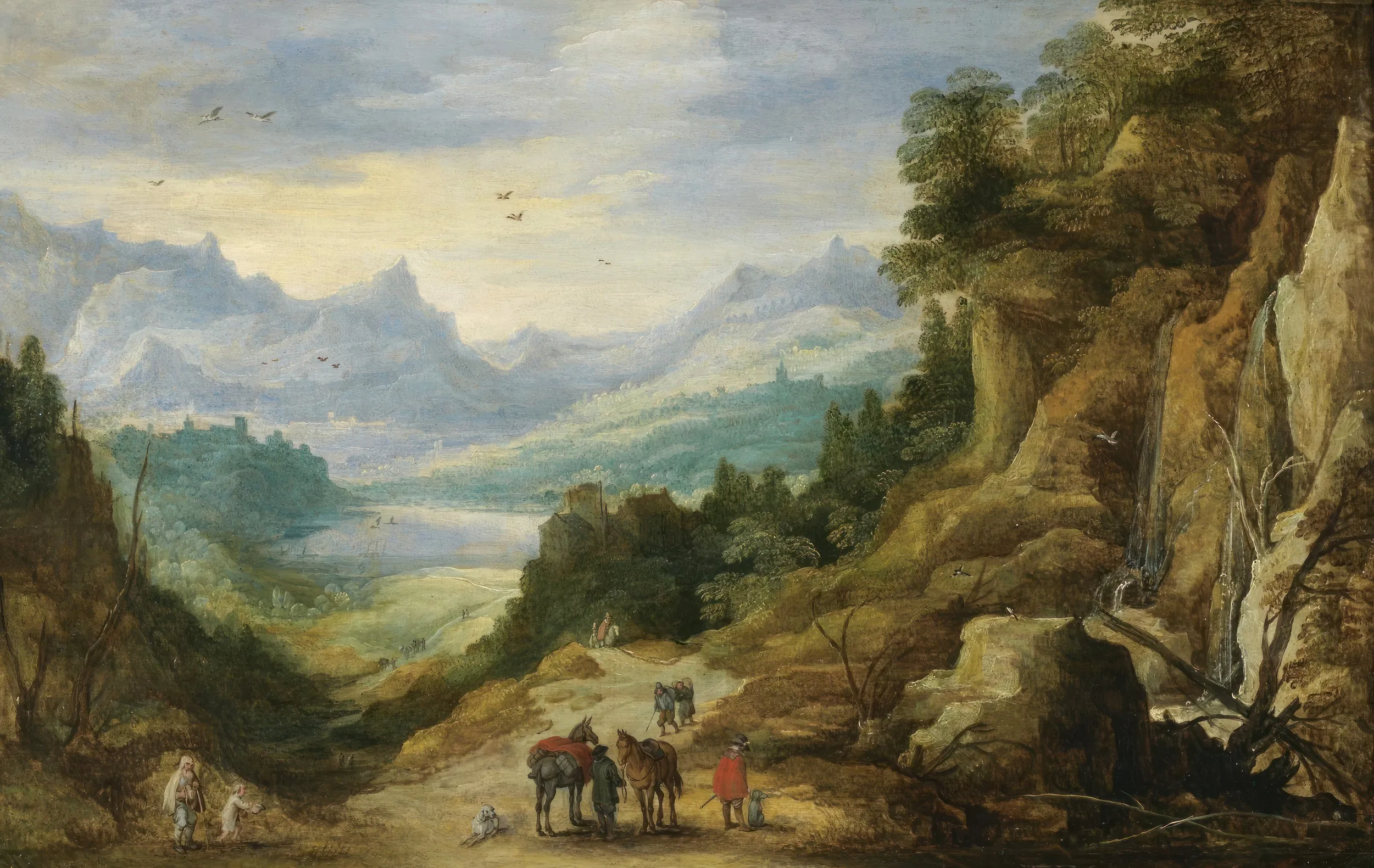 (совм с Йосом де Момпером Мл) Горный пейзаж с всадниками (A distant mountainous landscape with cavaliers) 47 х 73.6_д.,м. Частное собрание