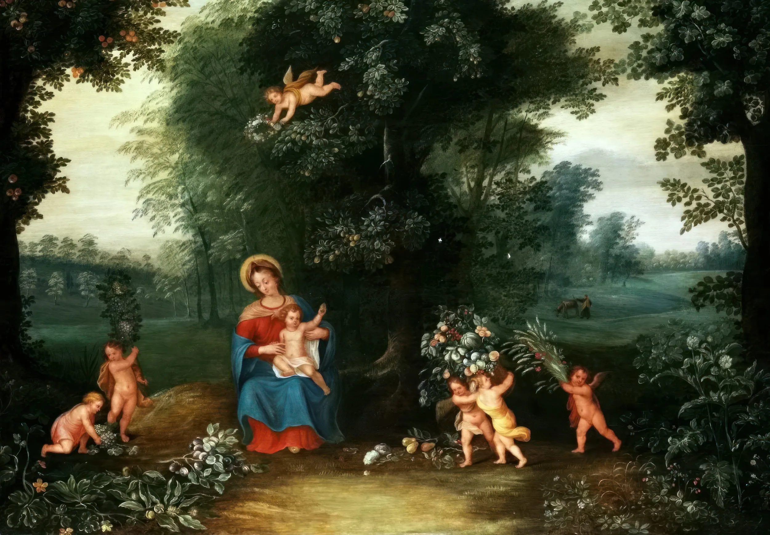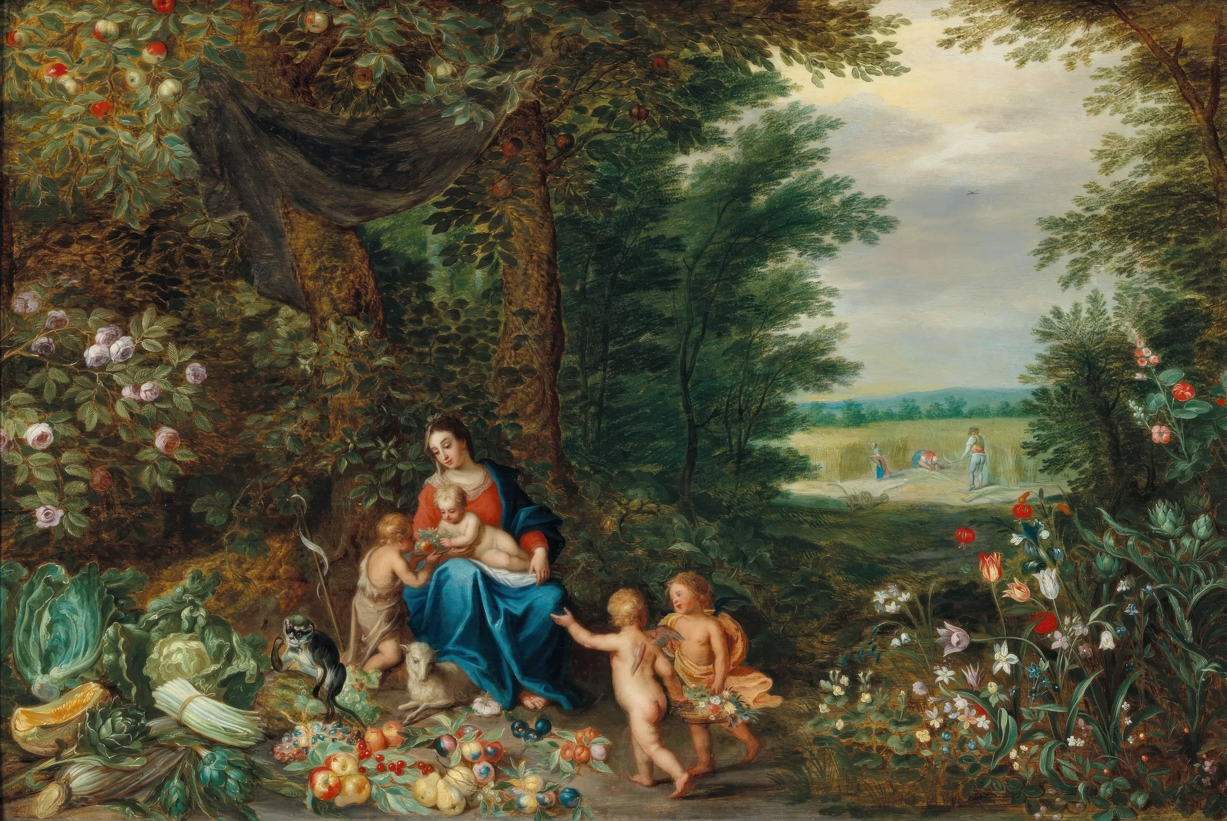 Мадонна с Младенцем и юным Иоанном Крестителем в пейзаже (The Virgin and Child with the Infant Saint John the Baptist in a landscape) 52 х 77_д.,м. Частное собрание