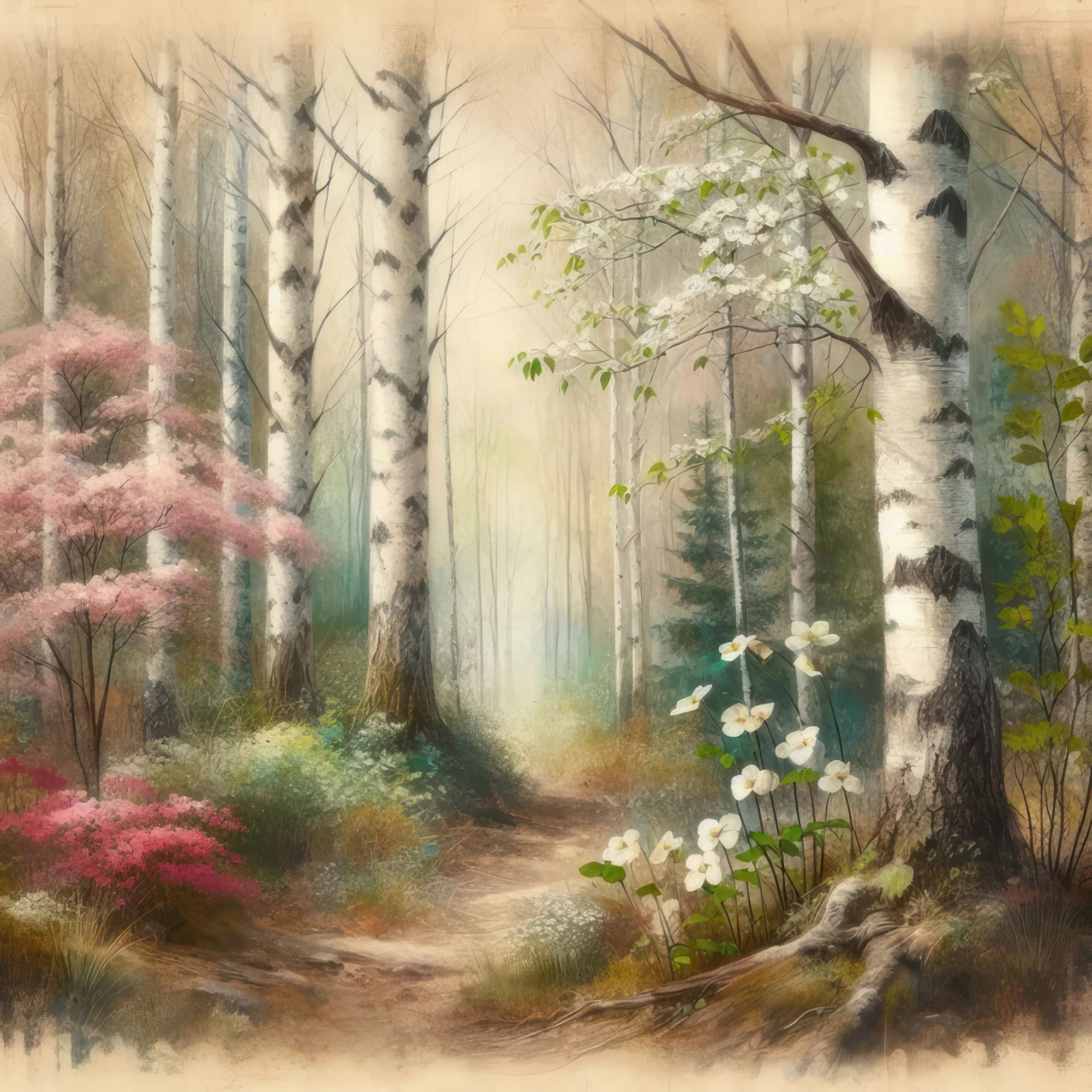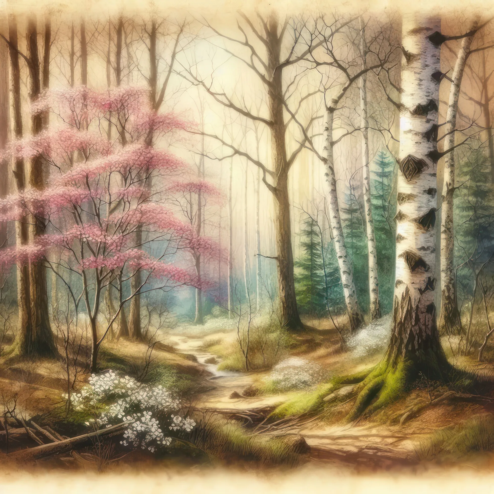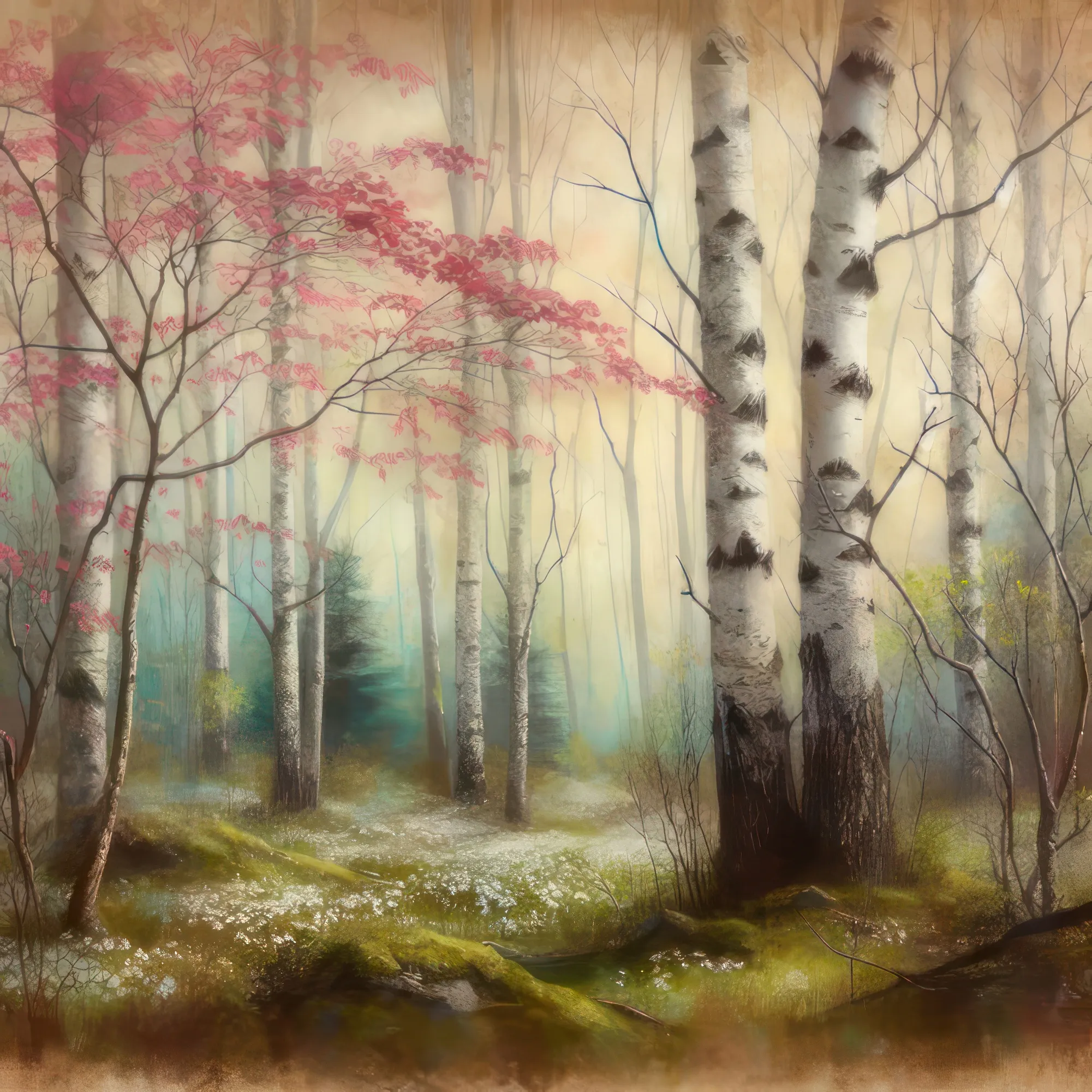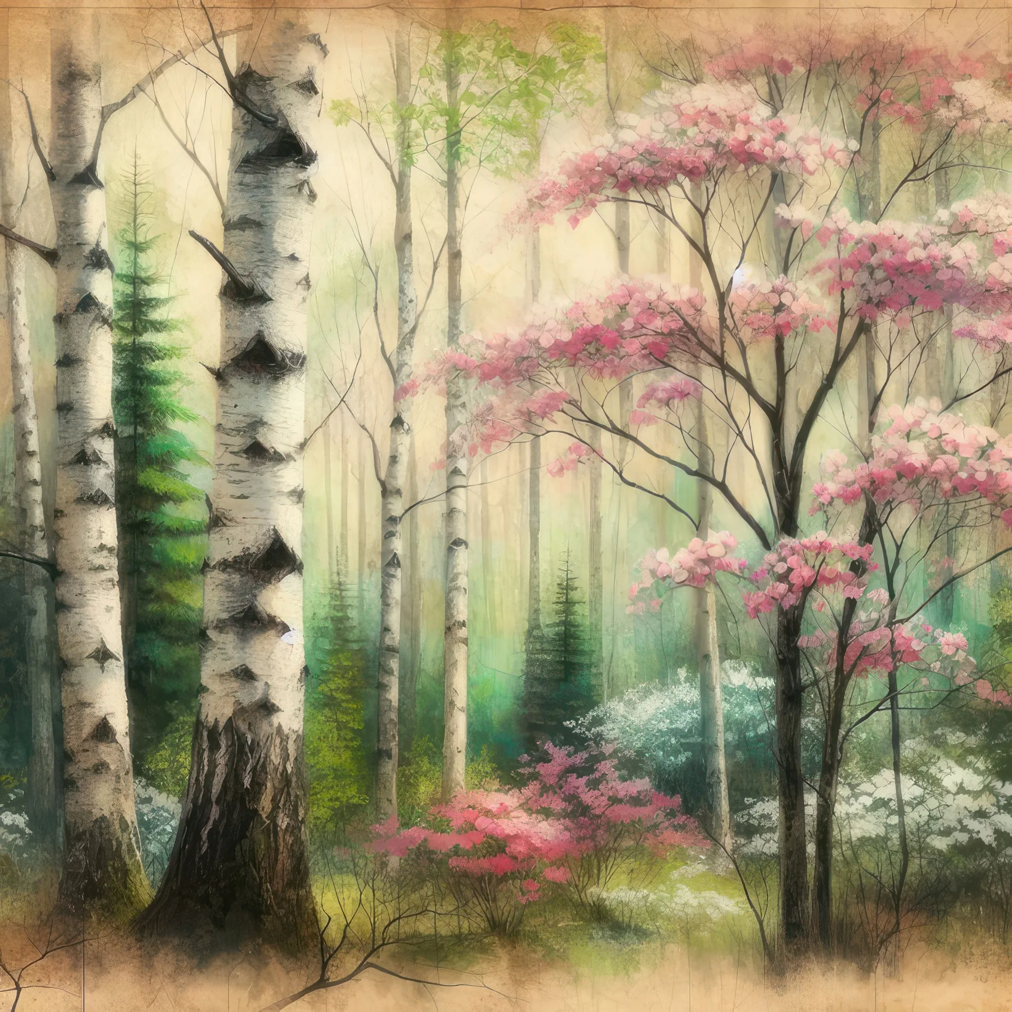 «Березово-кизиловый лес»... - Акварель (инет)