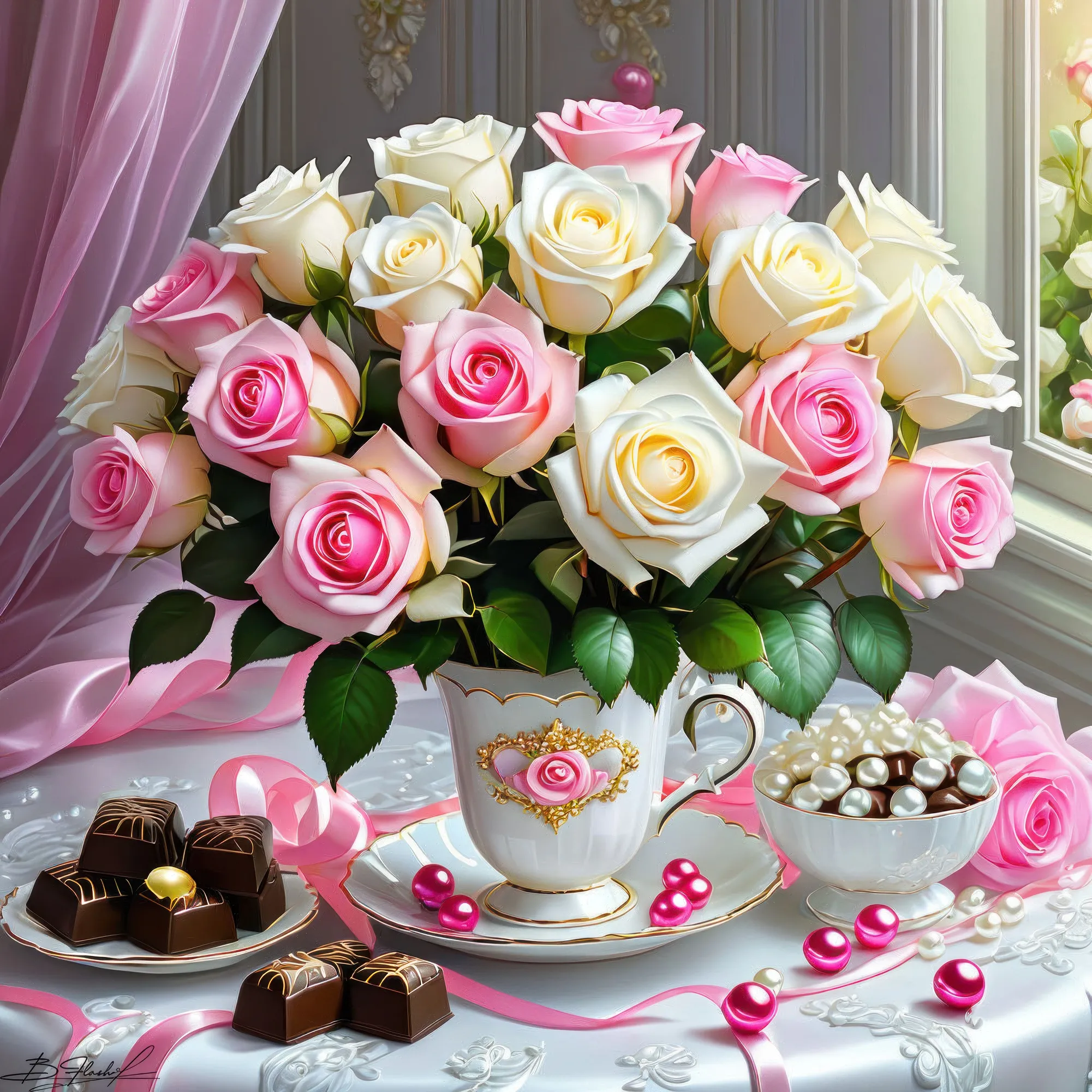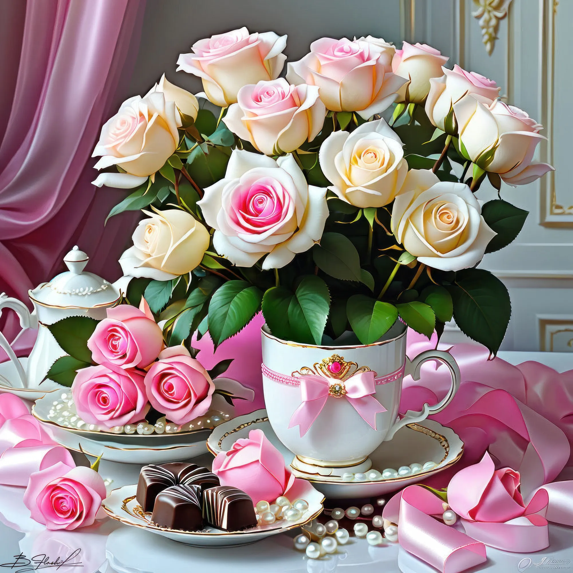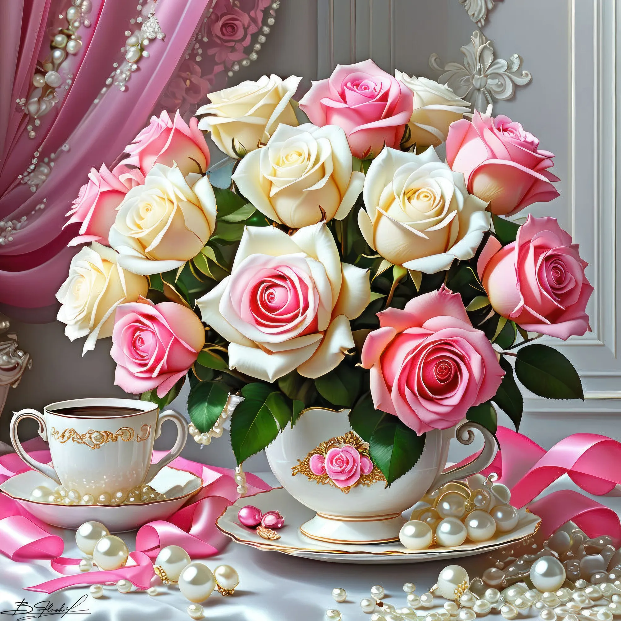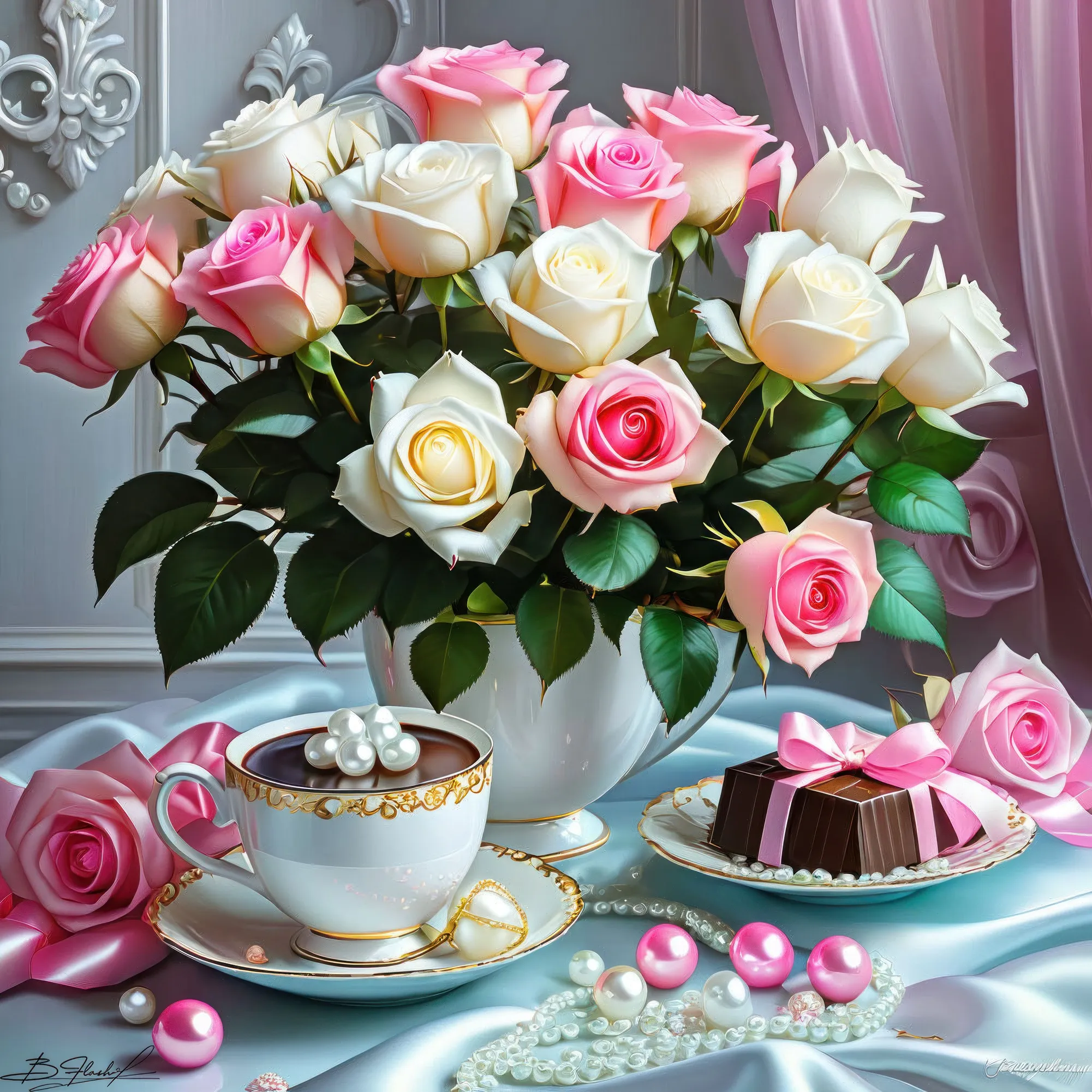 Натюрморт бело-розовые розы. ART by Beauti_Flash.