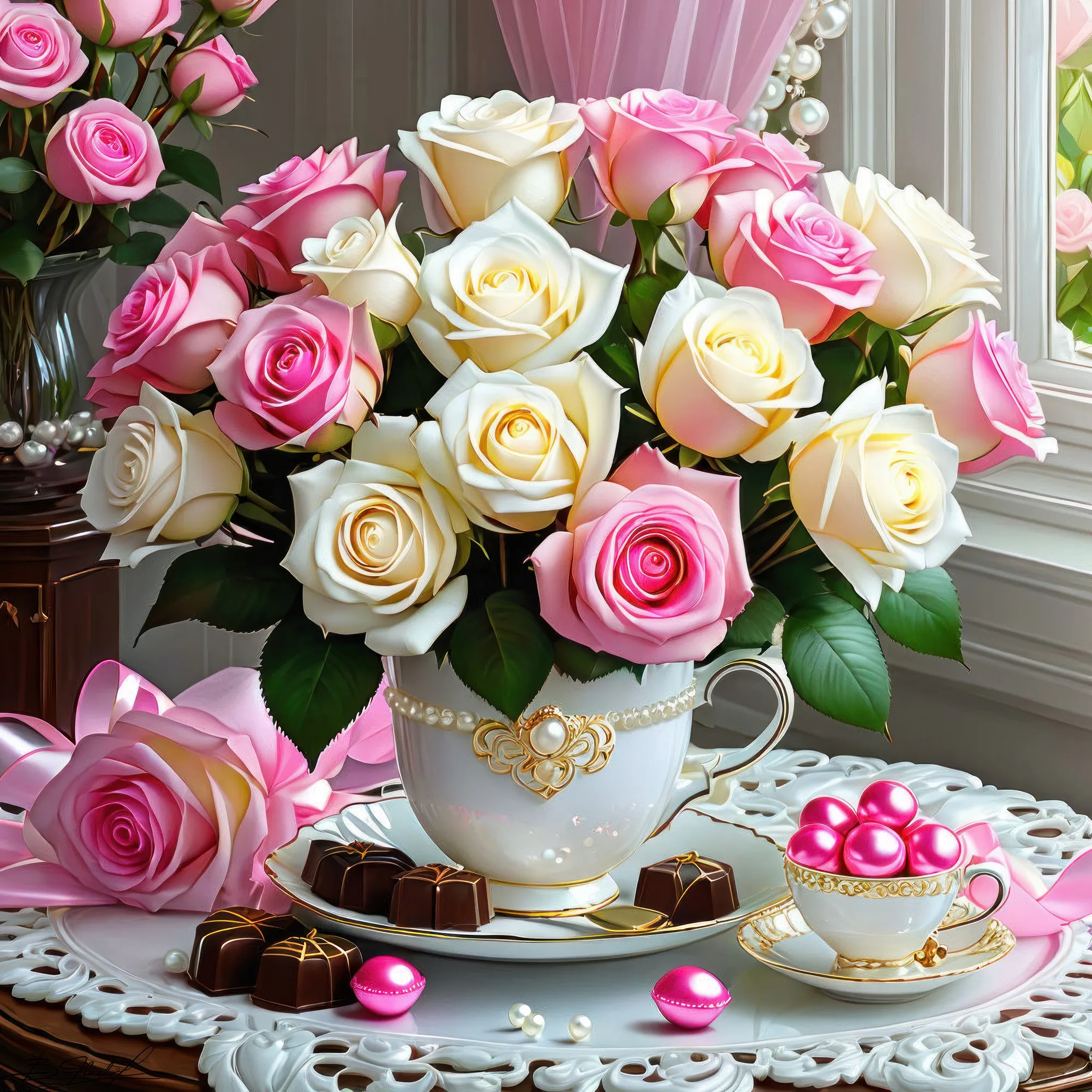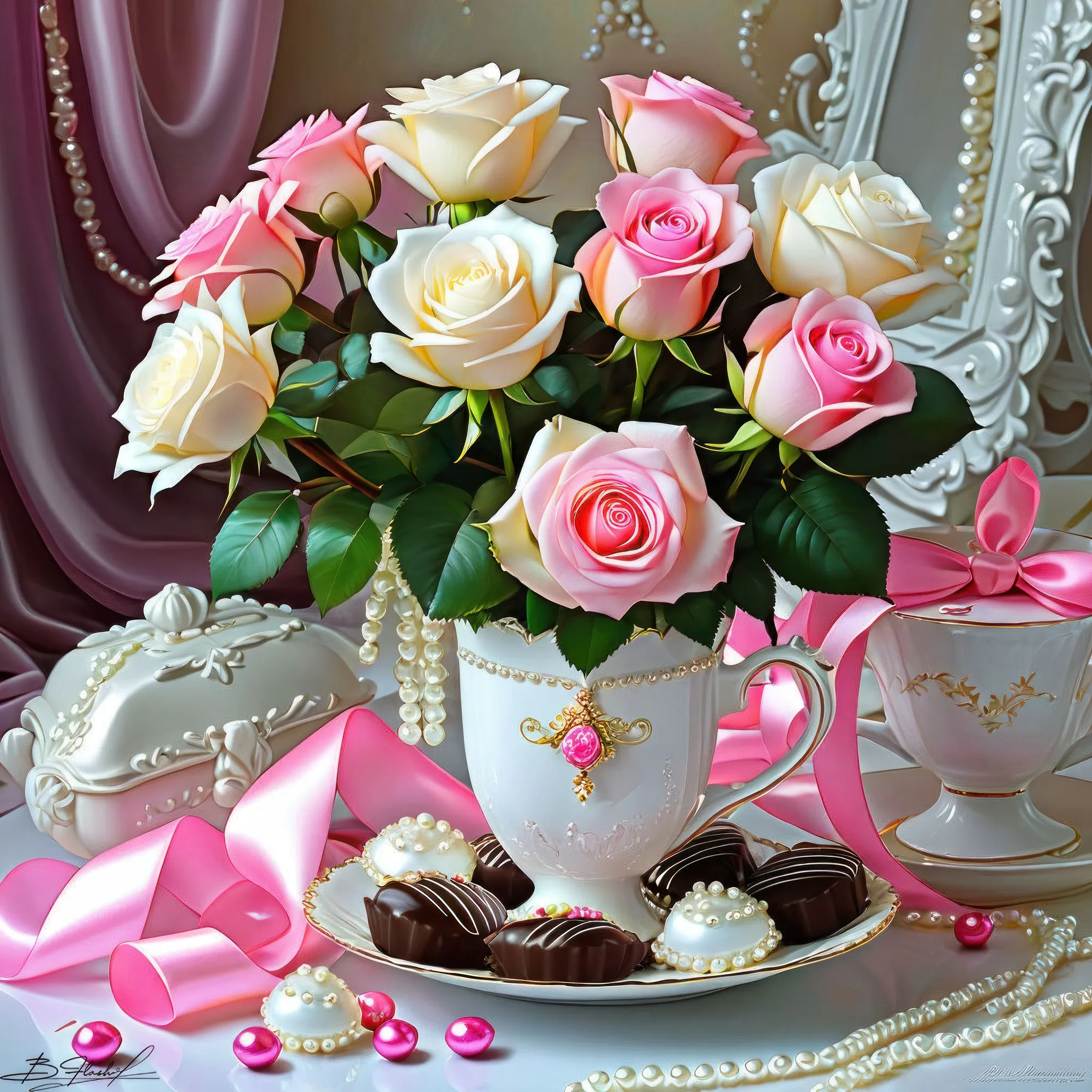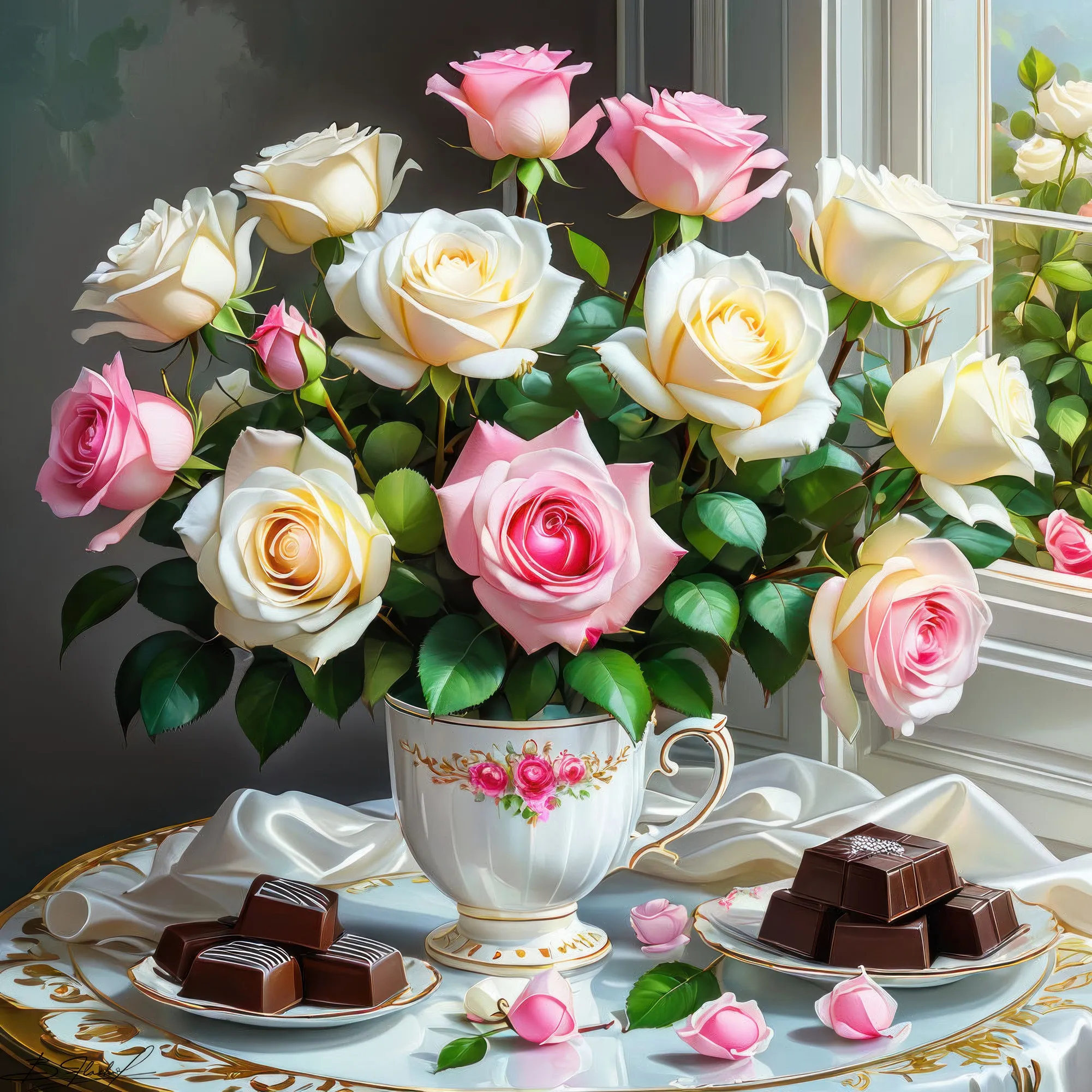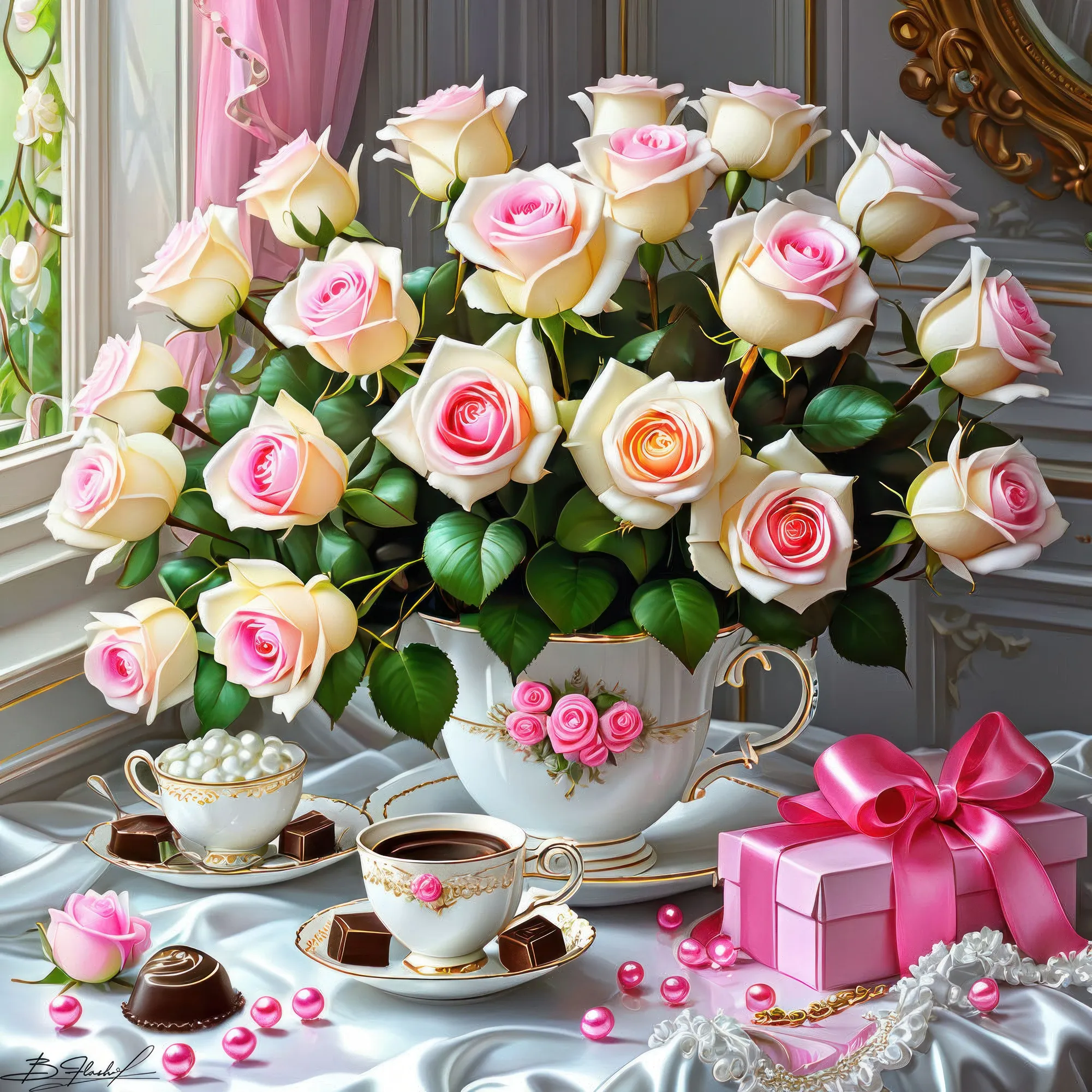 Натюрморт бело-розовые розы. ART by Beauti_Flash.
