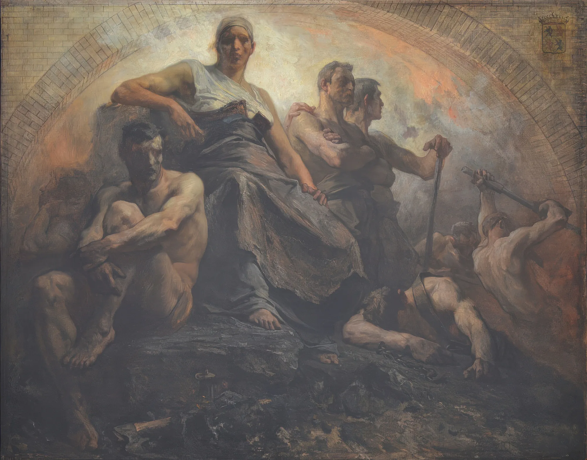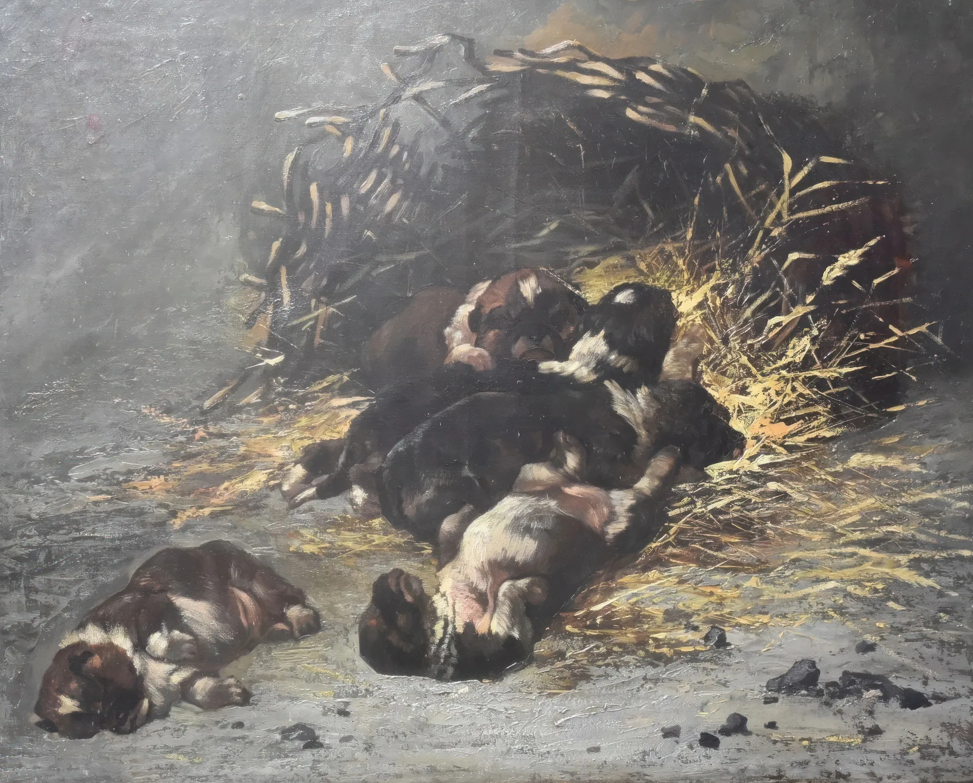Бычья колесница «Индустрия» (1895) Выводок щенков в конюшне