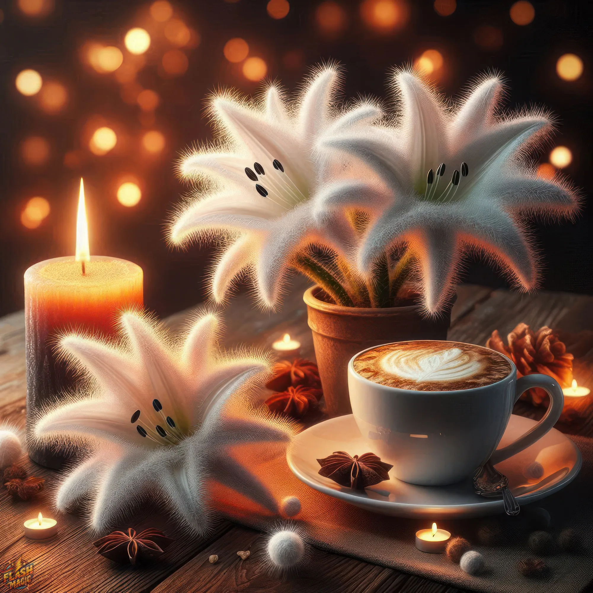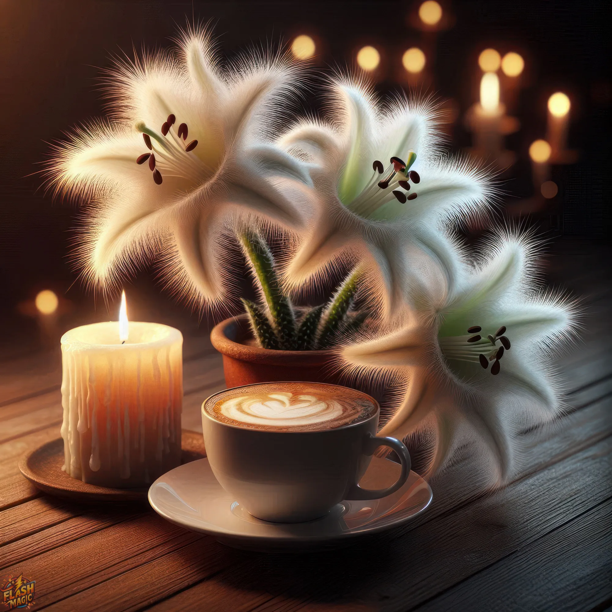 Цветочная фантазия и чашка капучино. ART by Flash Magic