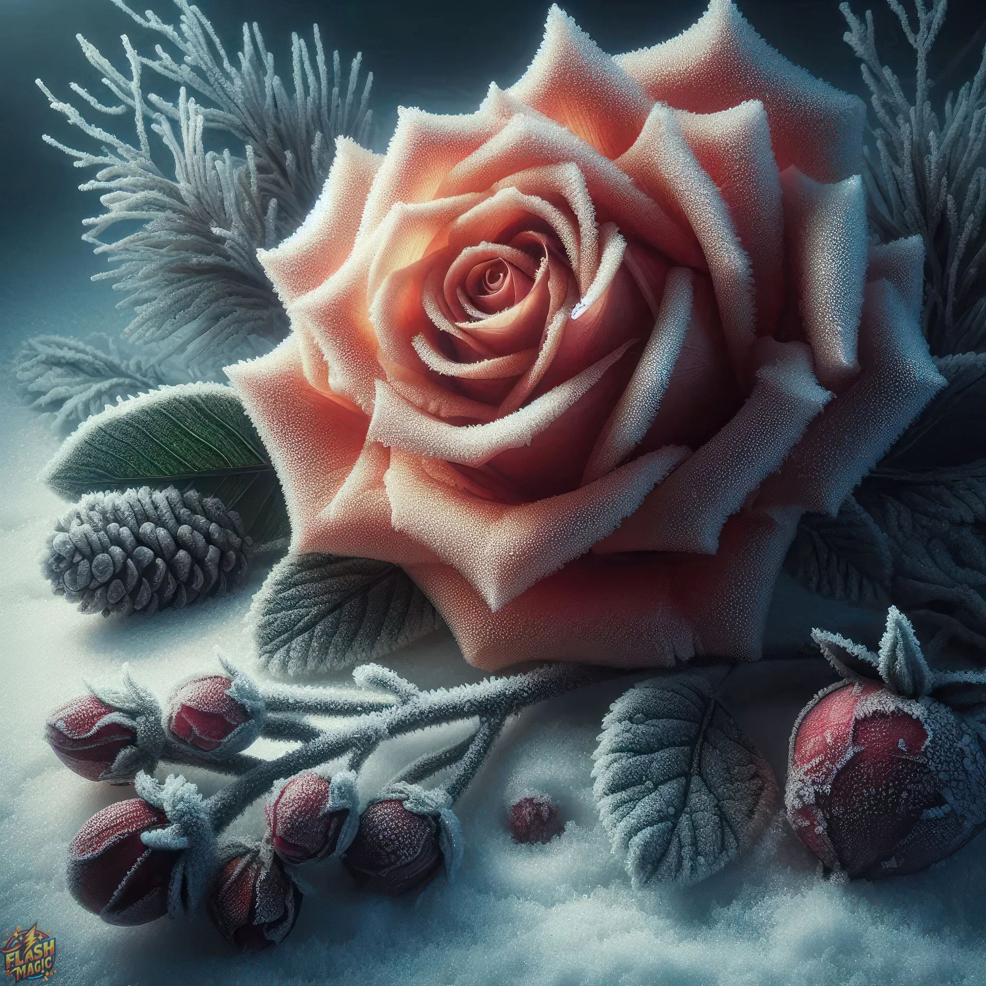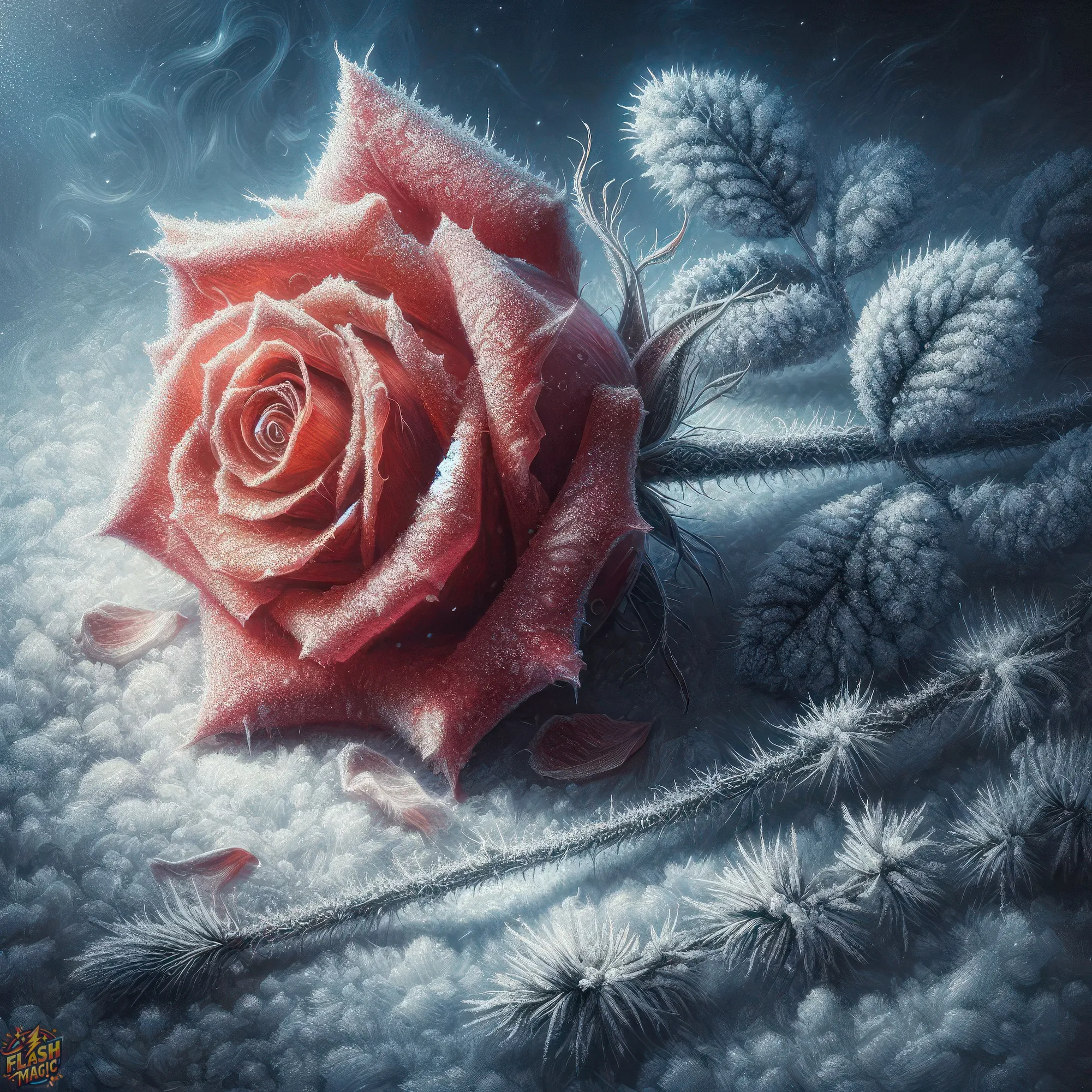 Роза на морозе. Зимняя тема. ART by Flash Magic