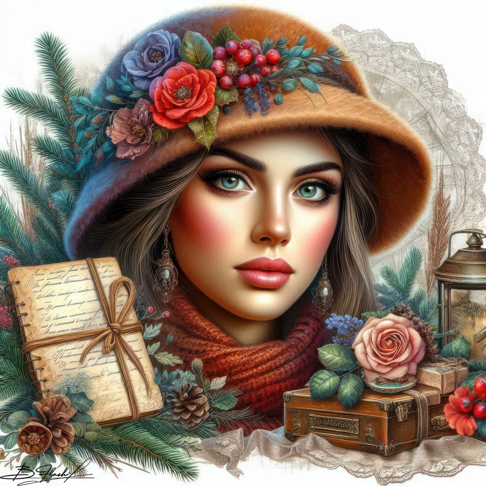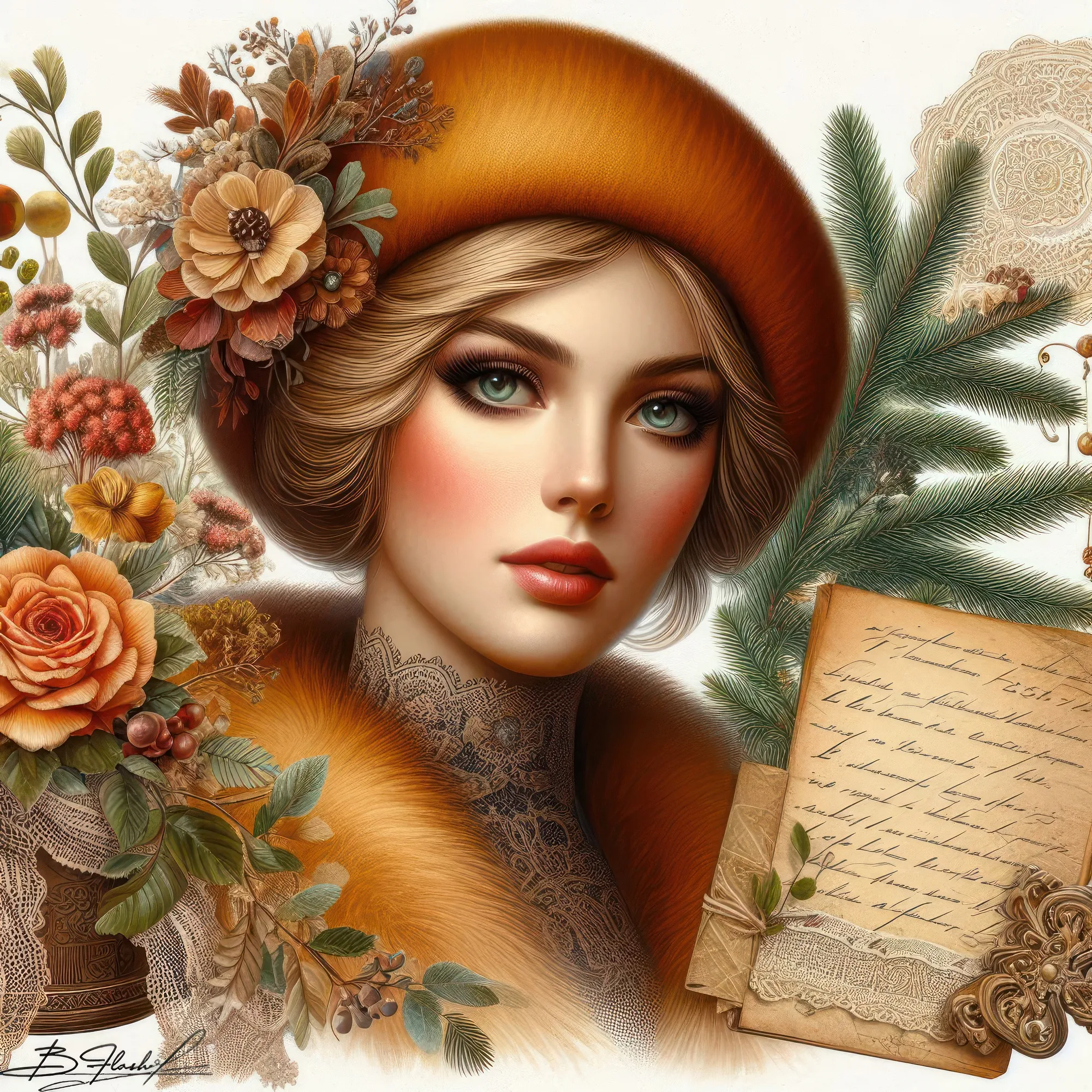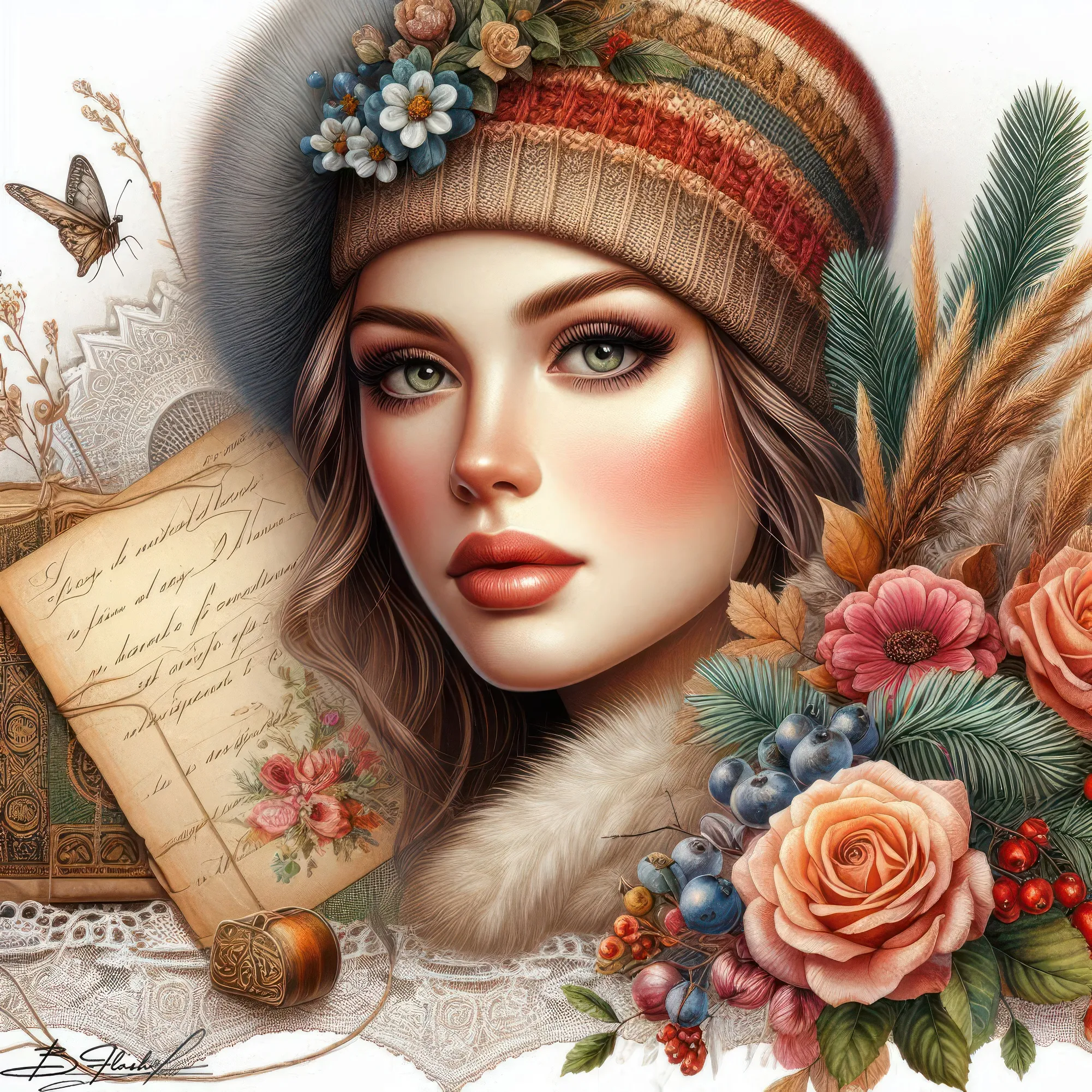 Зимние винтажные девушки на белом фоне. ART by Beauti_Flash.
