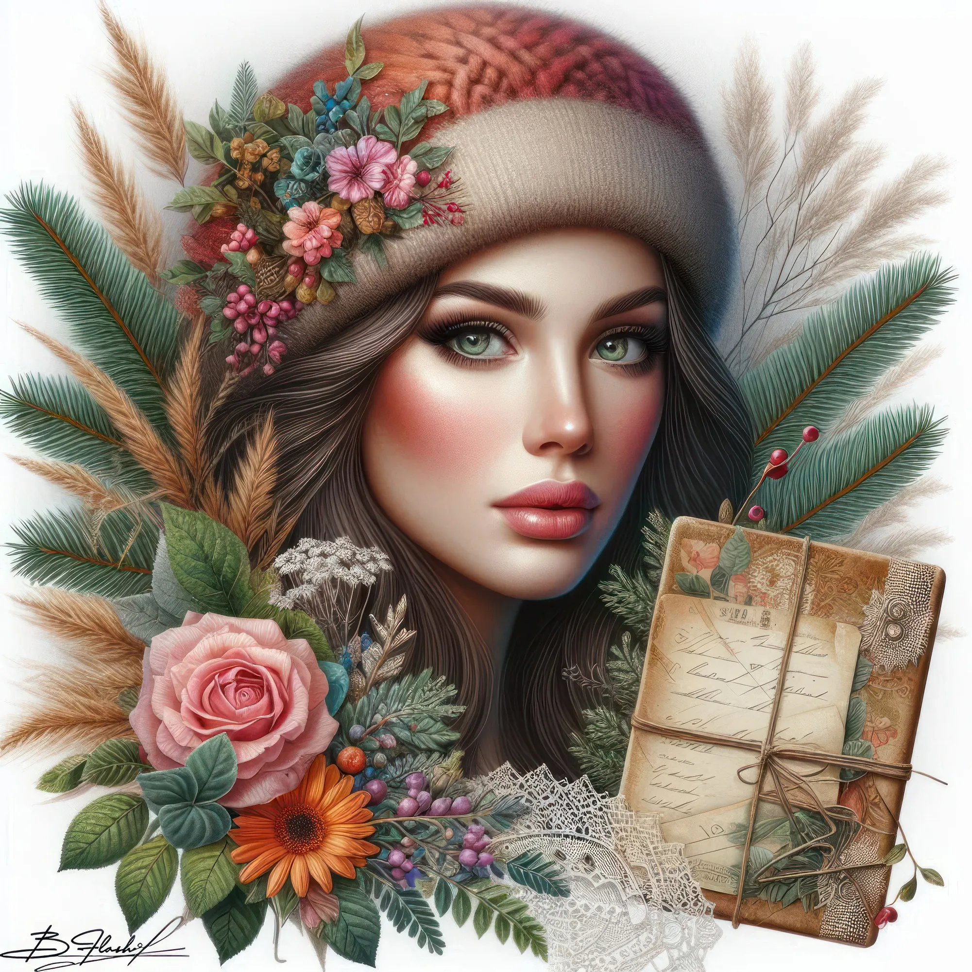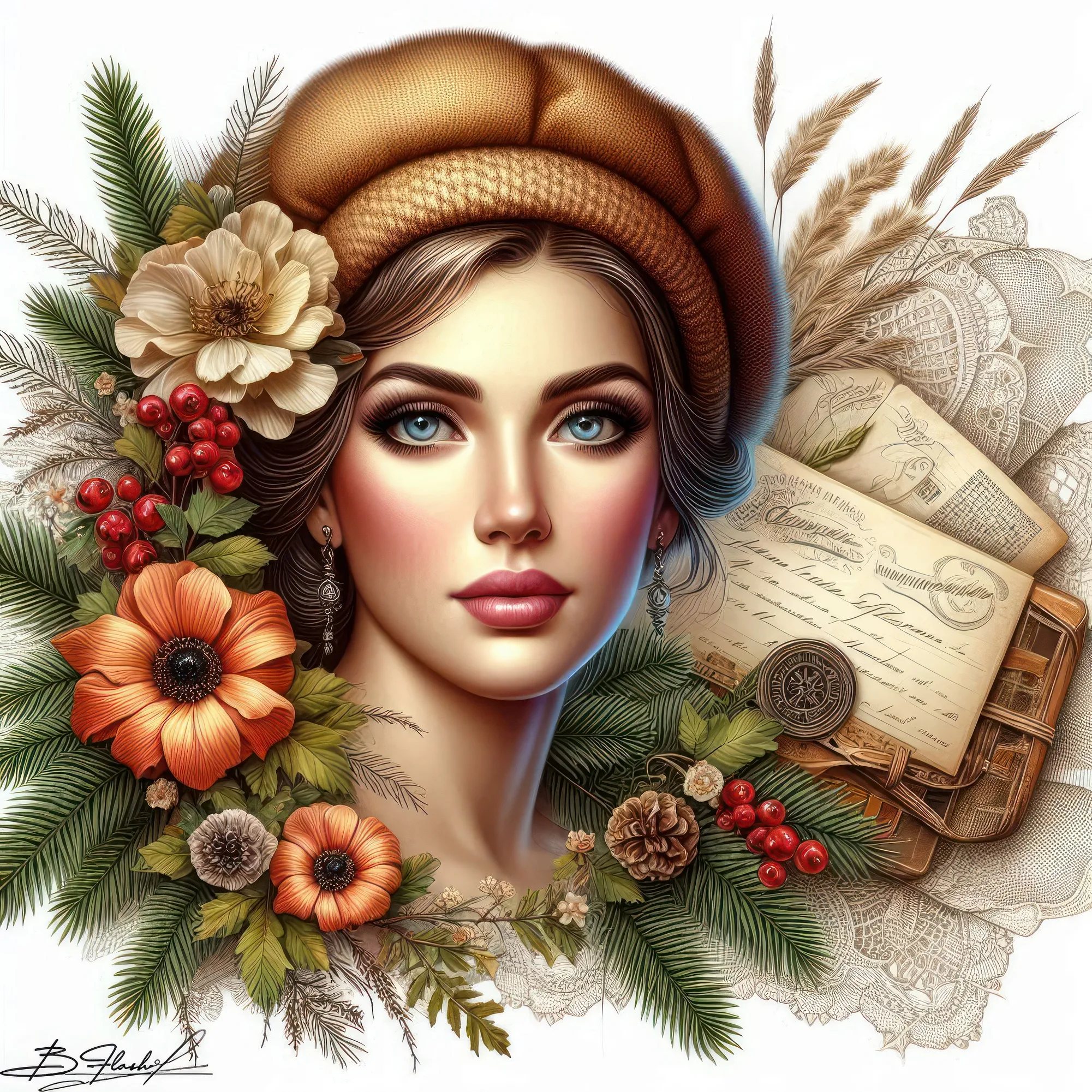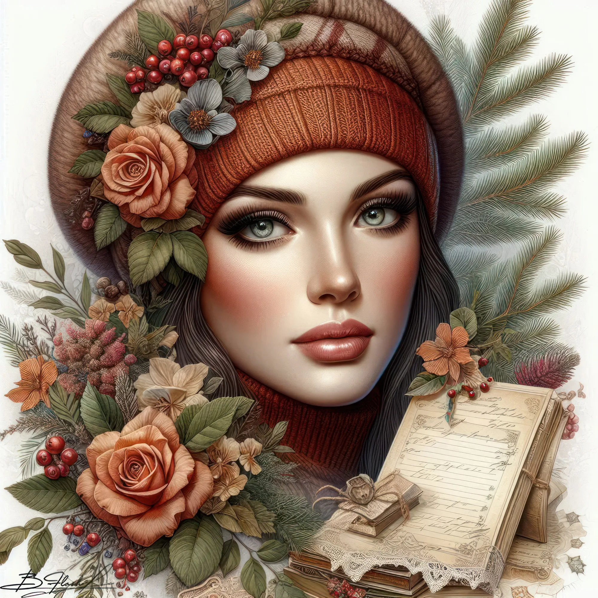Зимние винтажные девушки на белом фоне. ART by Beauti_Flash.