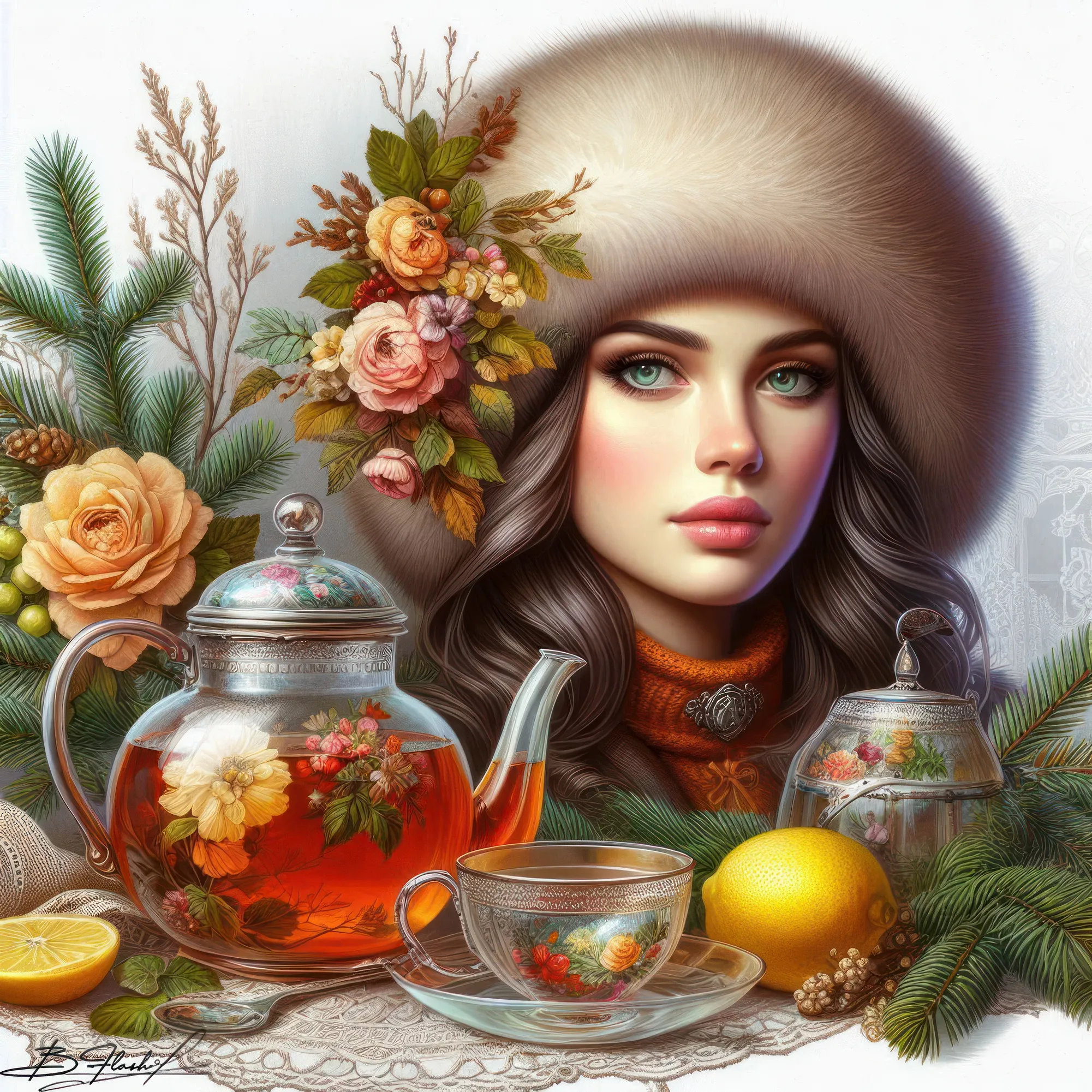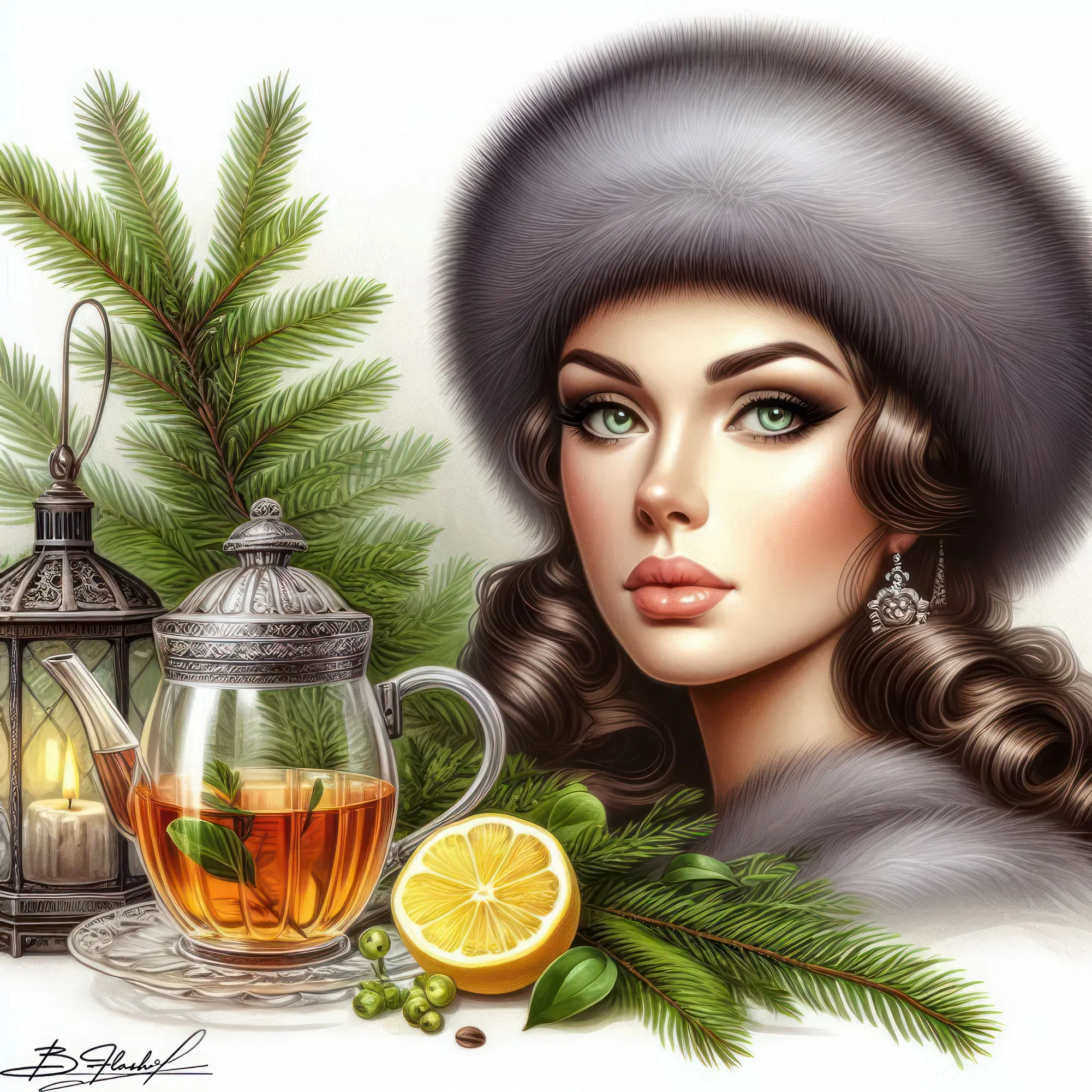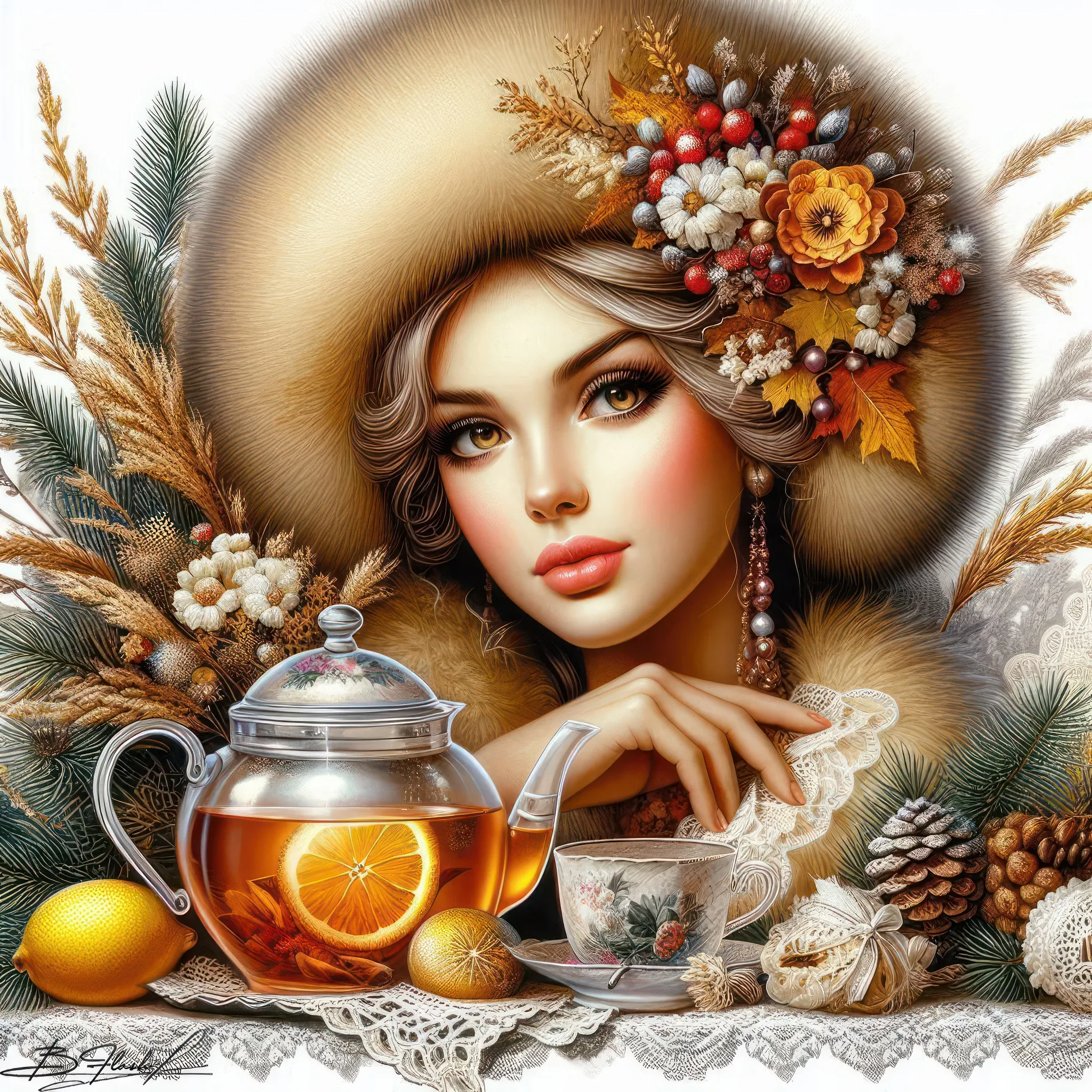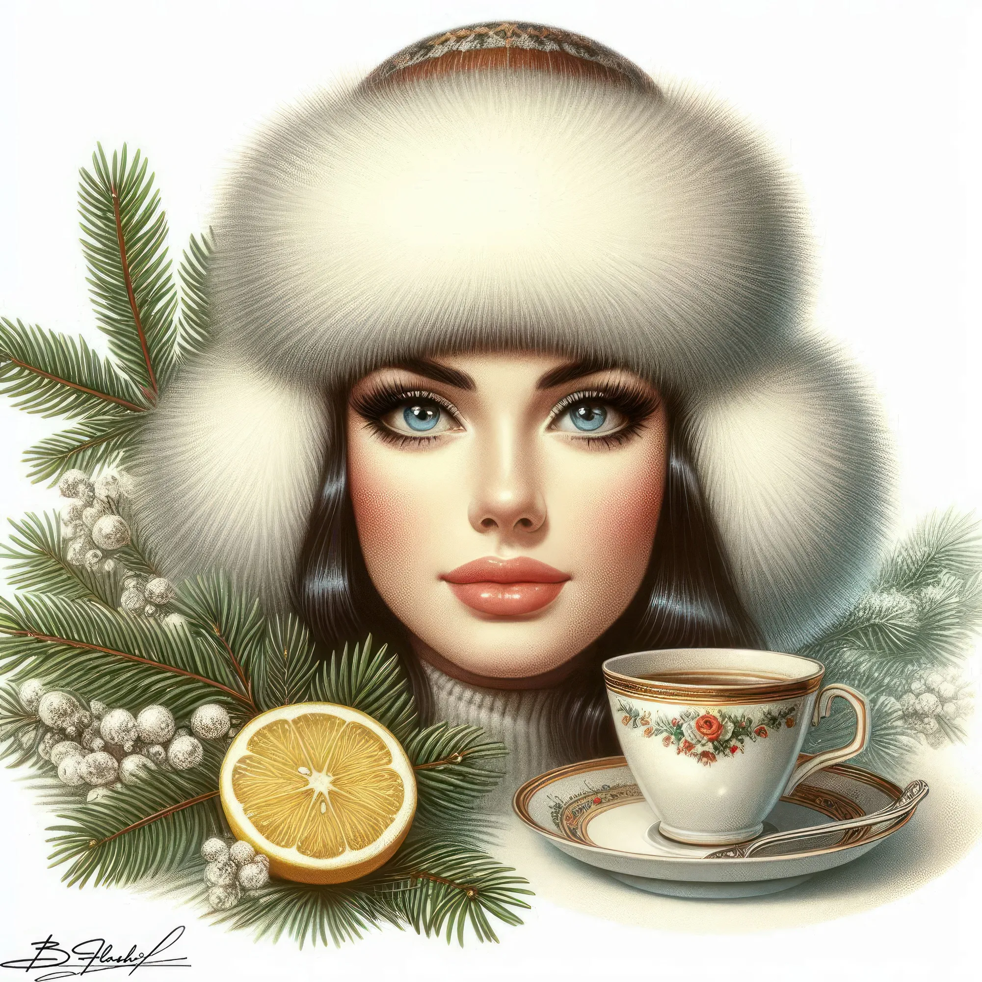 Зимние винтажные девушки. Доброе утро с чаем! ART by Beauti_Flash.