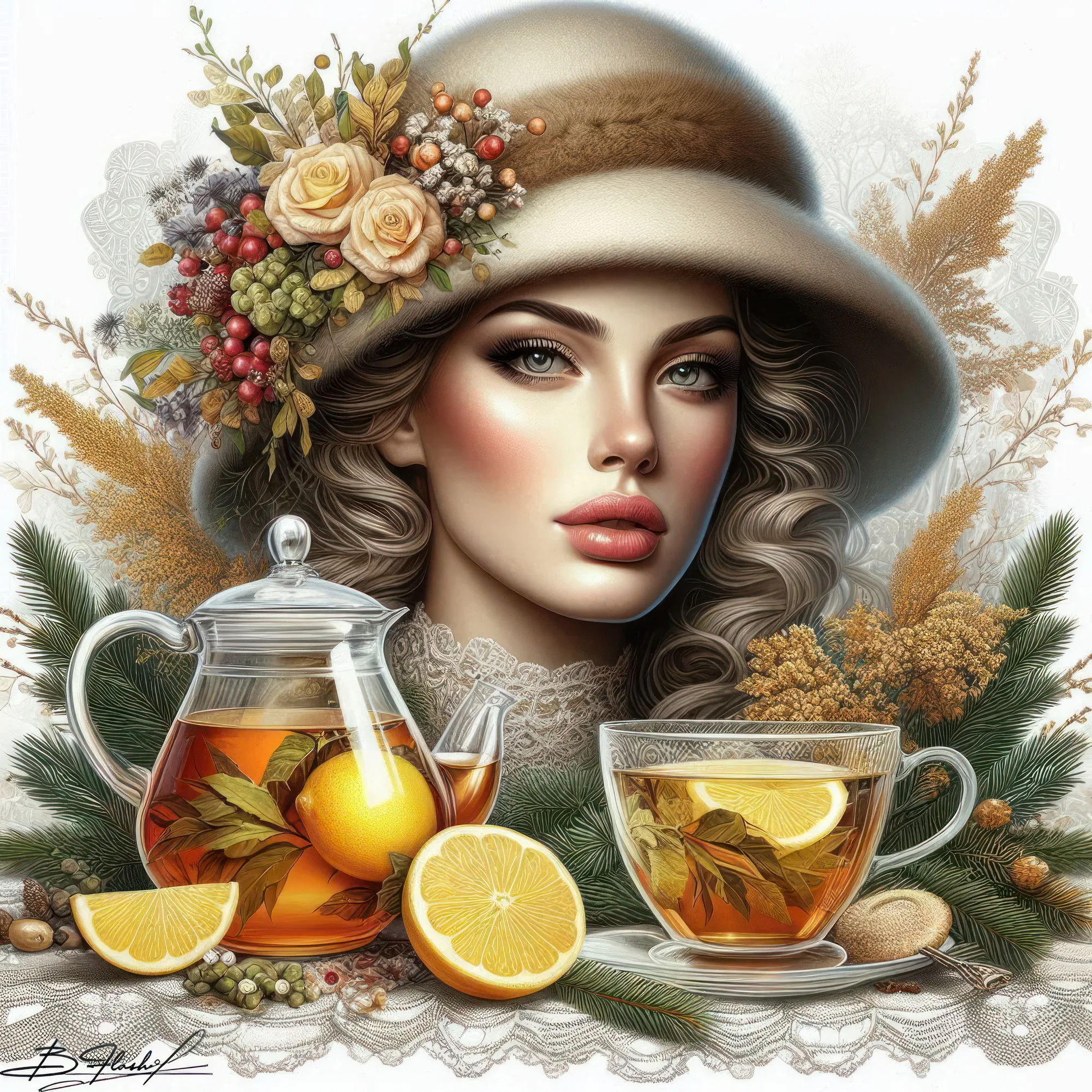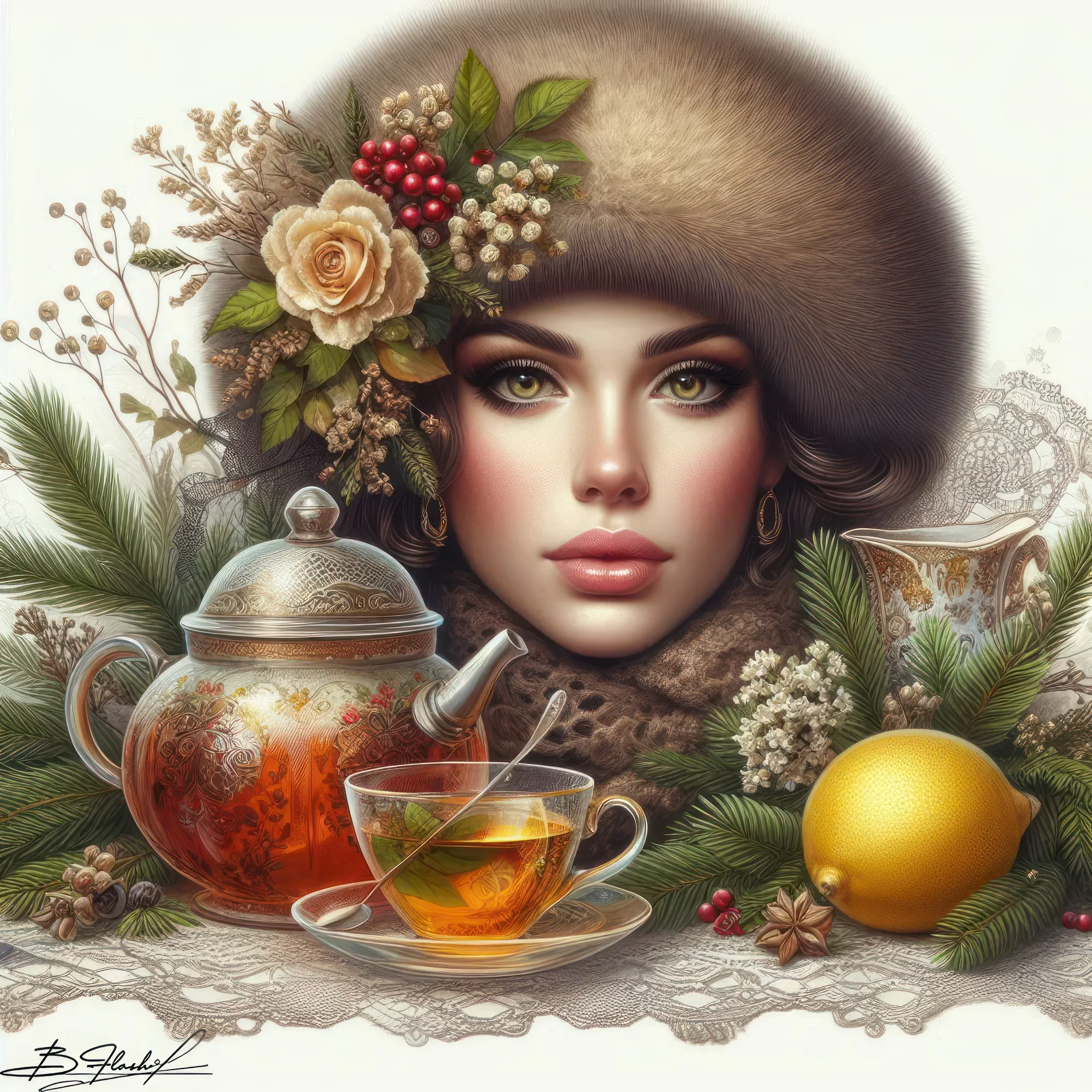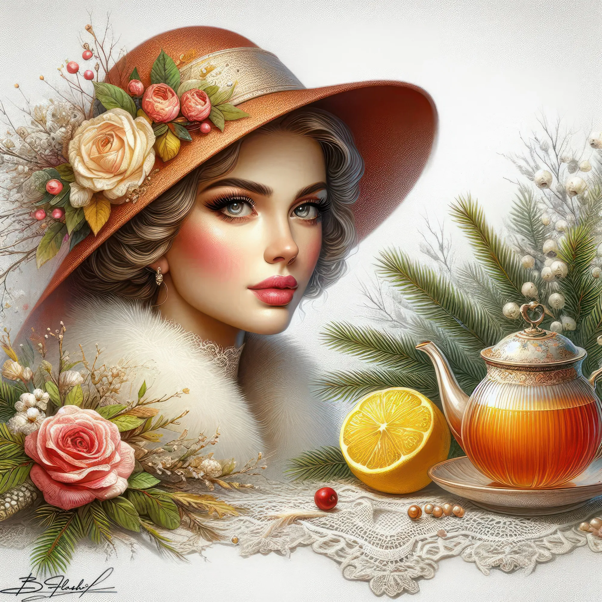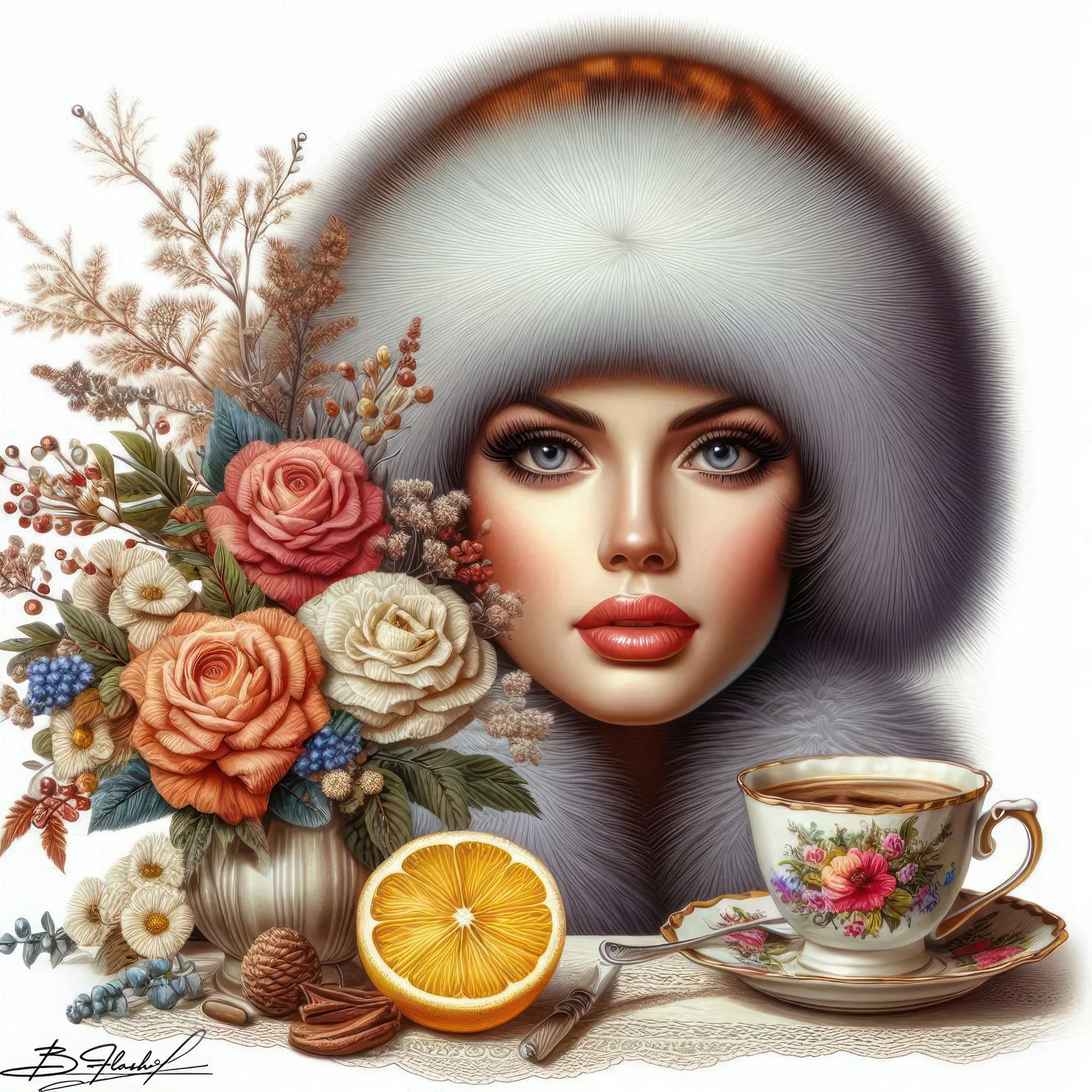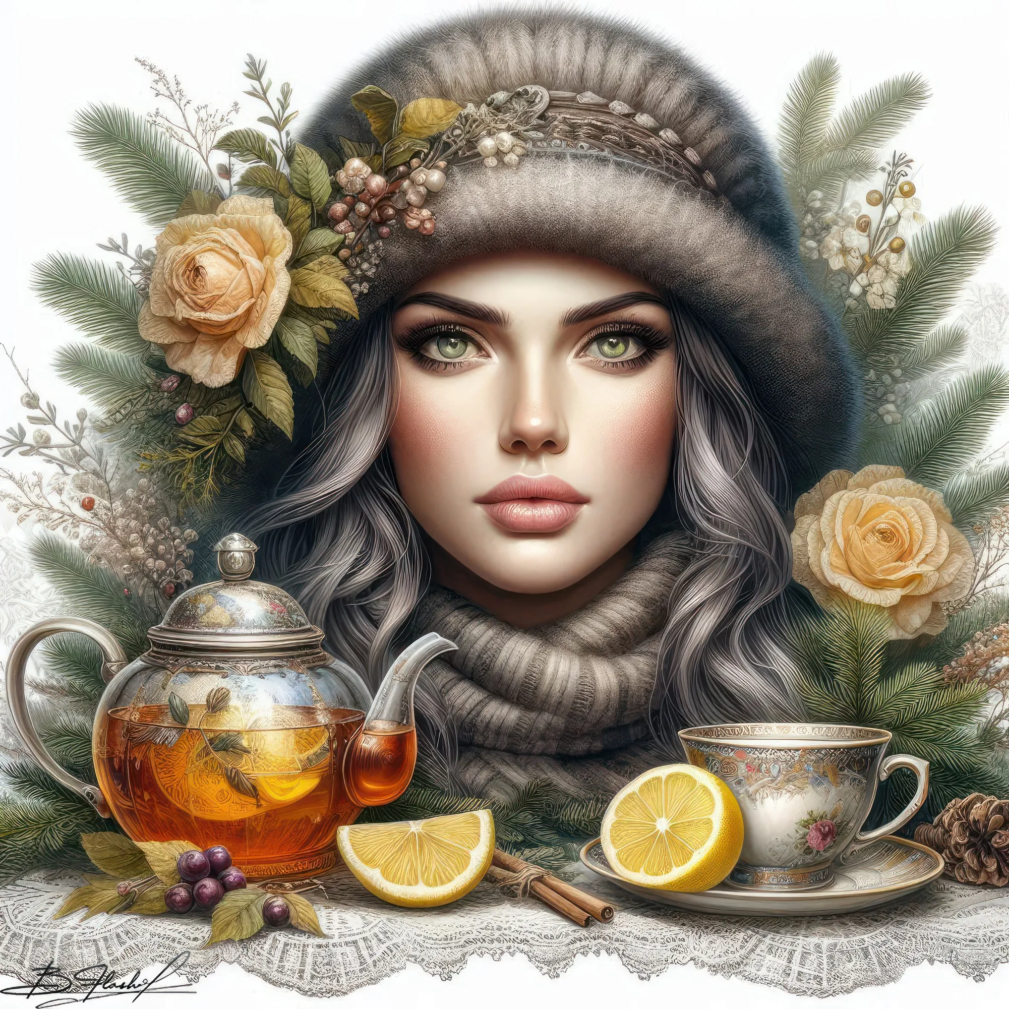 Зимние винтажные девушки. Доброе утро с чаем! ART by Beauti_Flash.