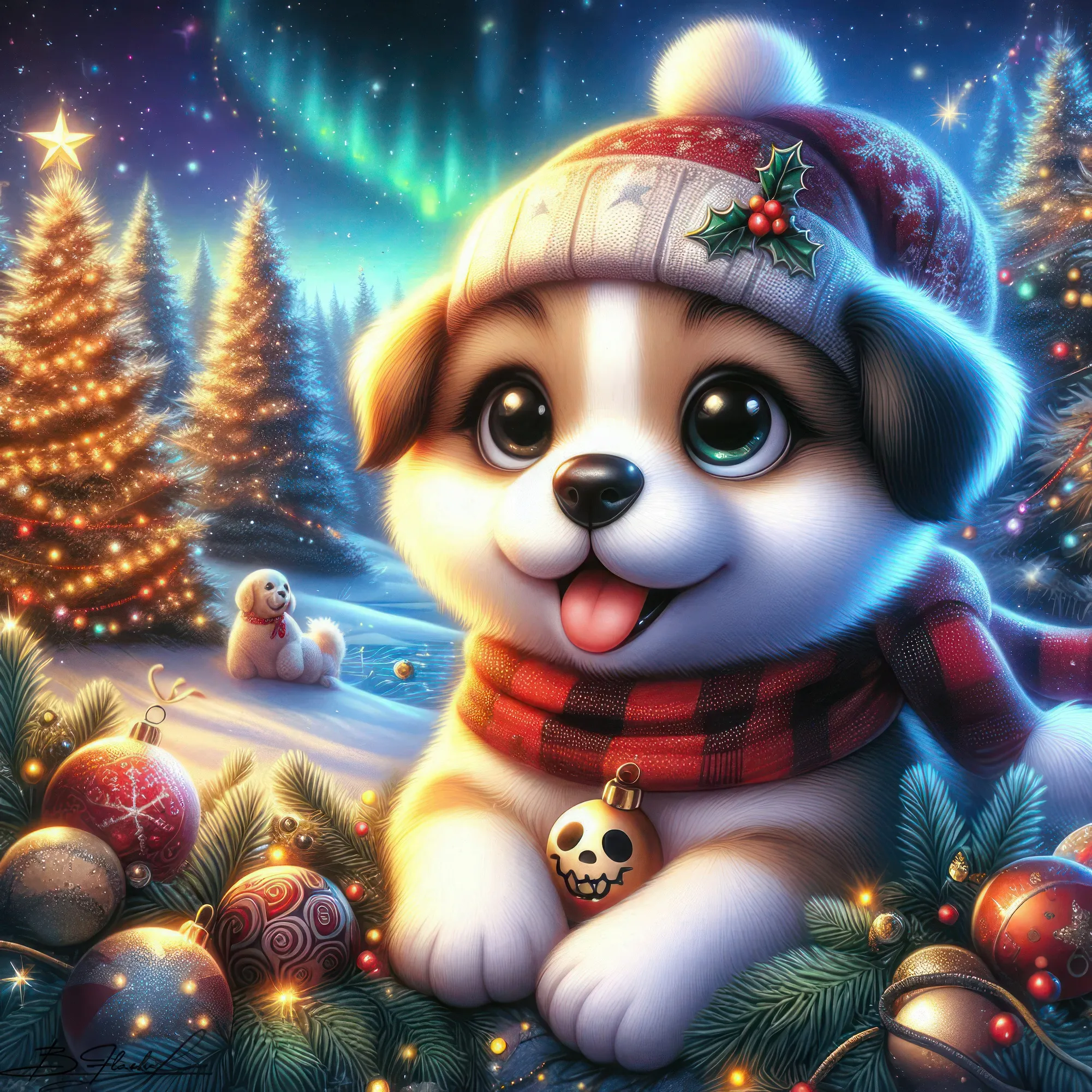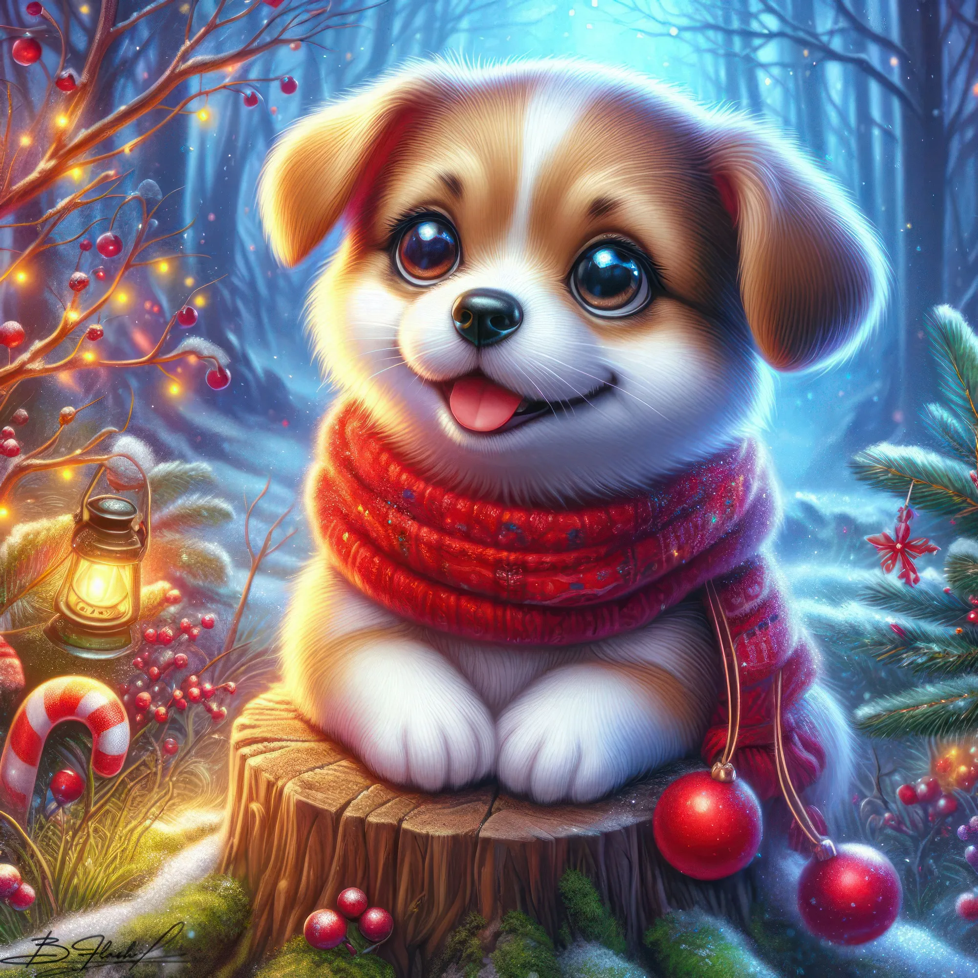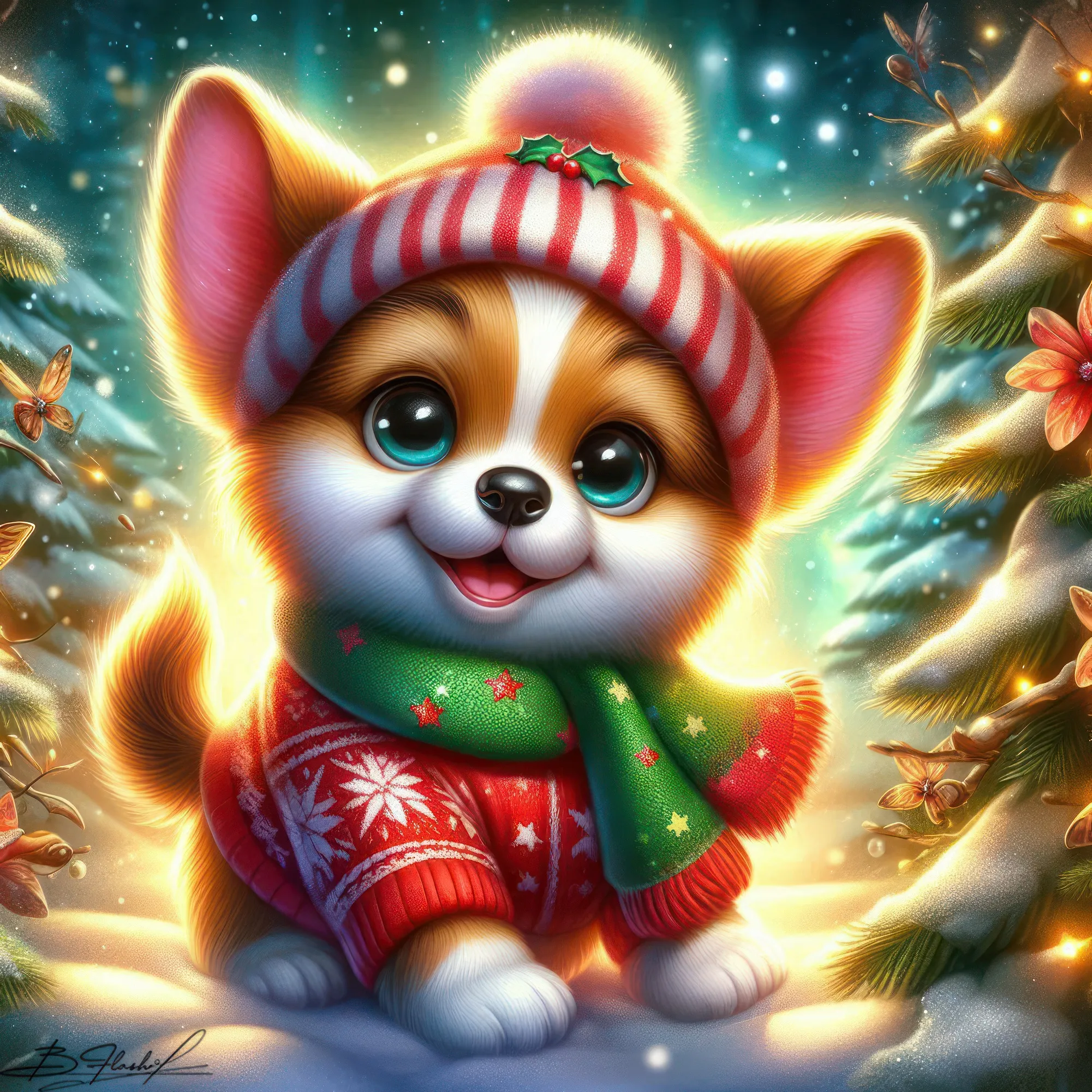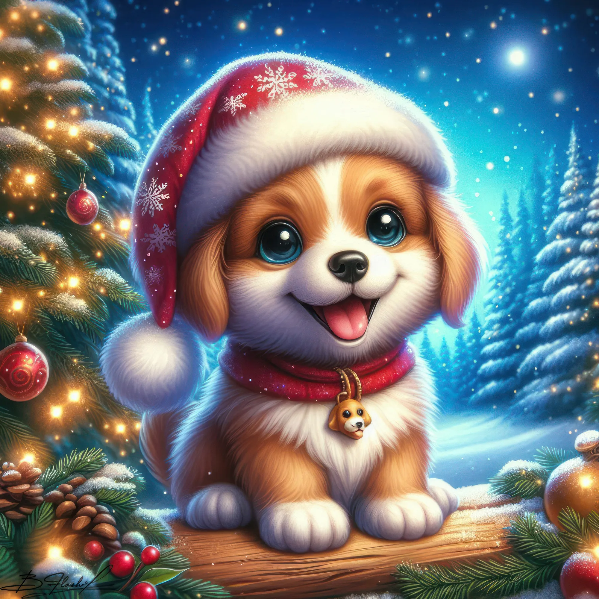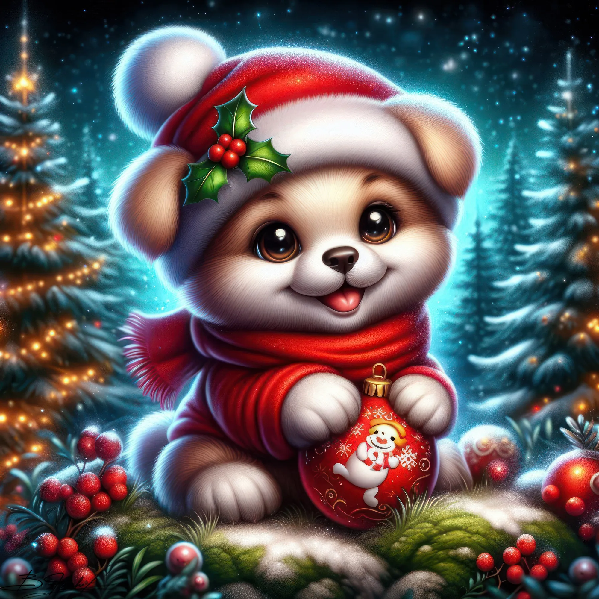 Песик новогодний на зимнем фоне. ART by Beauti_Flash.