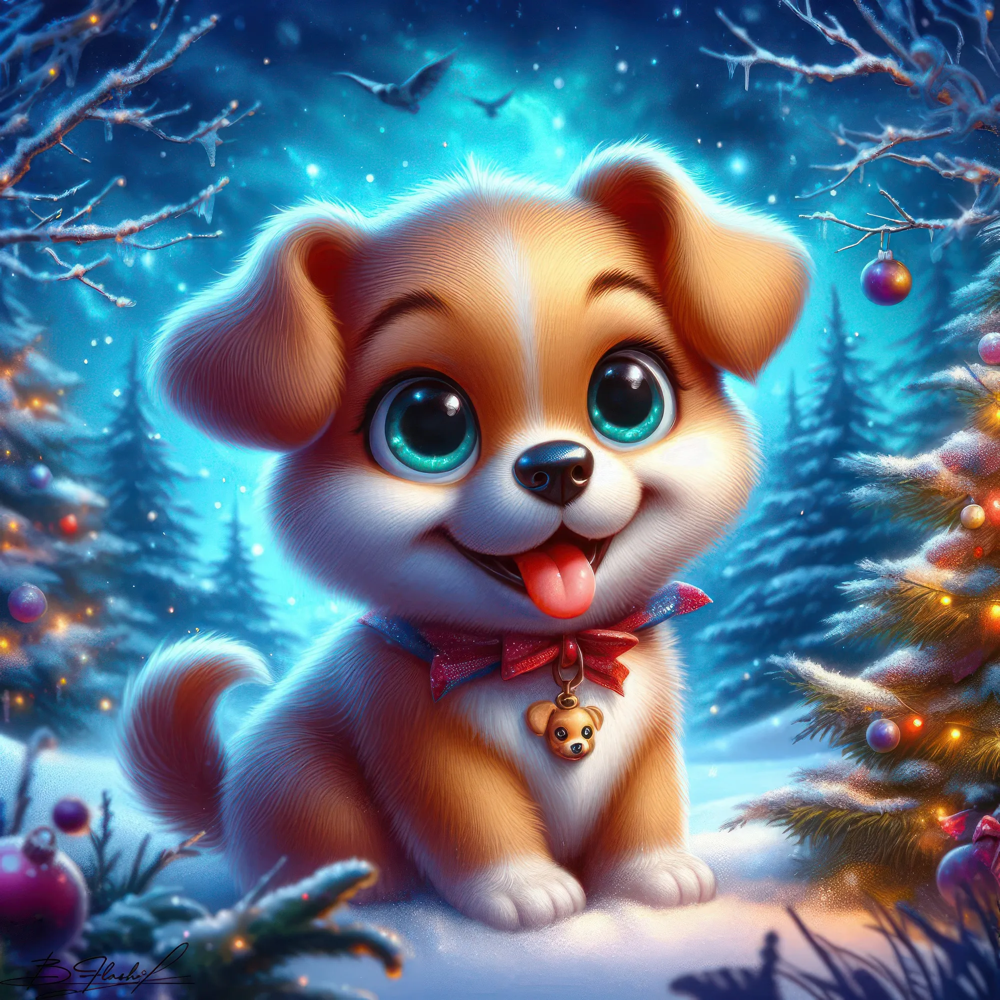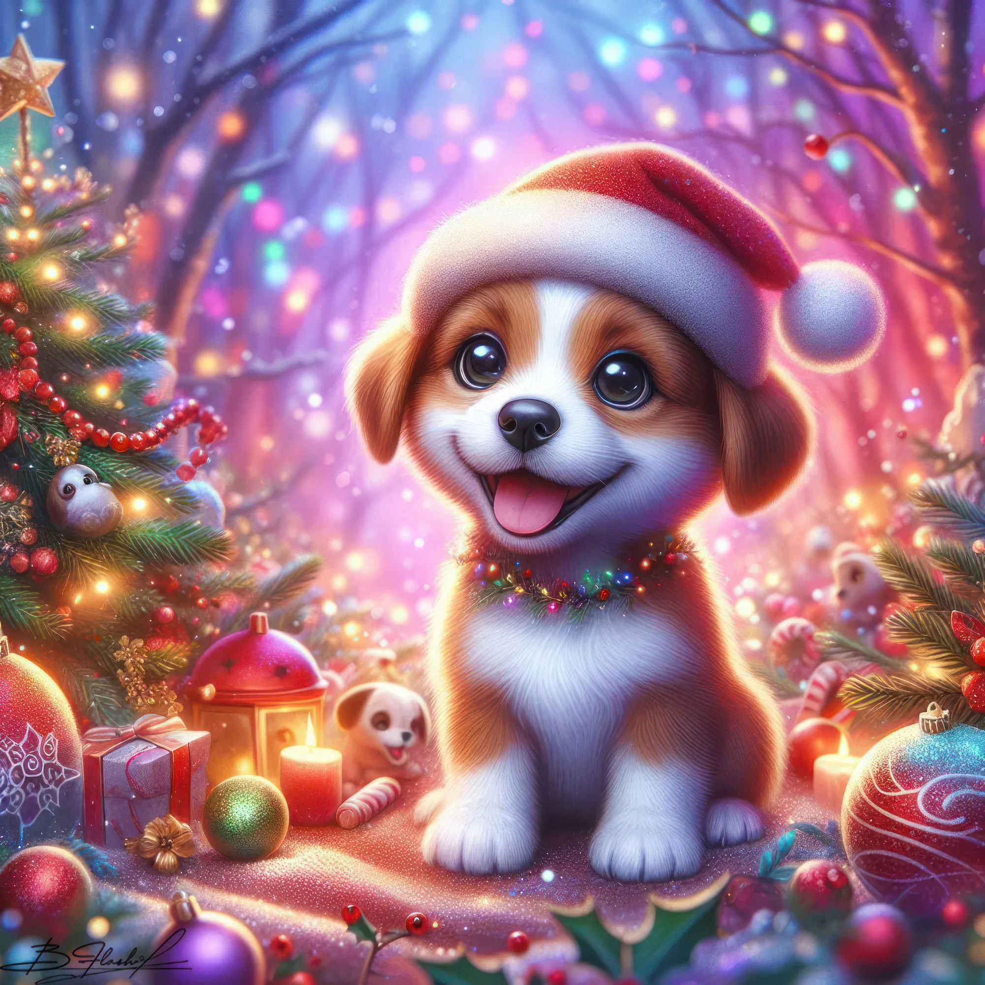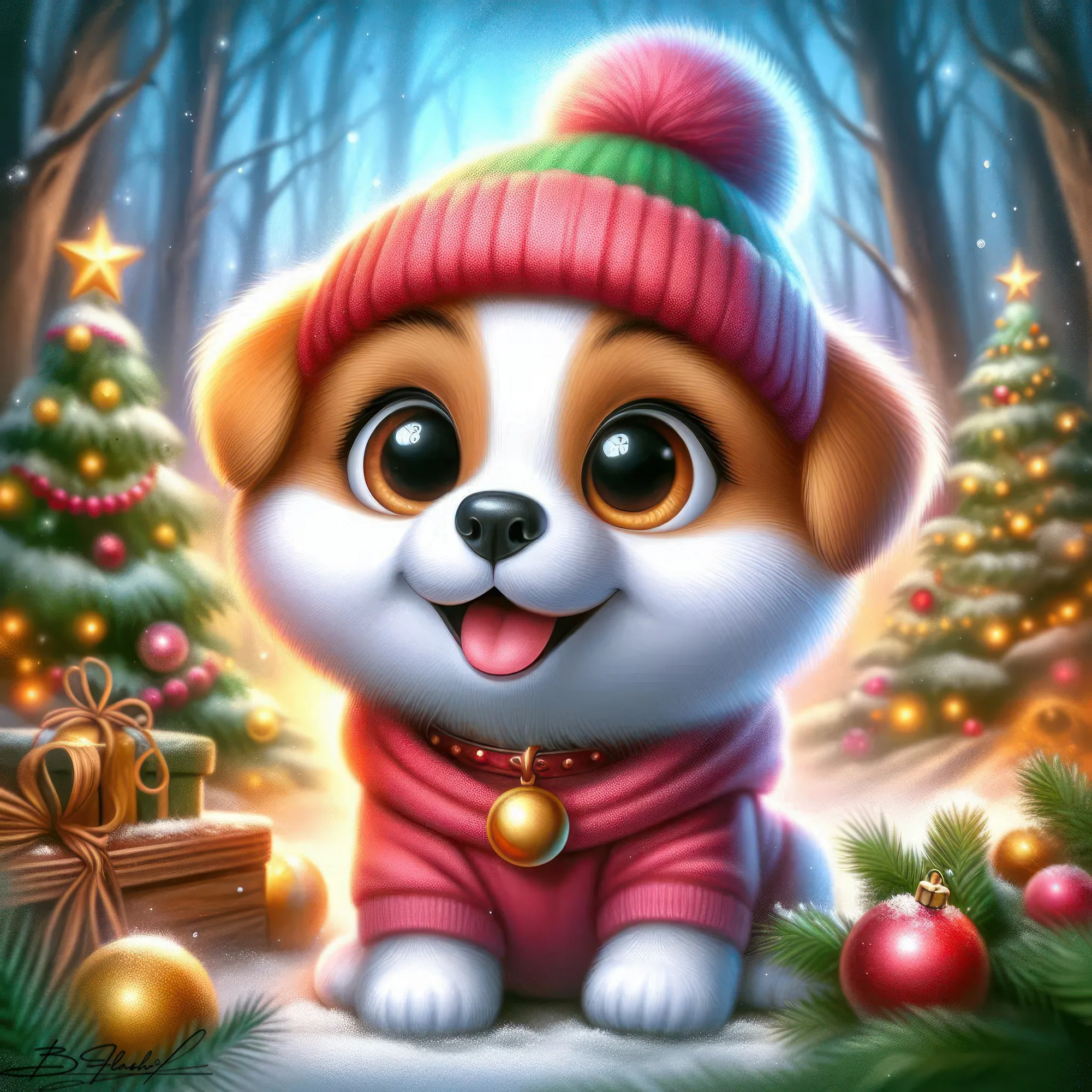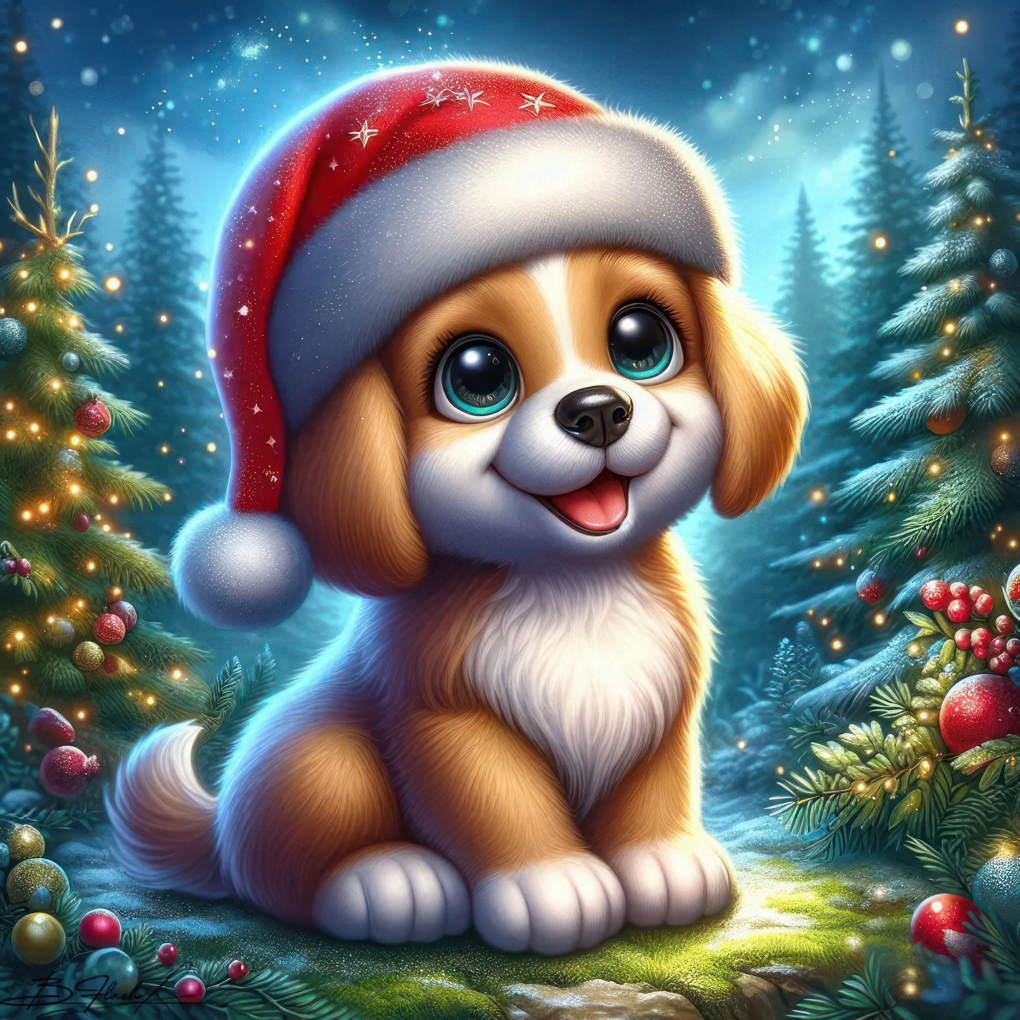 Песик новогодний на зимнем фоне. ART by Beauti_Flash.