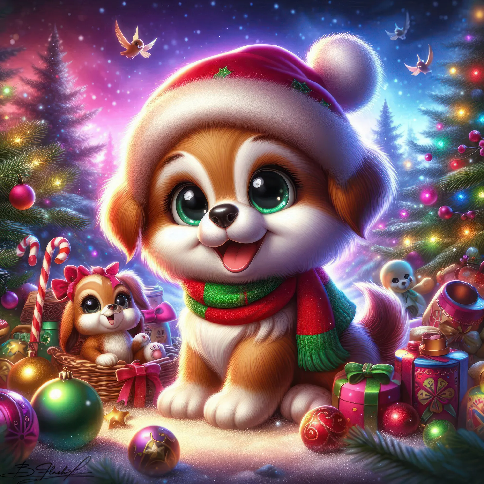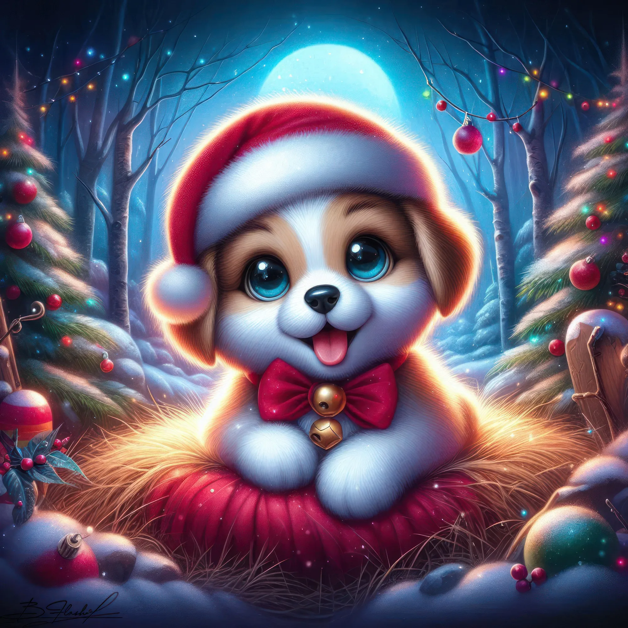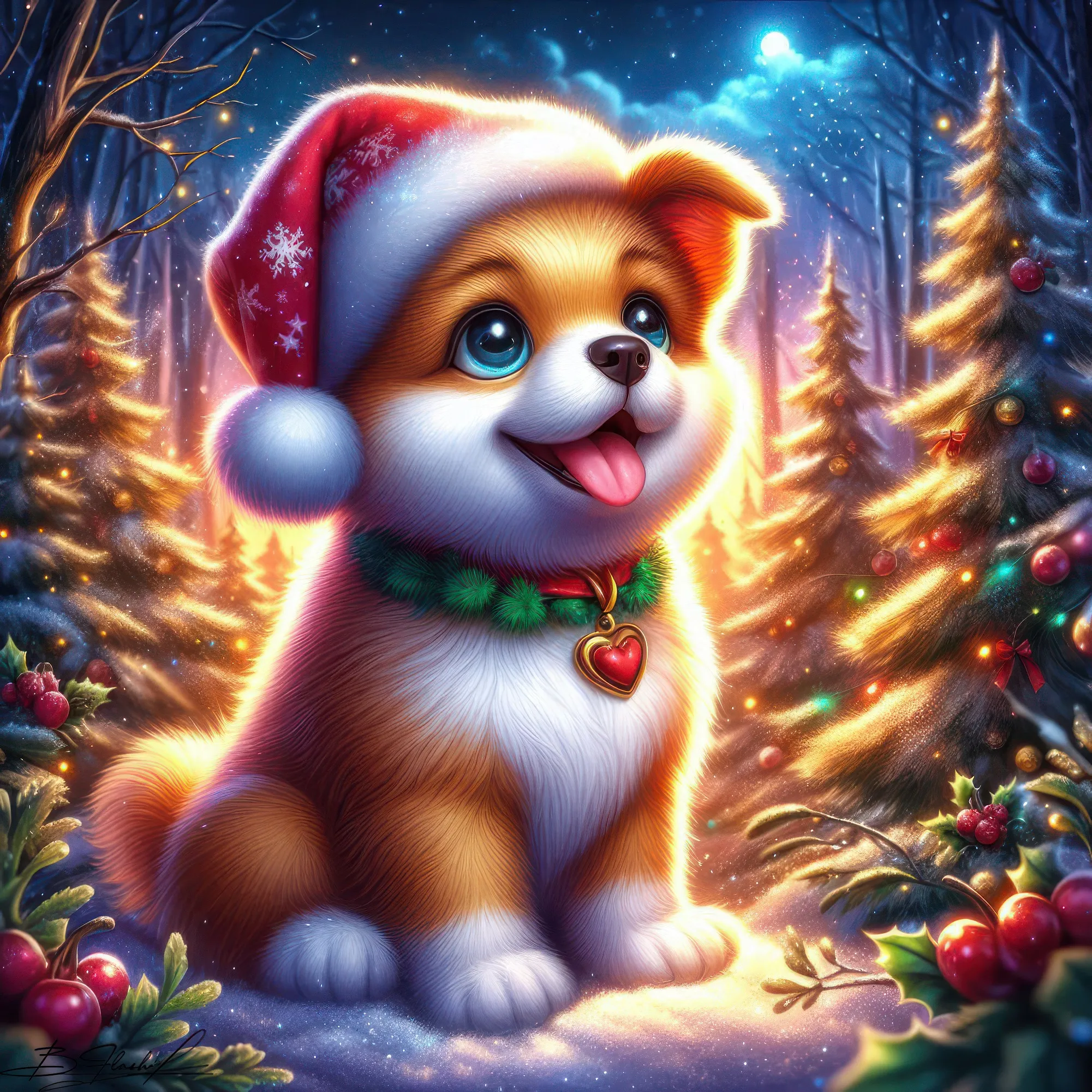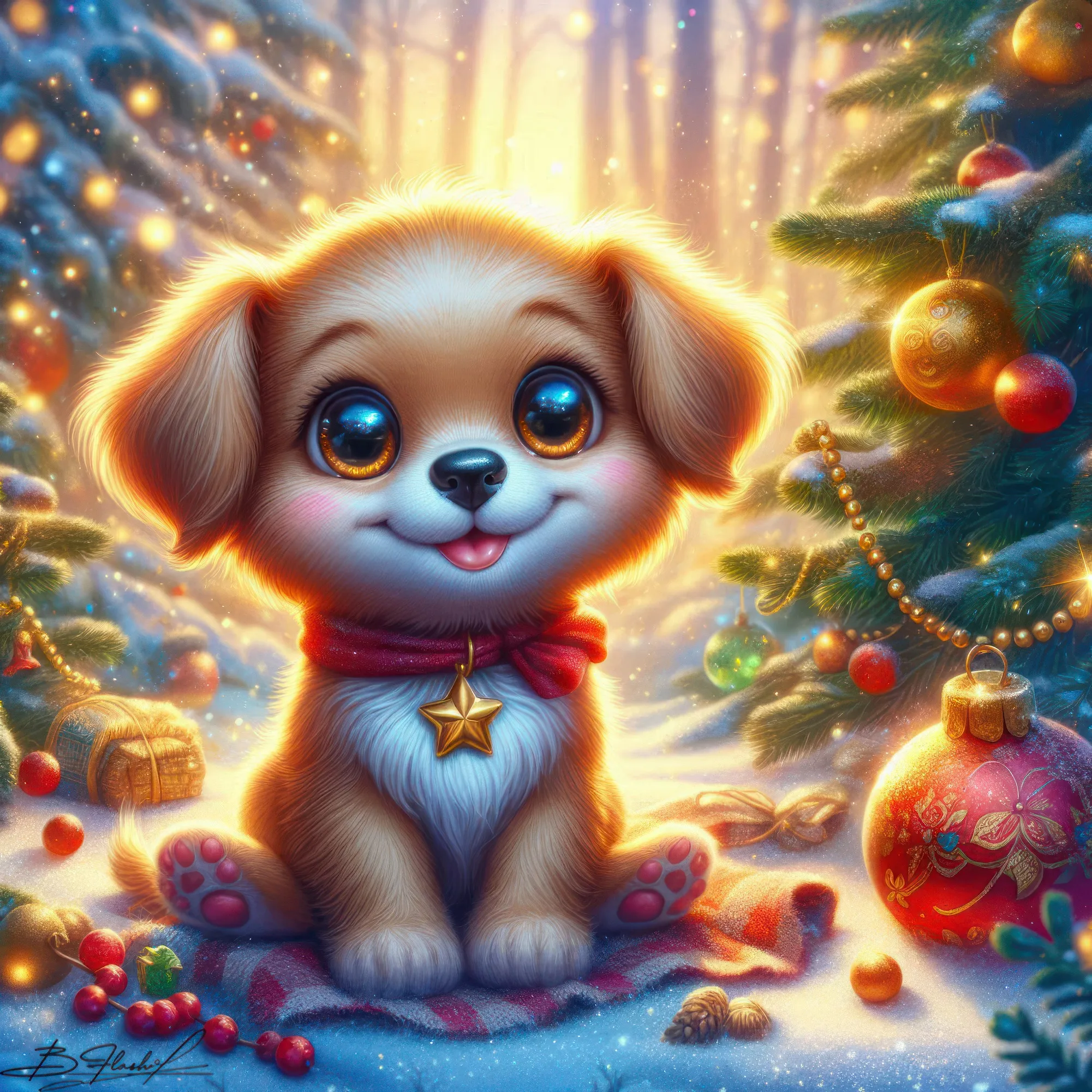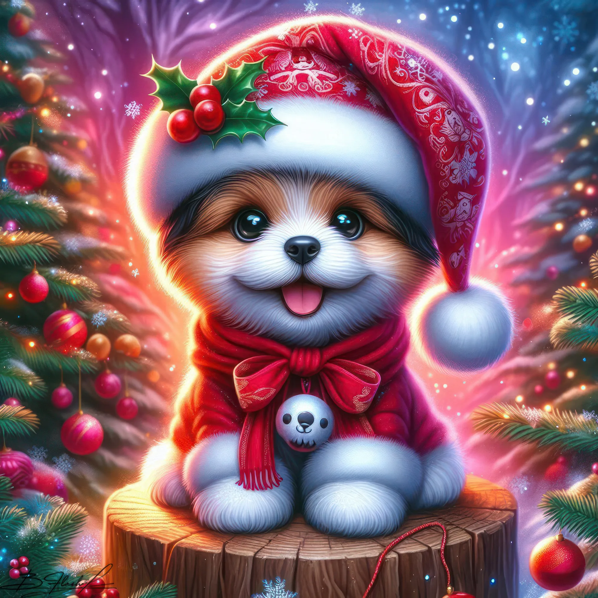 Песик новогодний на зимнем фоне. ART by Beauti_Flash.