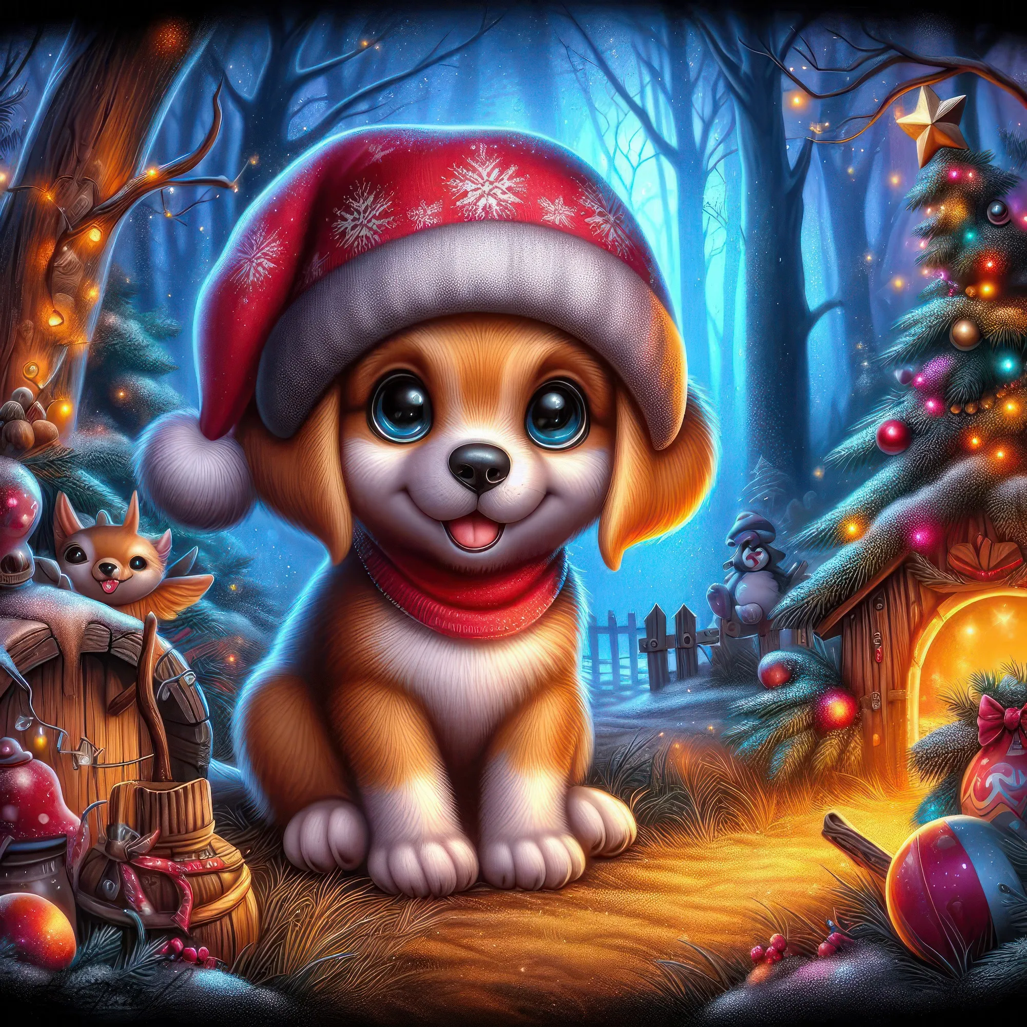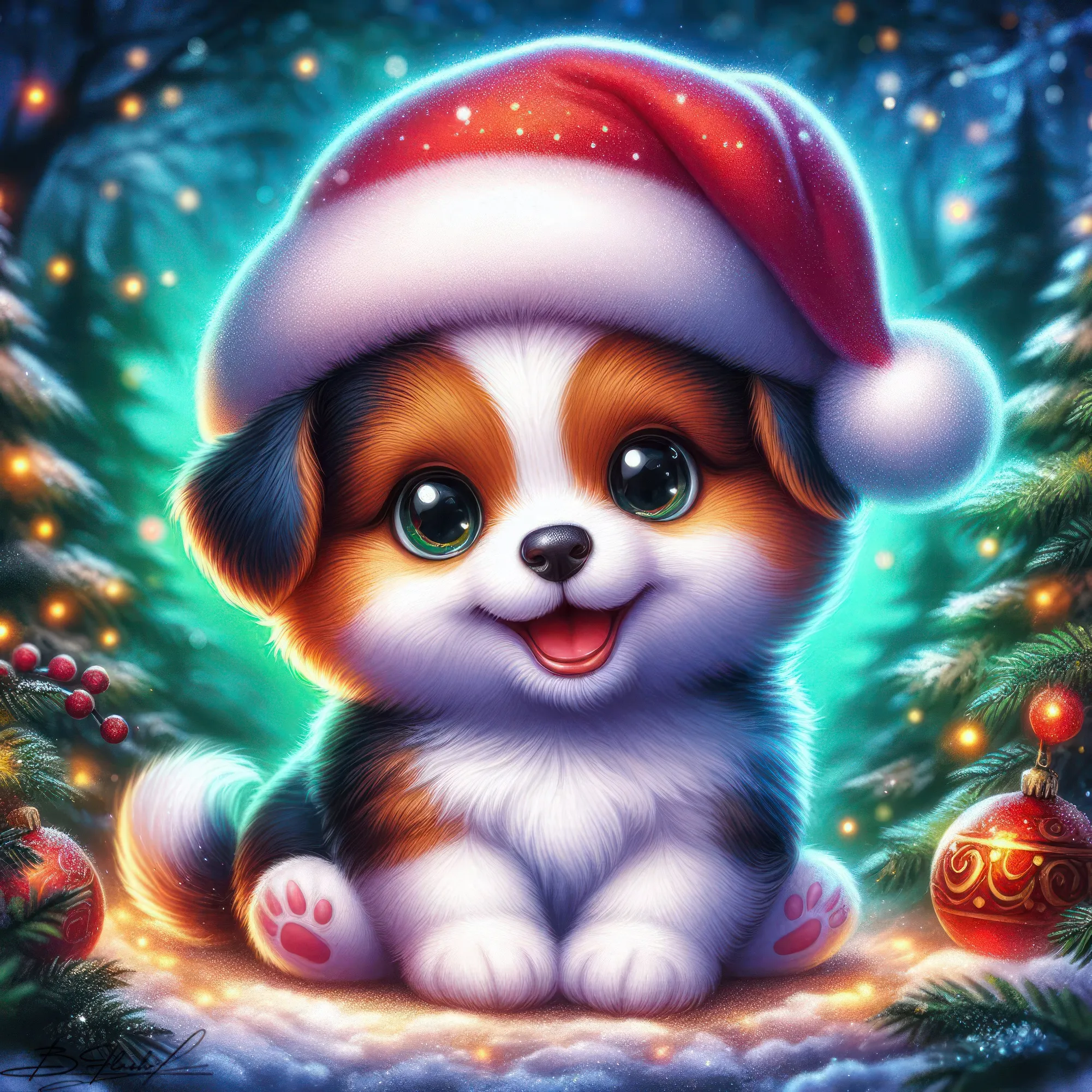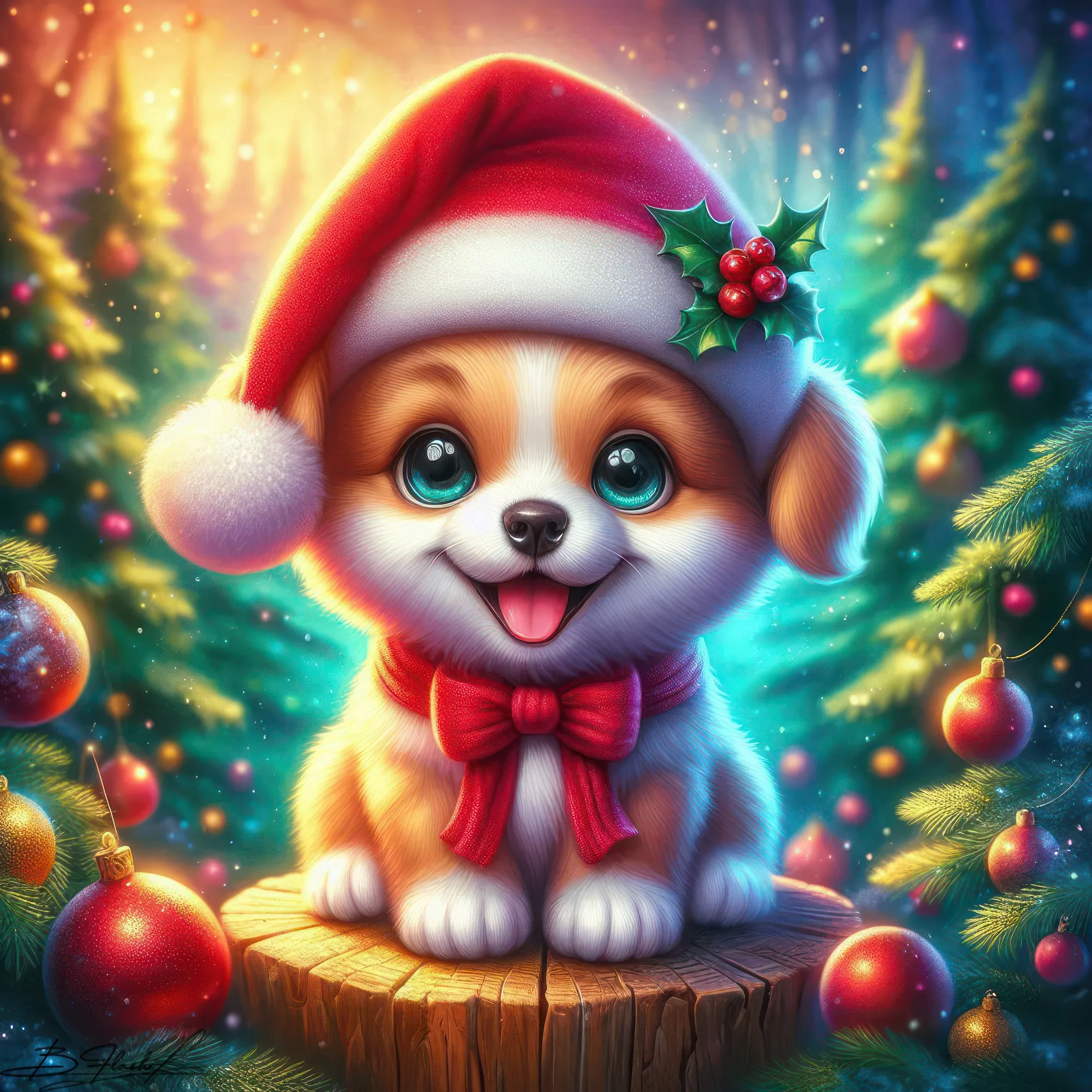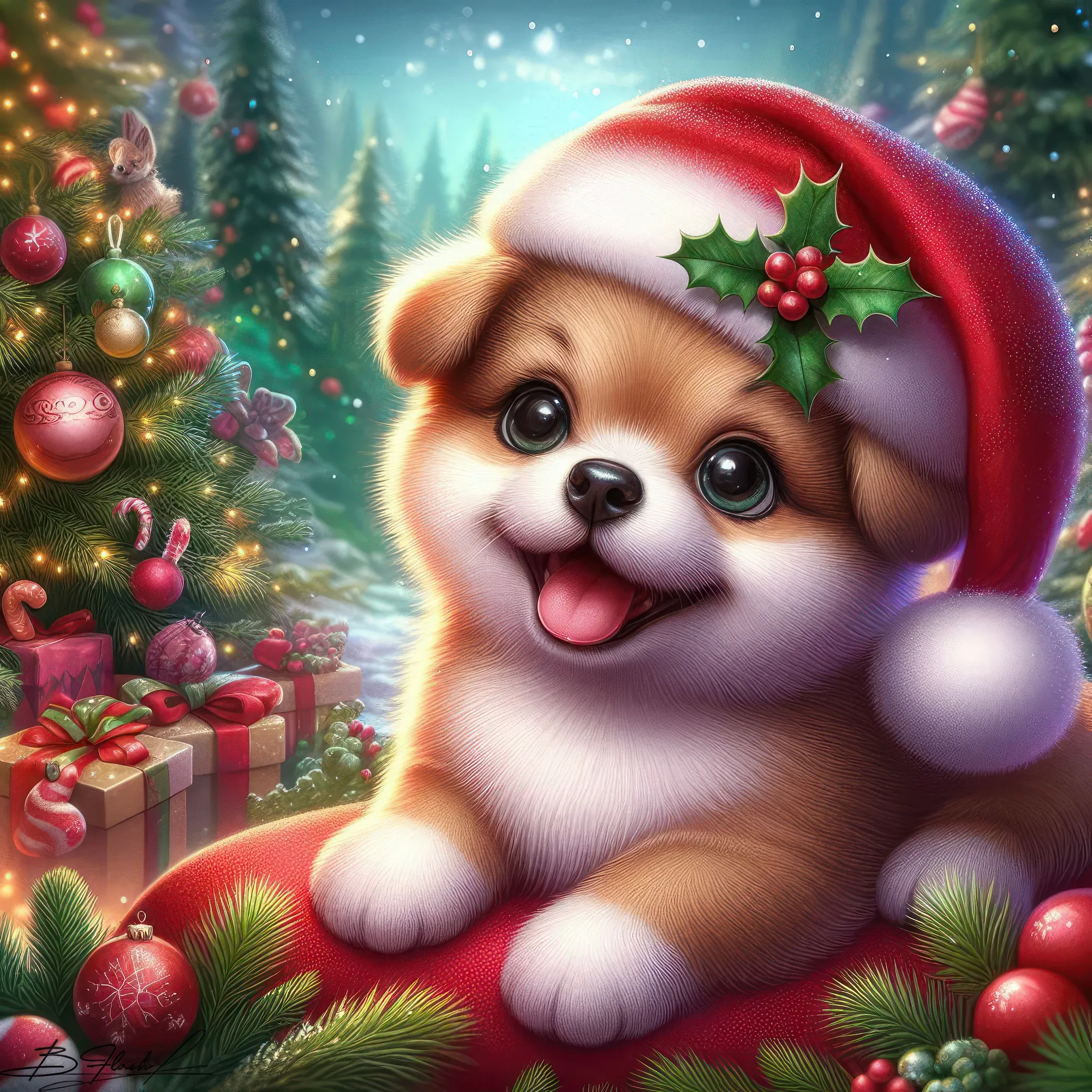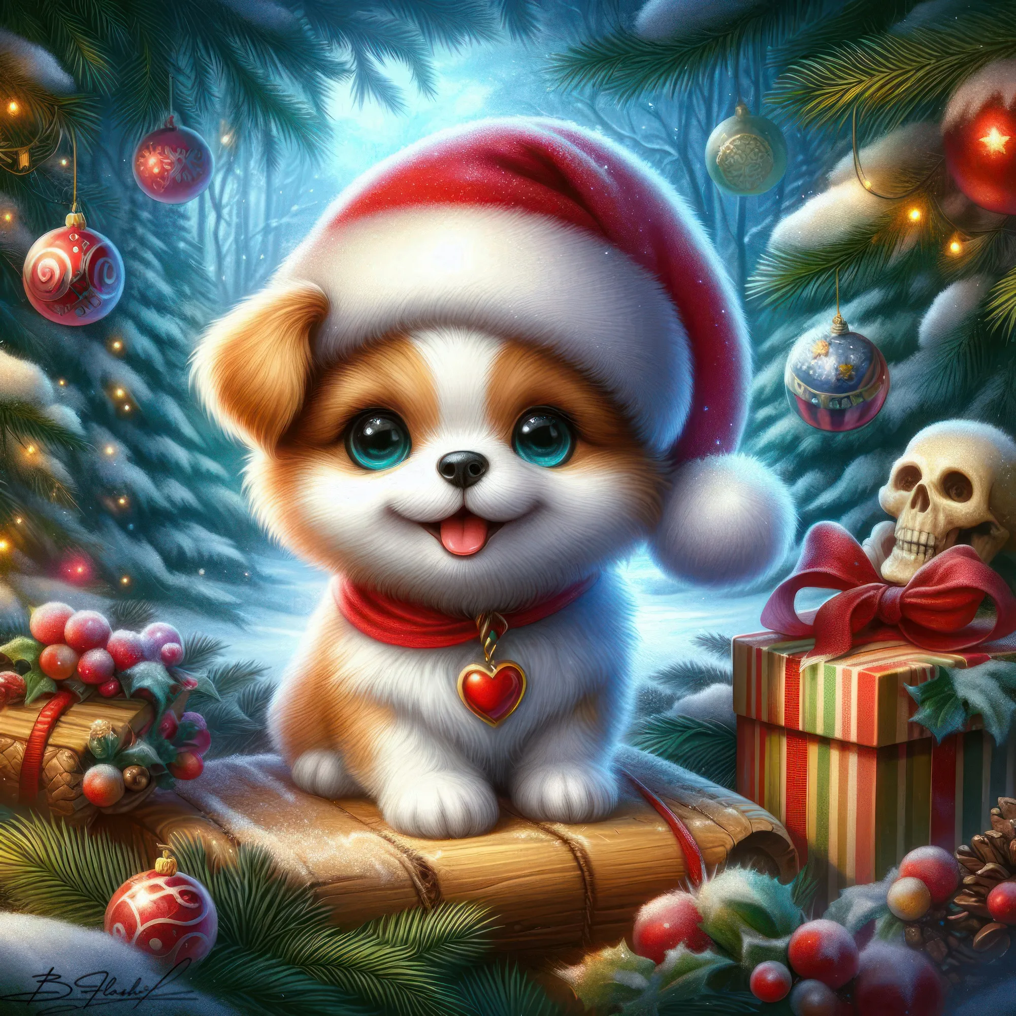 Песик новогодний на зимнем фоне. ART by Beauti_Flash.