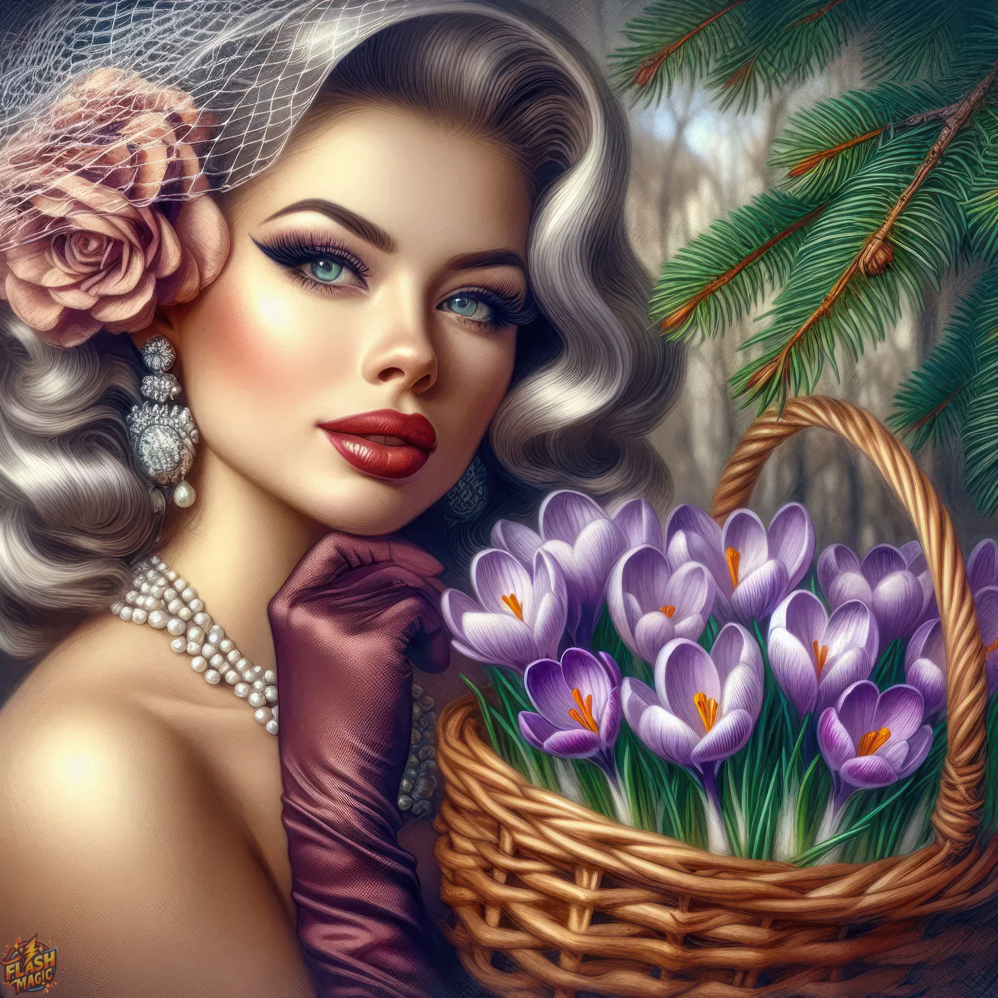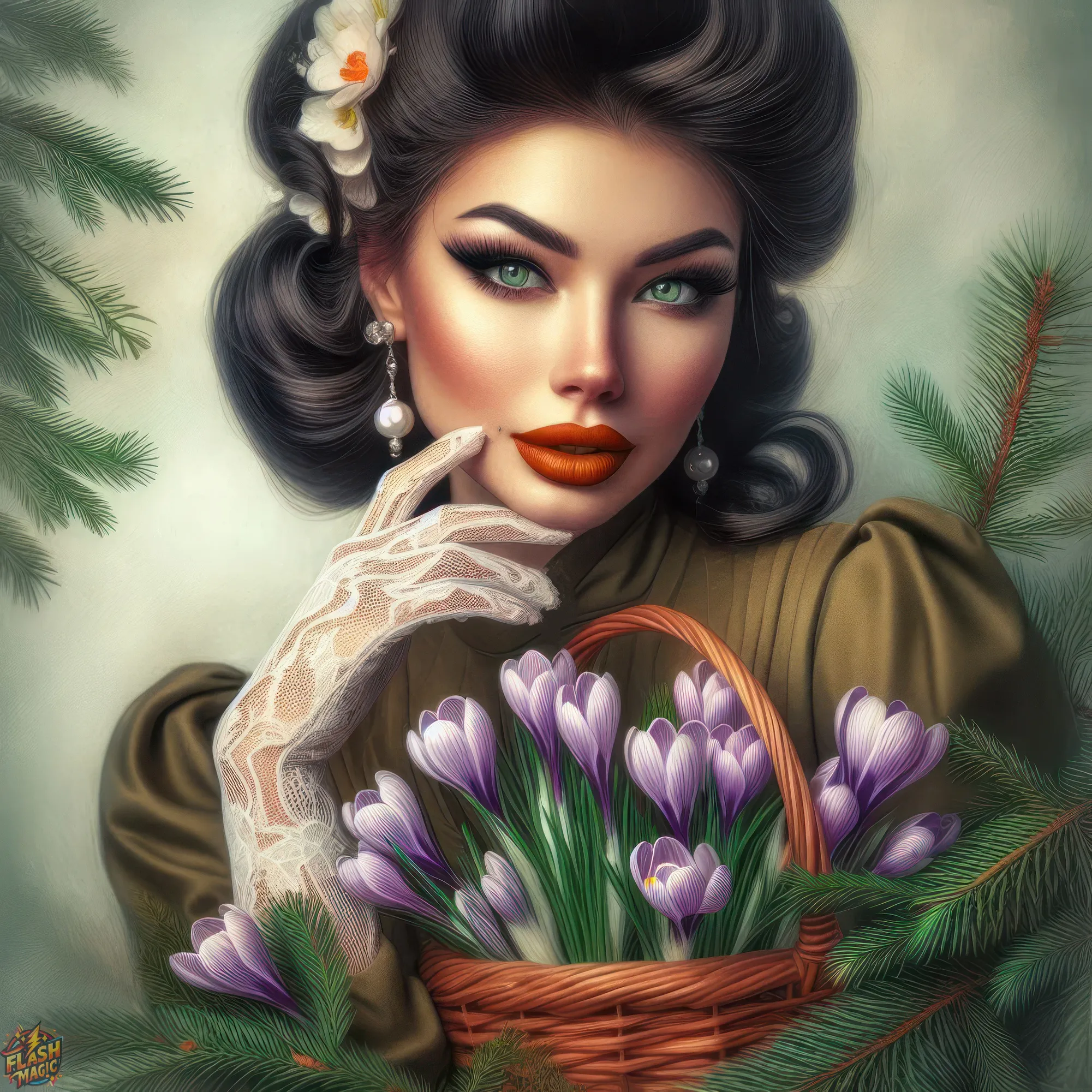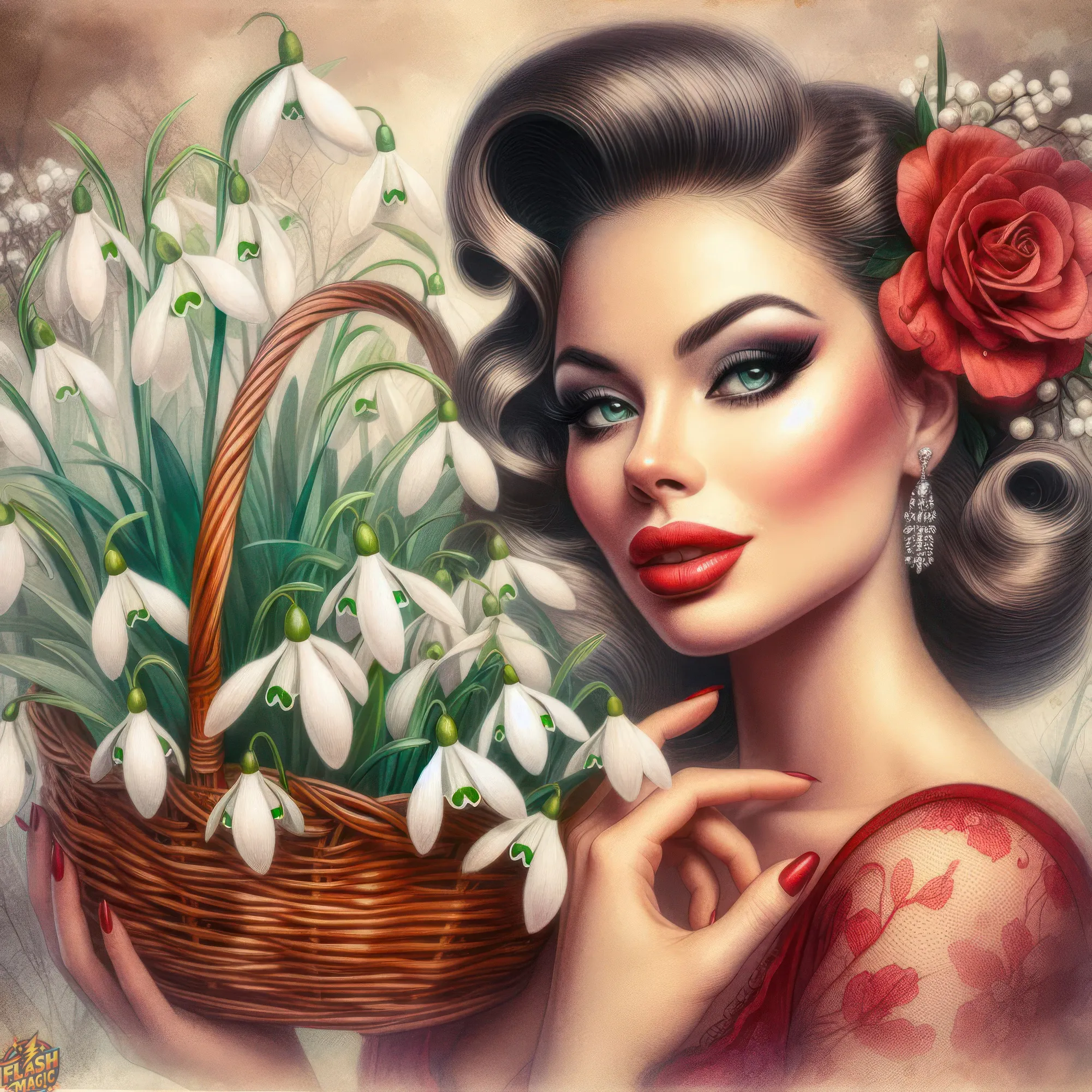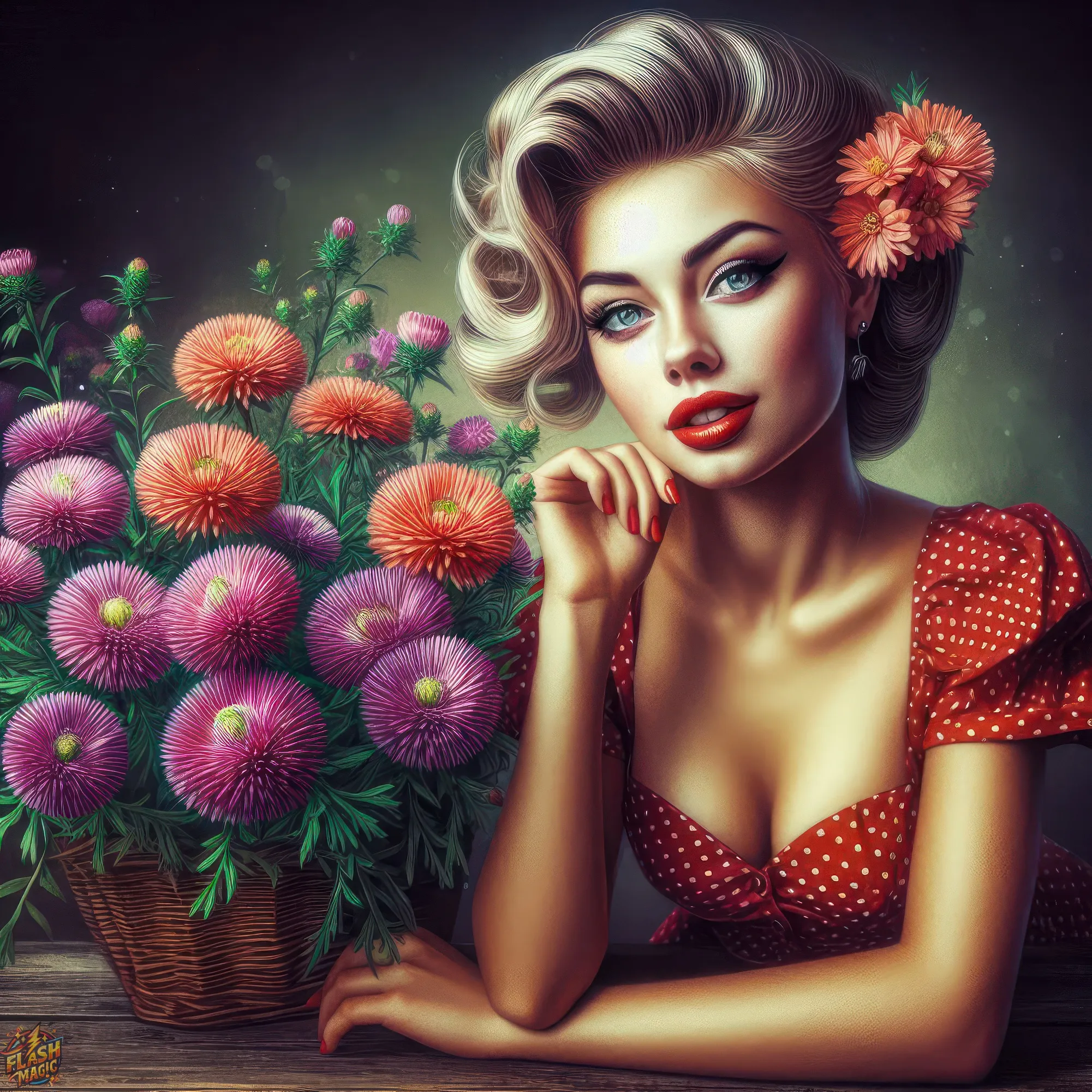 Тема "Женщина и цветы". Стиль ретро. ART by Flash Magic
