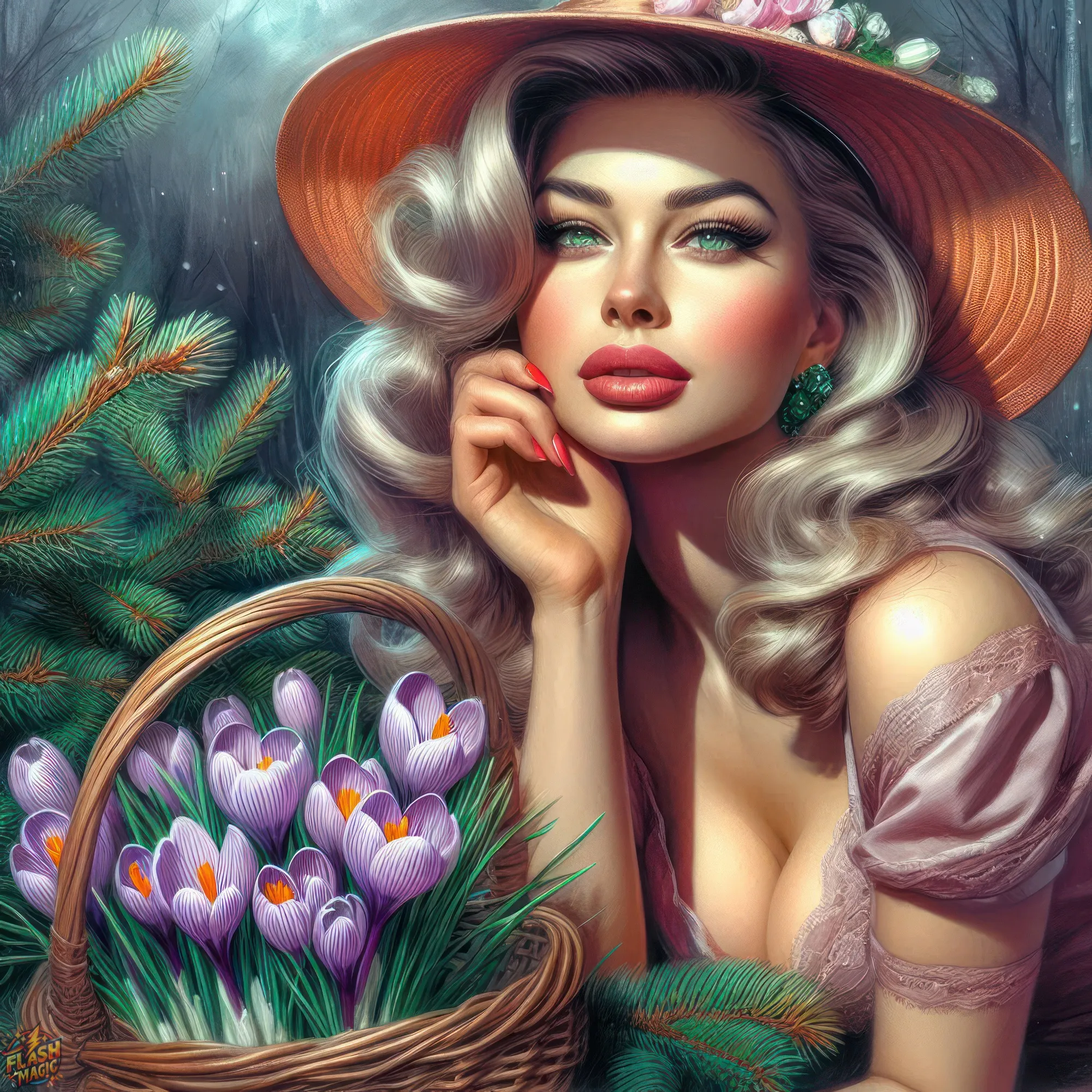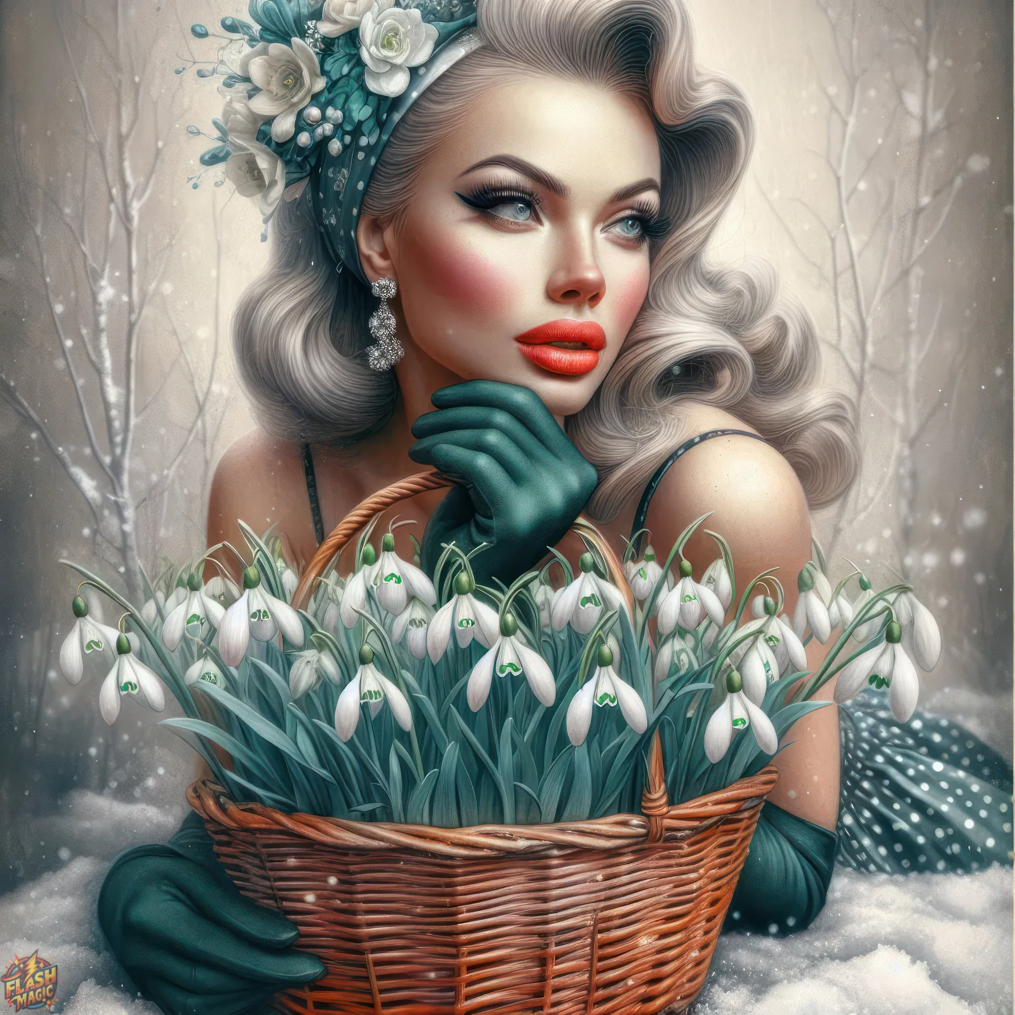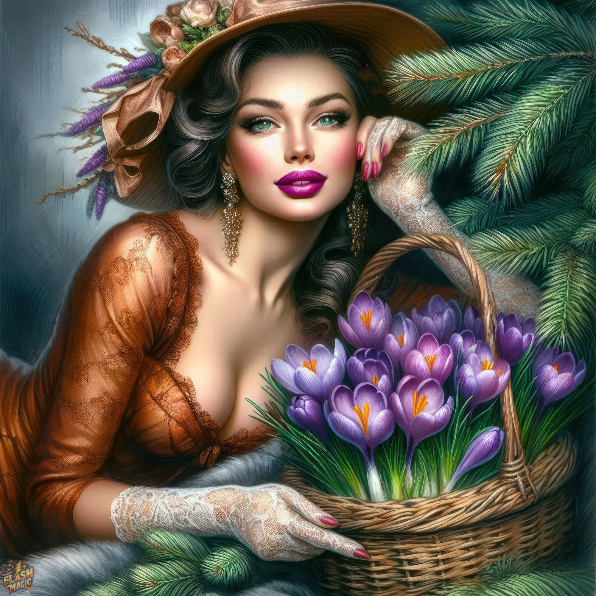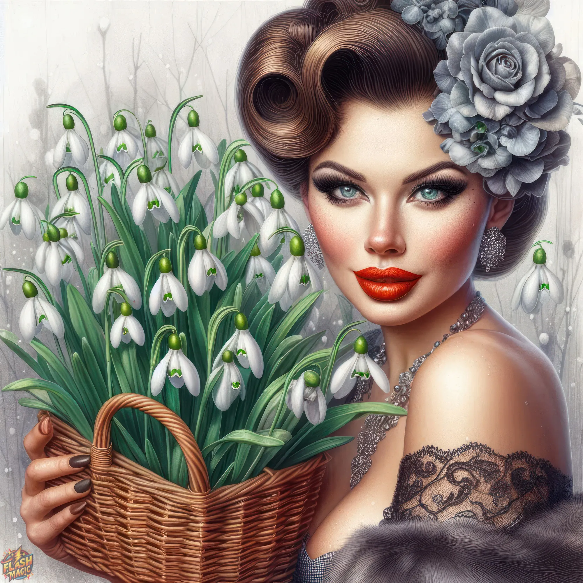 Тема "Женщина и цветы". Стиль ретро. ART by Flash Magic