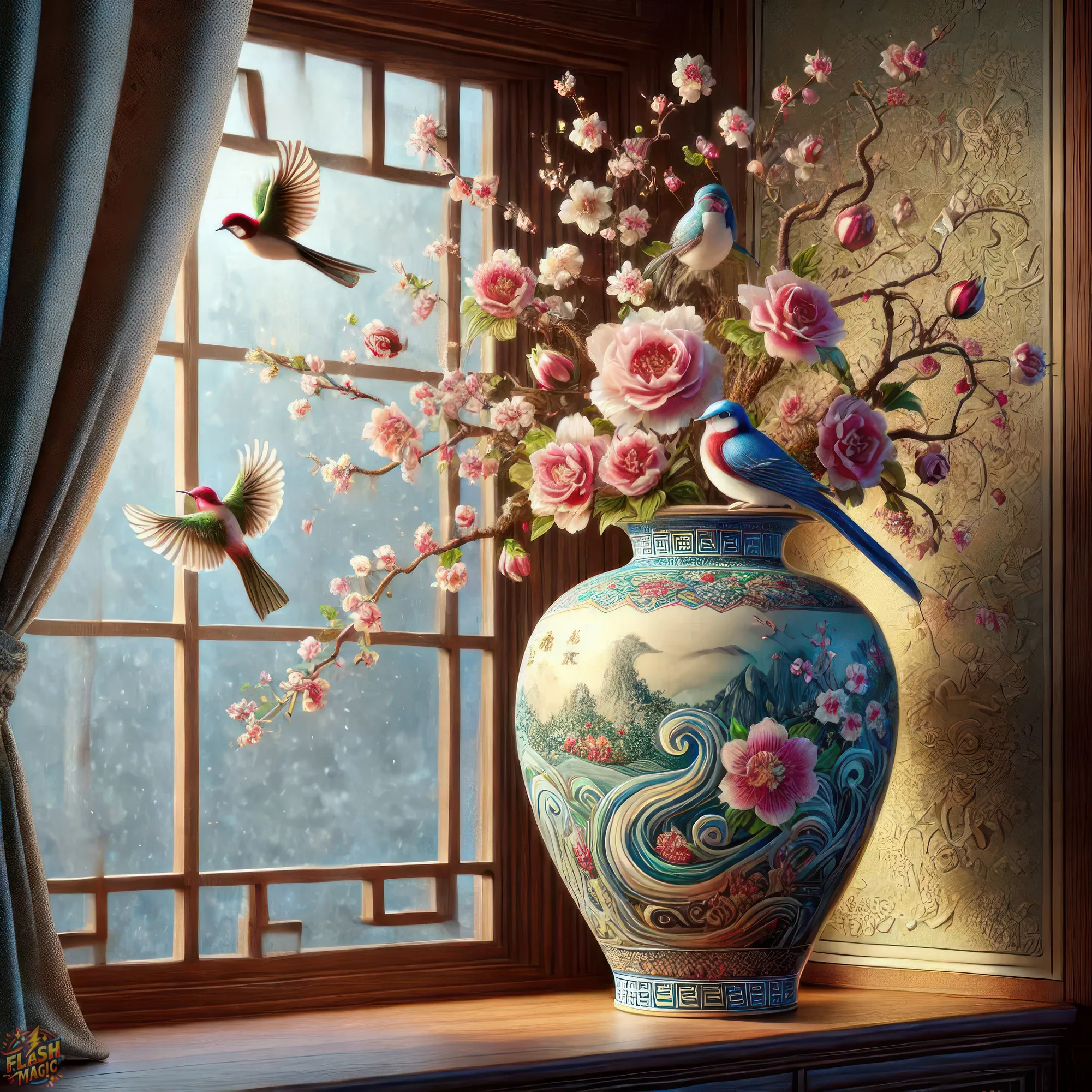 Китайская живопись - Ваза. ART by Flash Magic