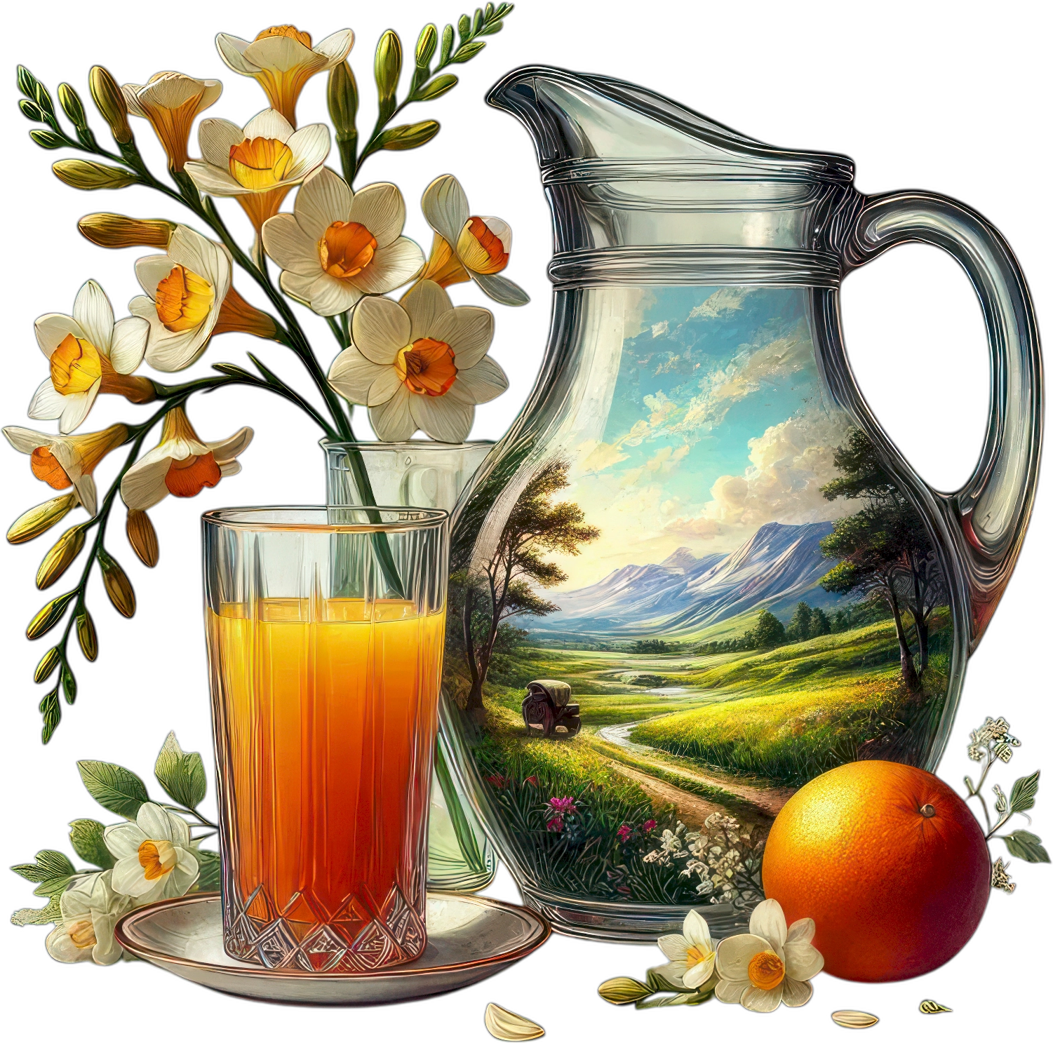 Графин с соком. Натюрморт. Клипарт в пнг. ART by Flash Magic