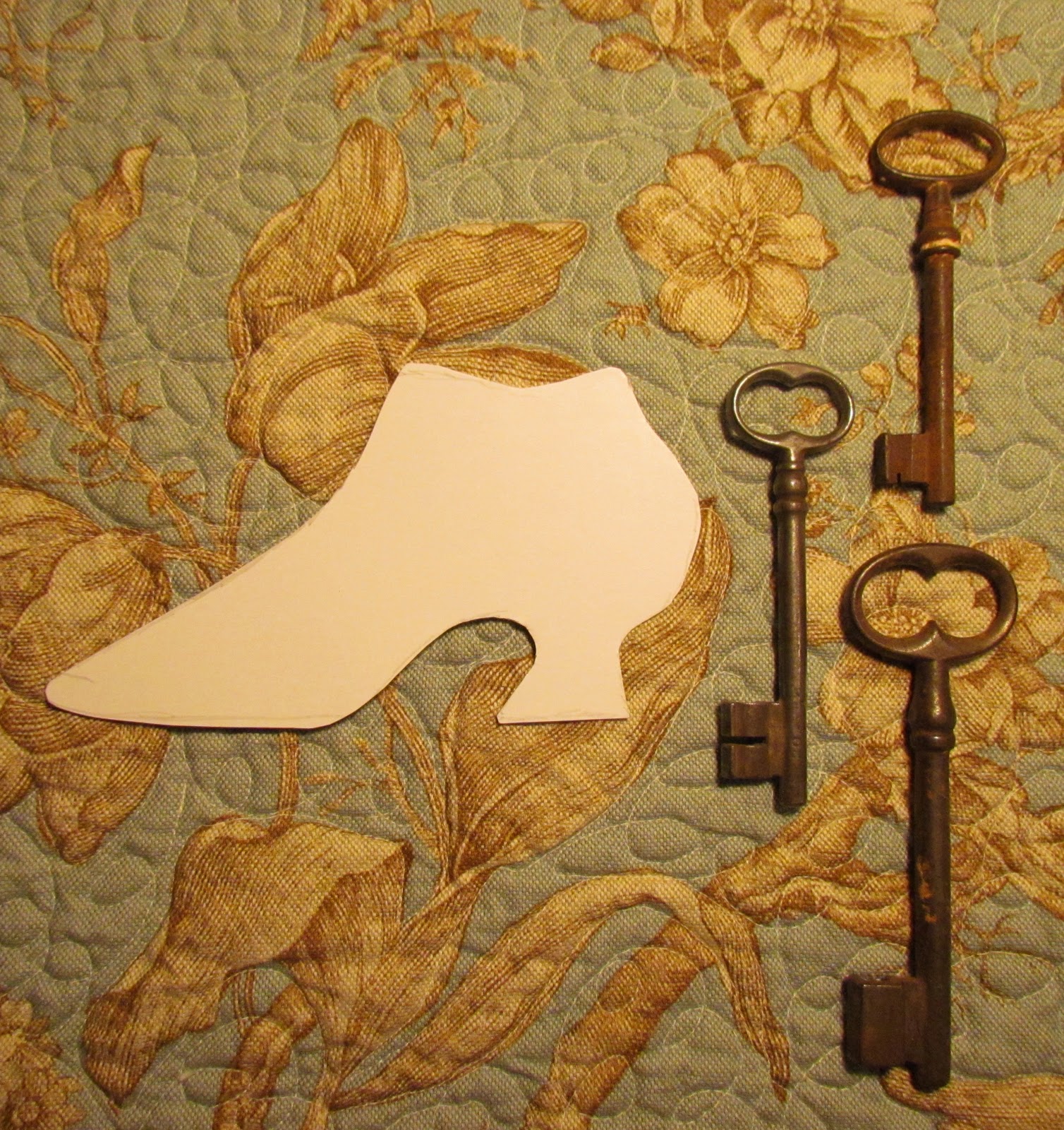 Прежде всего, создайте шаблон из плотной бумаги в форме старинной туфельки и вырежьте его.