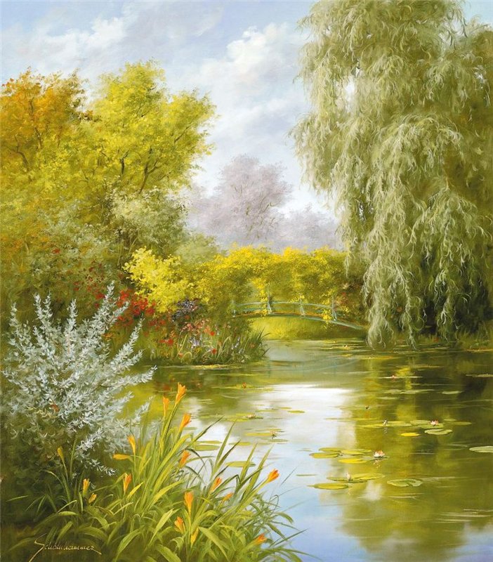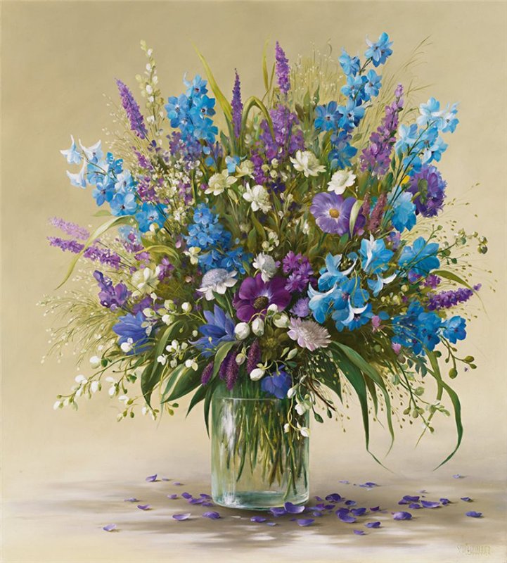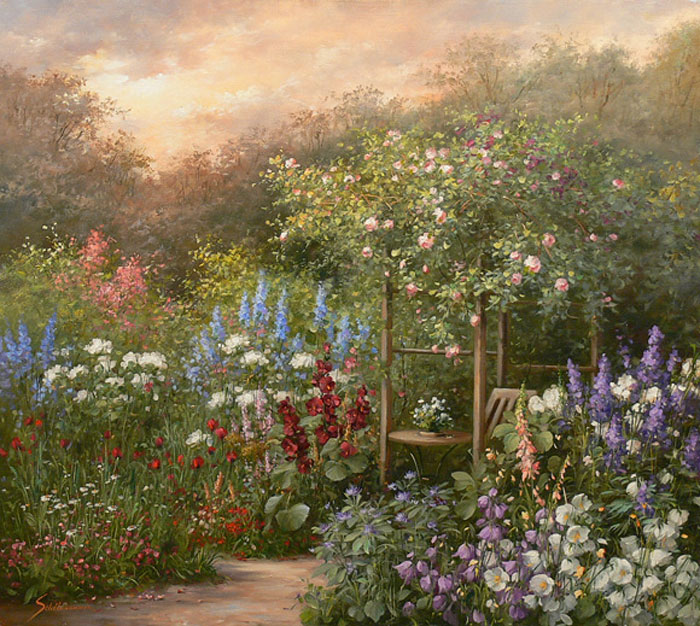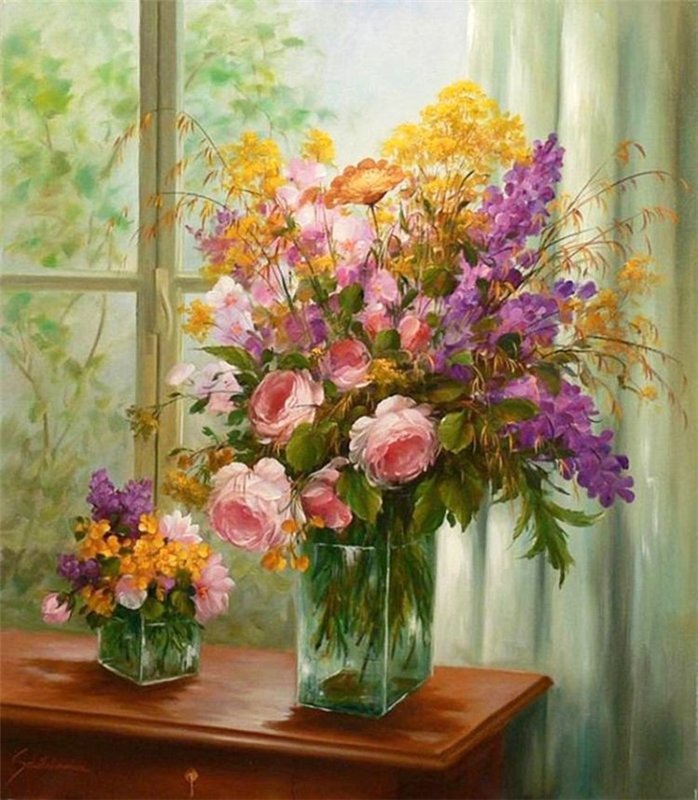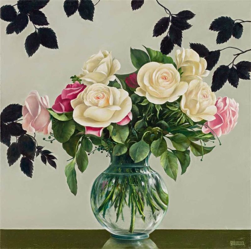 Цветы и пейзажи в Его творчестве - олицетворение самого радостного, чистого и светлого на земле! Всю нежнейшую палитру красок вобрали в себя картины художника. Он талантливо и роскошно передаёт уникальность и чарующую красоту каждого отдельного цветка, каждого листа и травинки, вплетенных в роскошные букеты. Можно бесконечно долго любоваться его такими живыми и звучащими пейзажами!